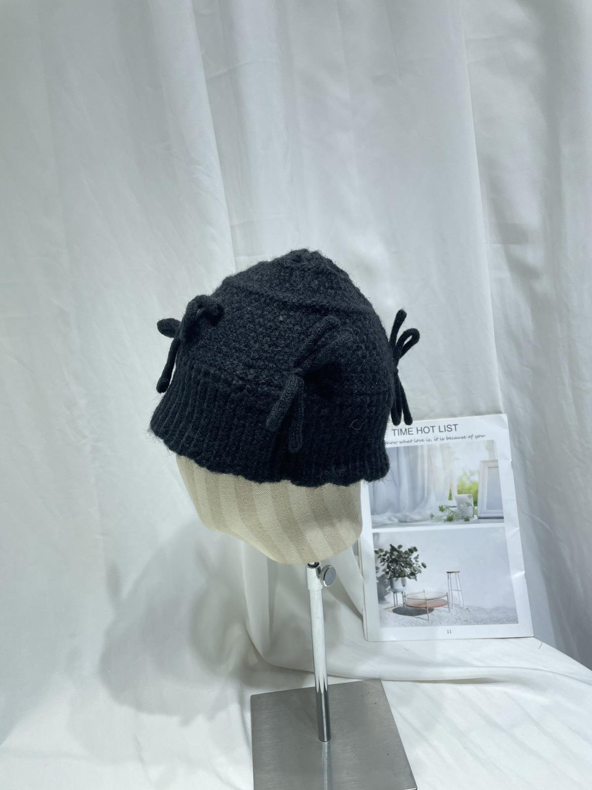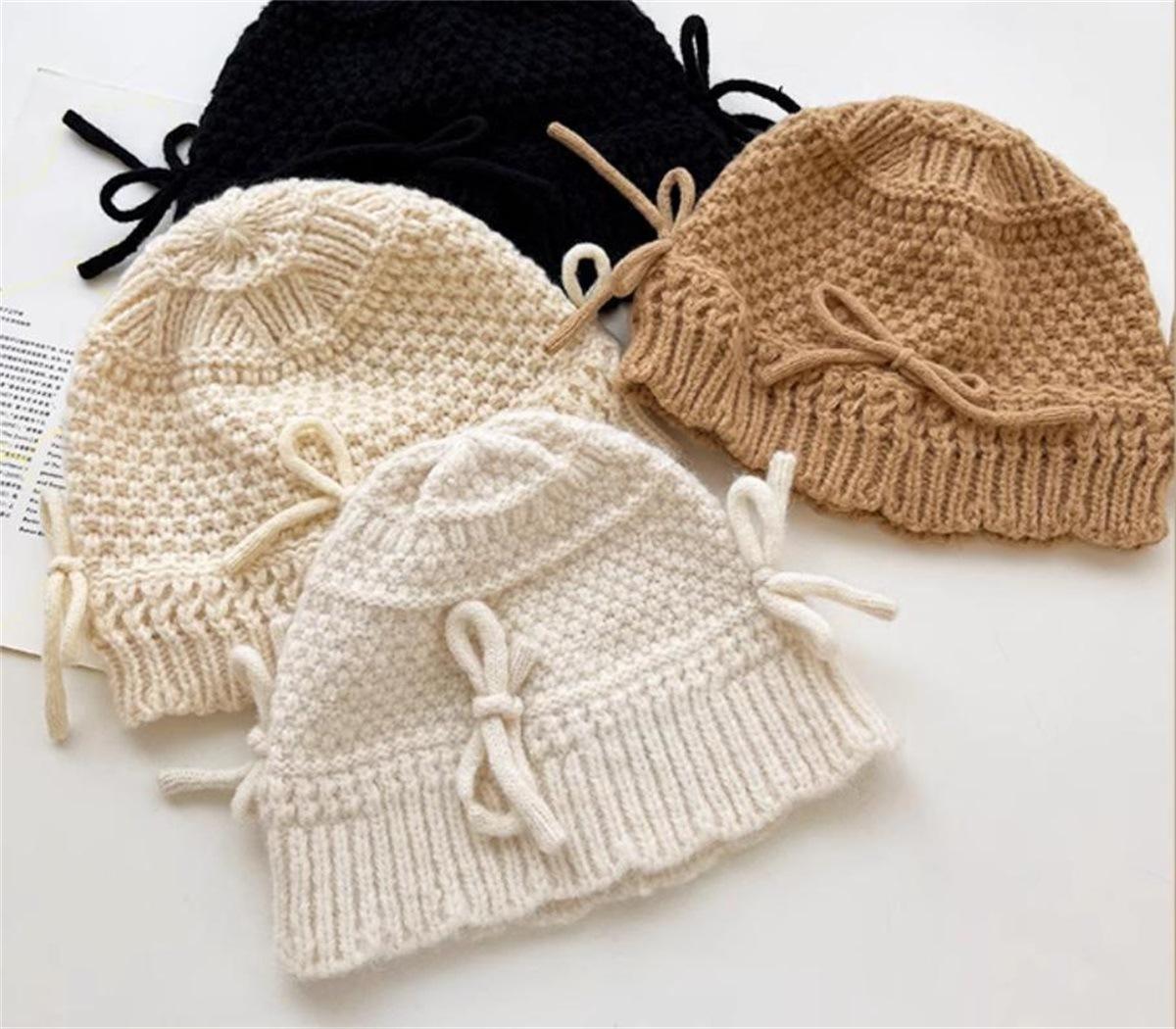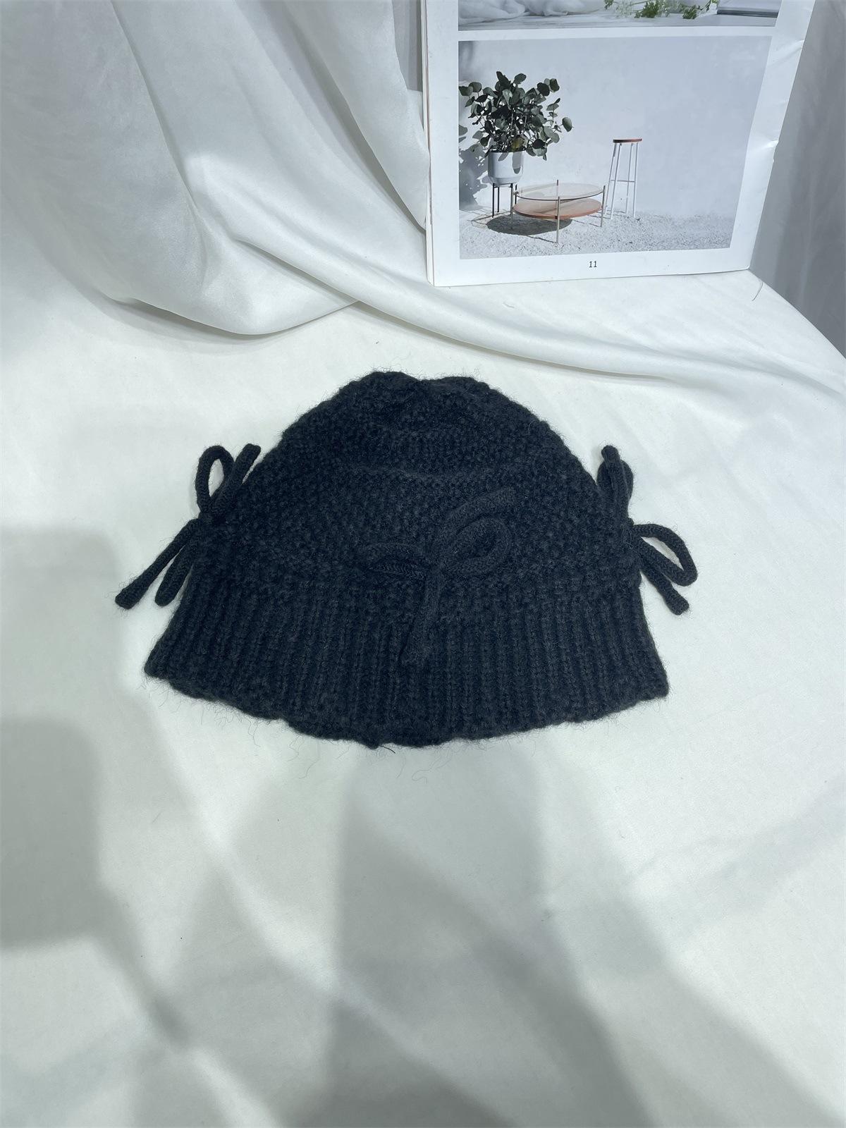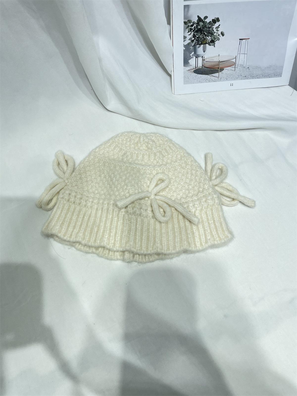 Sombrero de Pescador Tejido con Lazo Dulce y Lindo Japonés para Mujer Otoño e Invierno Cálido Combinable Muestra la Cara Pequeña Sombrero Cubo de Lana Moda