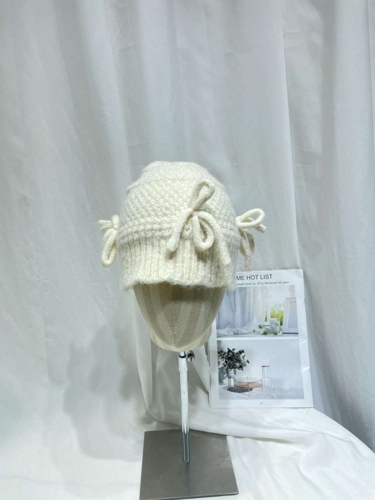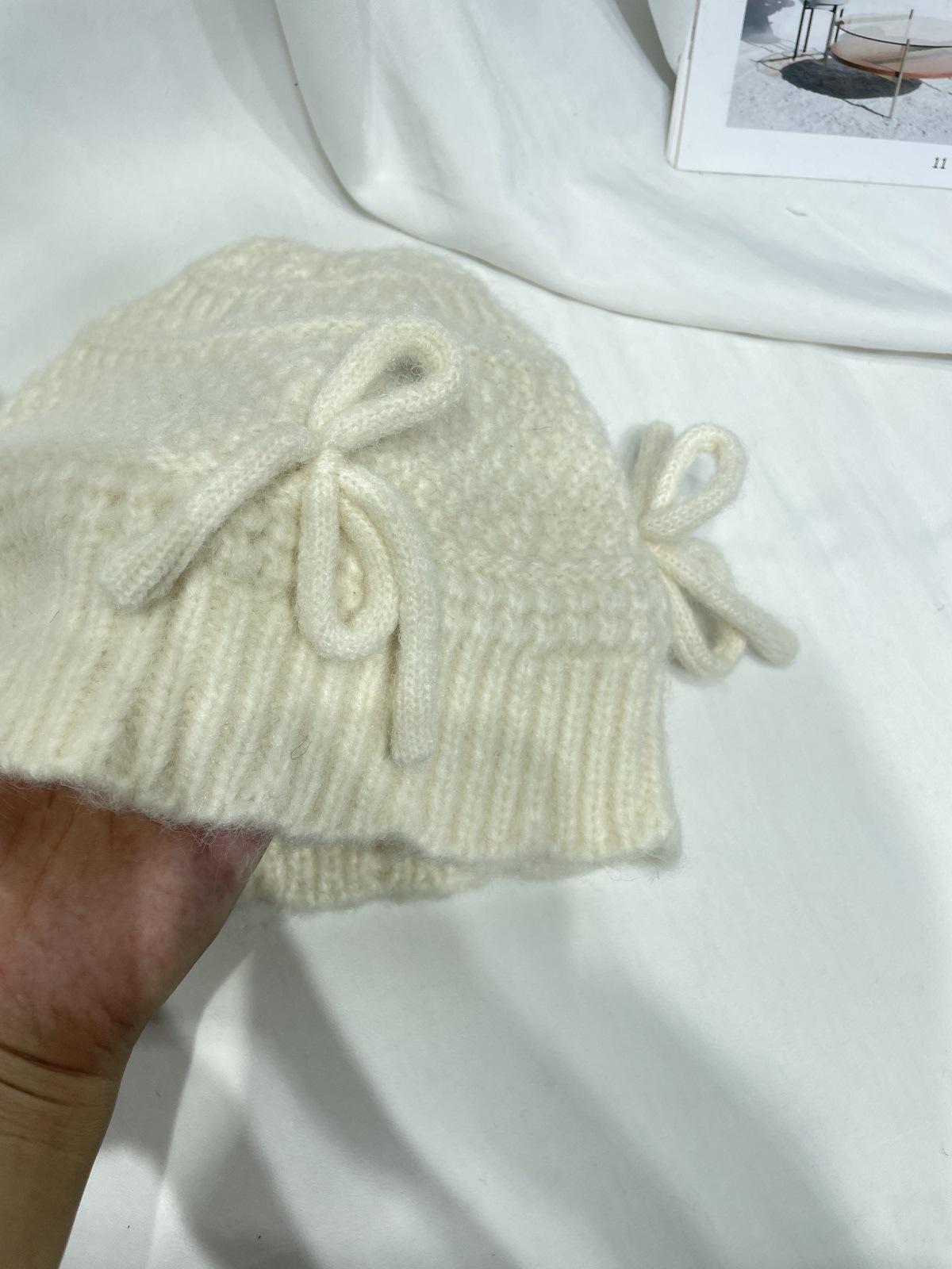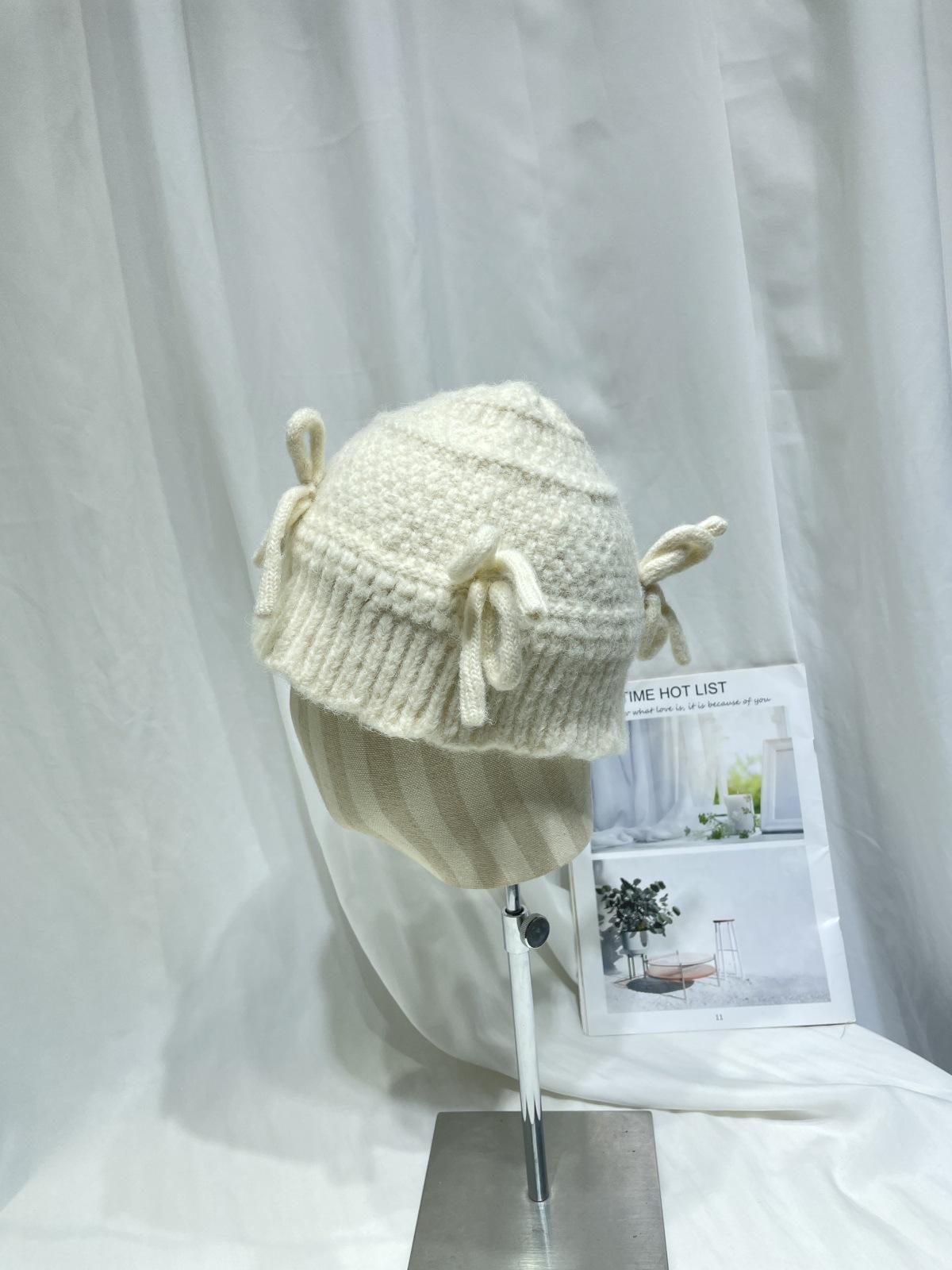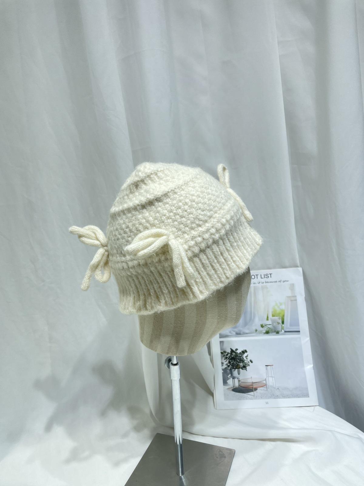 Sombrero de Pescador Tejido con Lazo Dulce y Lindo Japonés para Mujer Otoño e Invierno Cálido Combinable Muestra la Cara Pequeña Sombrero Cubo de Lana Moda