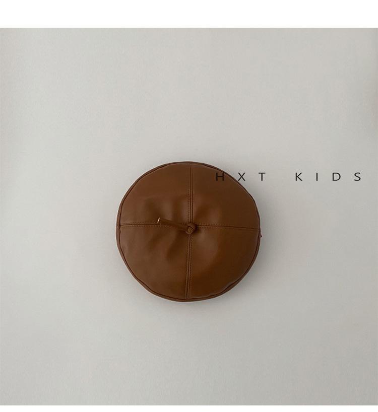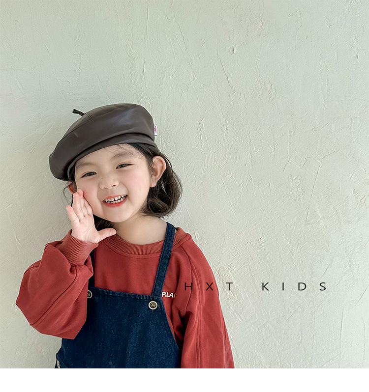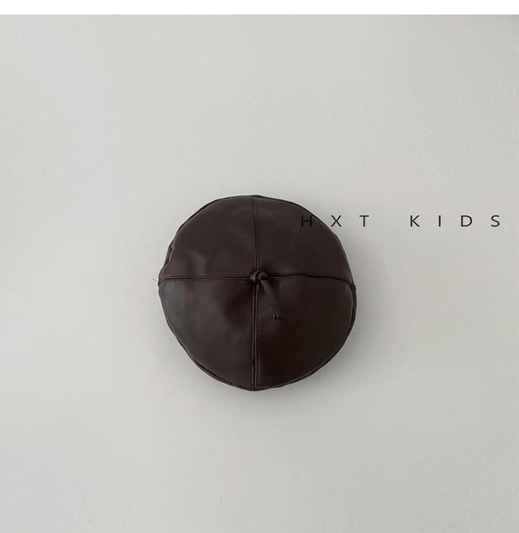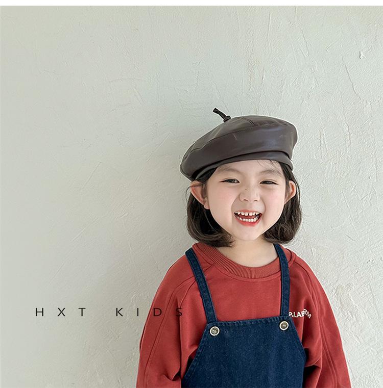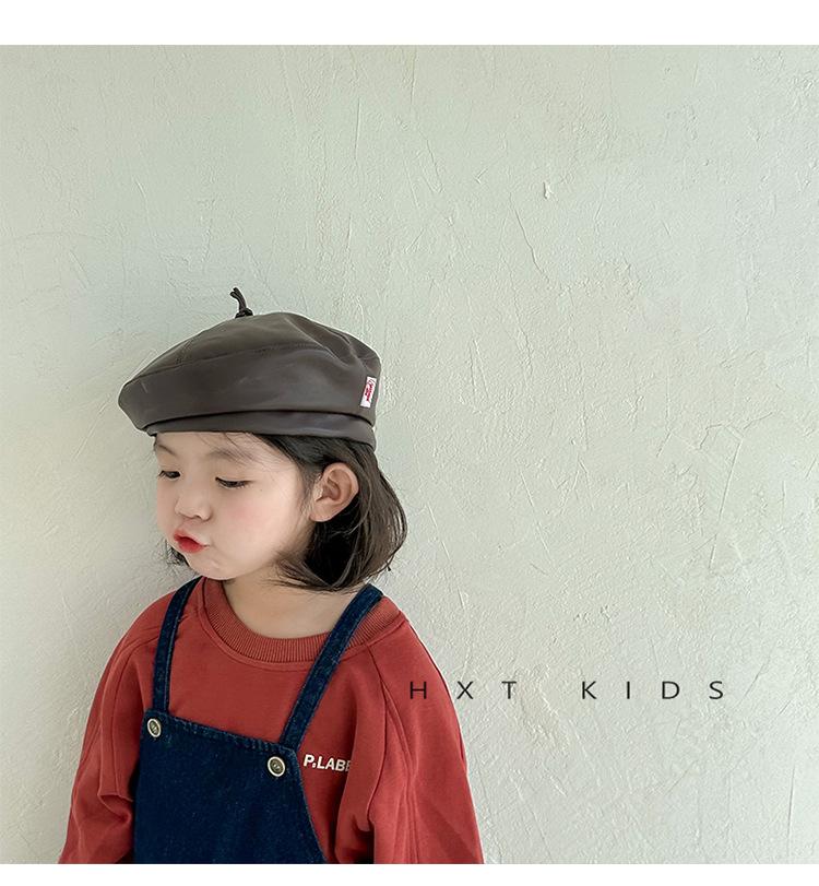 Boina infantil de otoño e invierno, elegante gorro de pintor de cuero de color liso, gorro de viaje de otoño para bebé y niño.