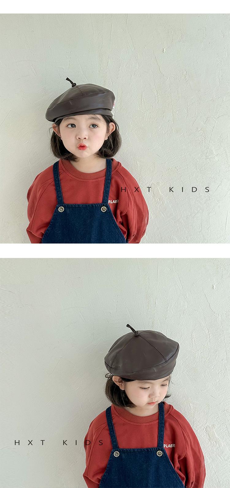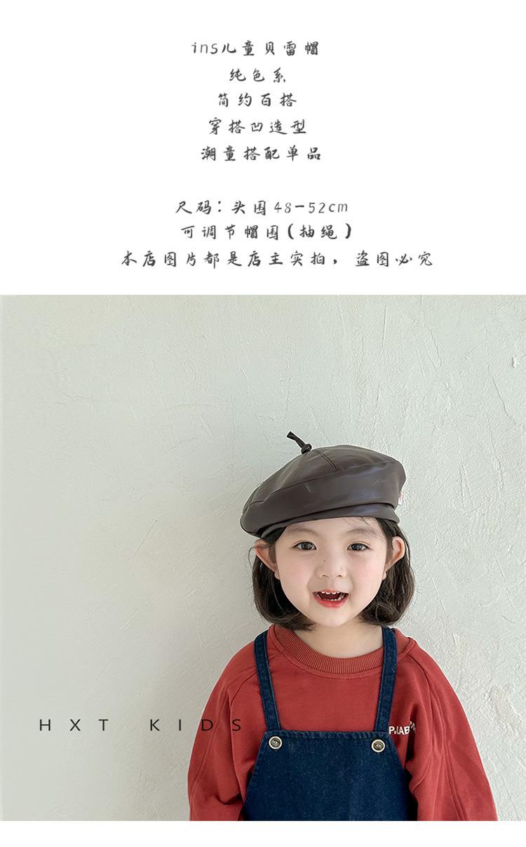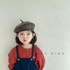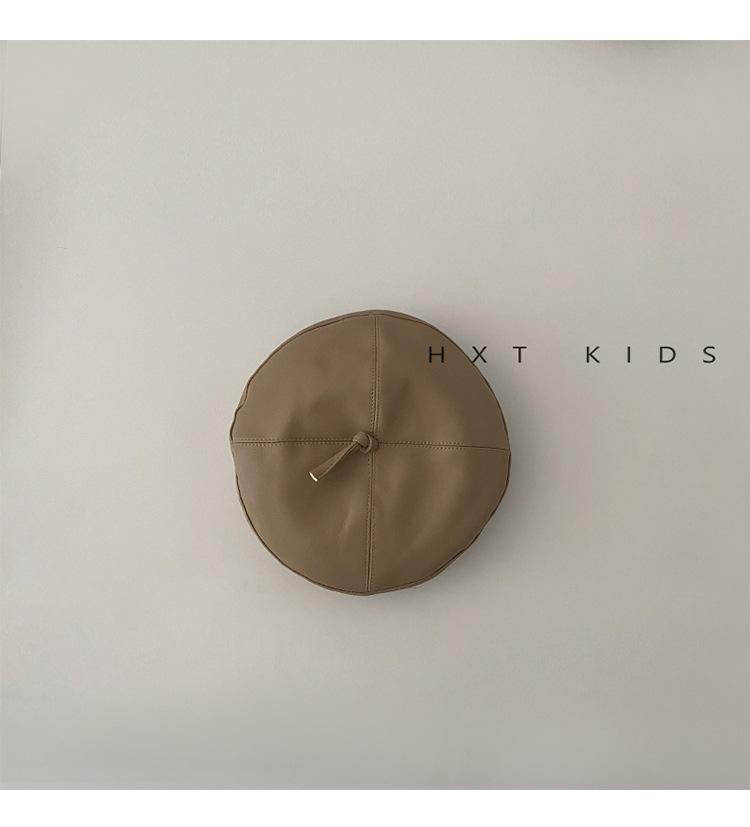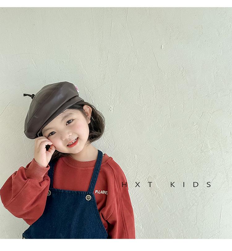Boina infantil de otoño e invierno, elegante gorro de pintor de cuero de color liso, gorro de viaje de otoño para bebé y niño.