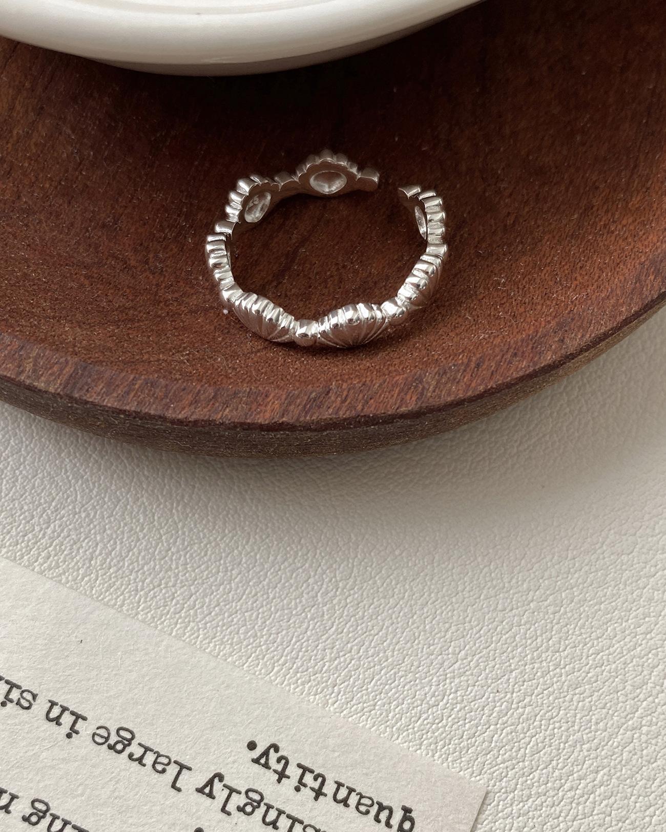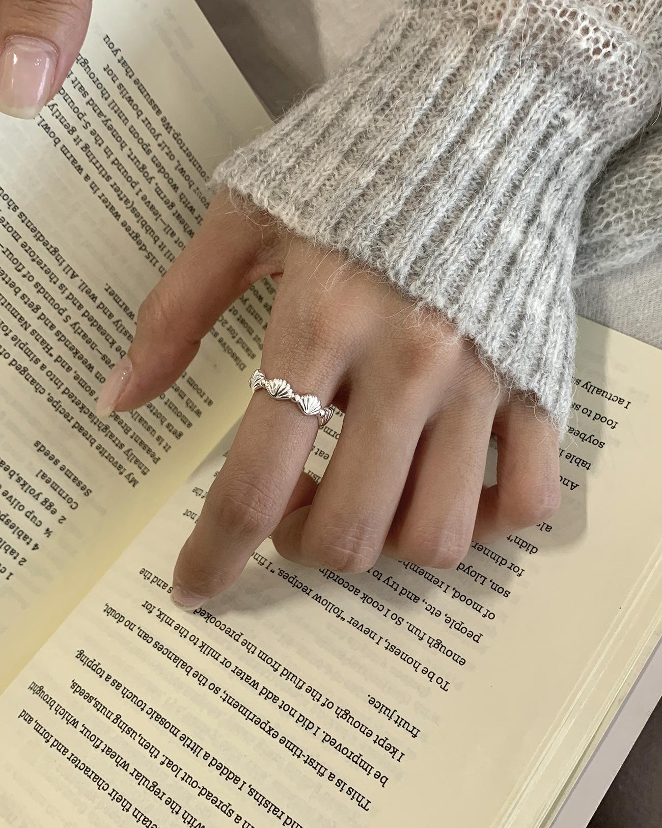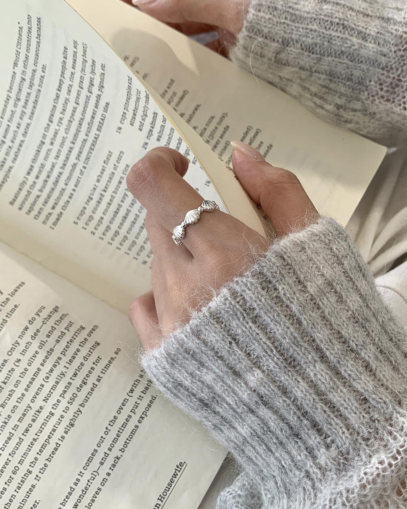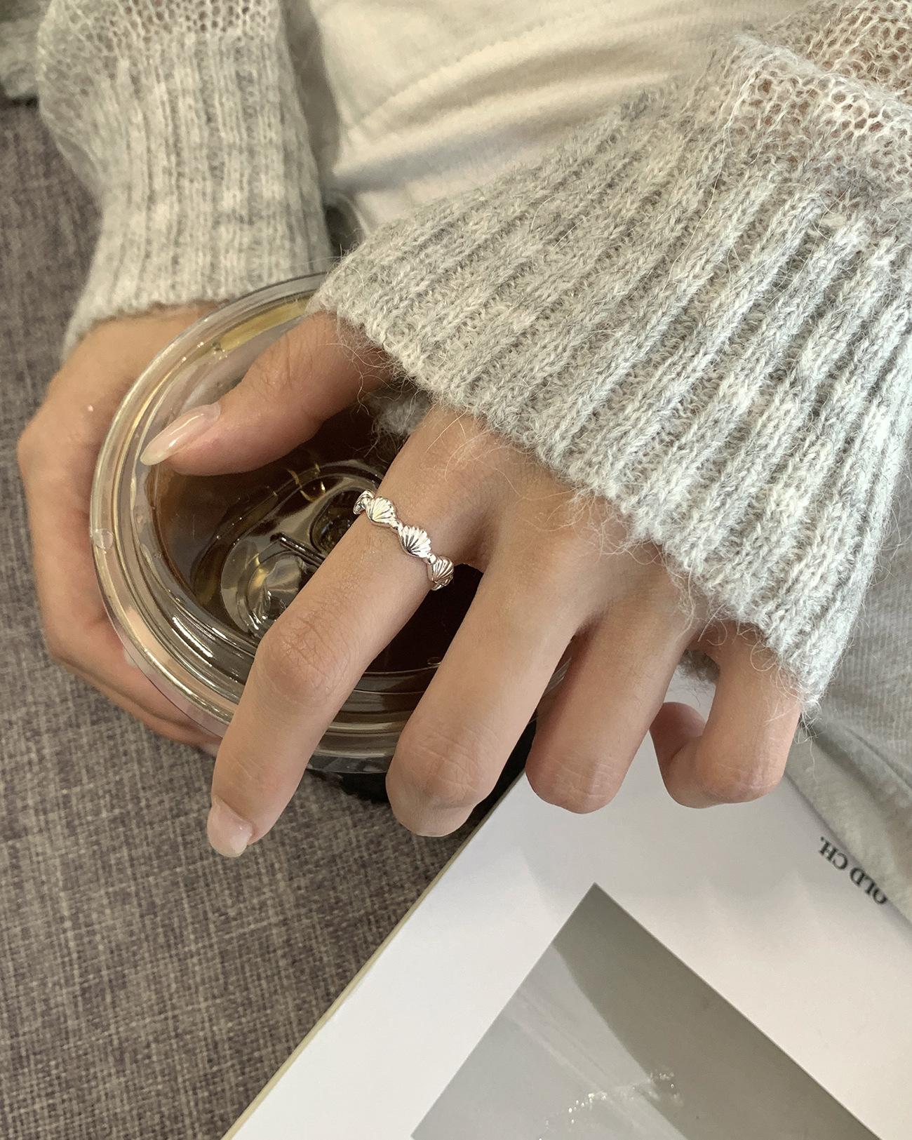 Anillo de concha de plata esterlina S925 para mujer, estilo elegante, estilo frío, apertura ajustable, joyería de mano, anillo de dedo índice apilado al por mayor