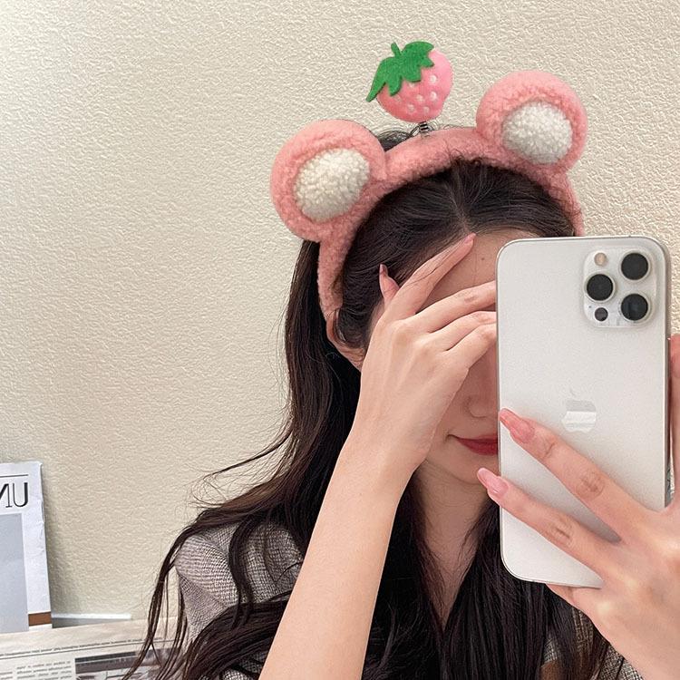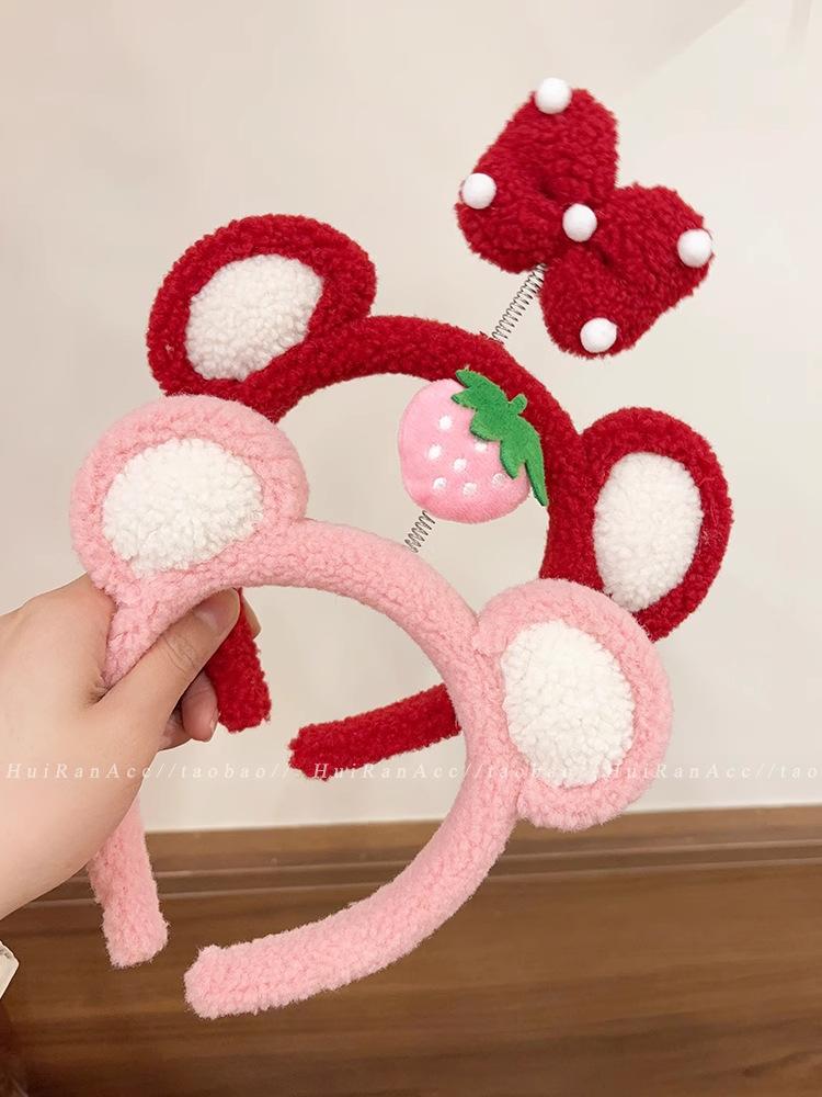 Nueva y bonita diadema de primavera con forma de fresa y lazo rojo para niña, accesorio para el cabello con diseño de abeja y fresa.