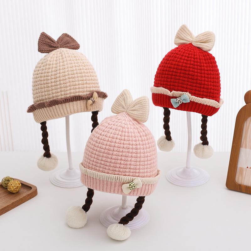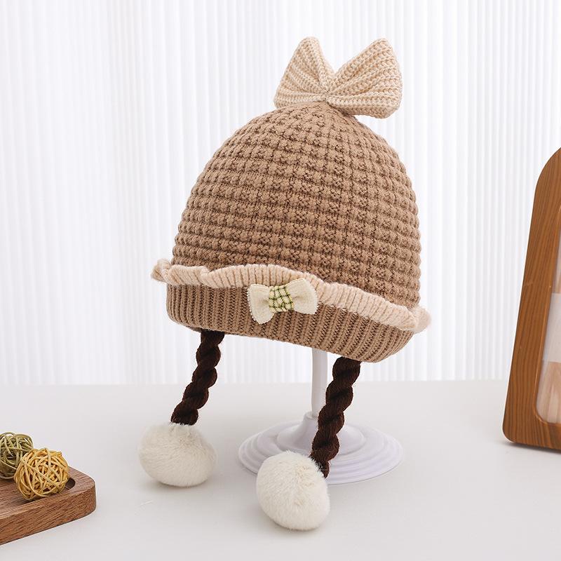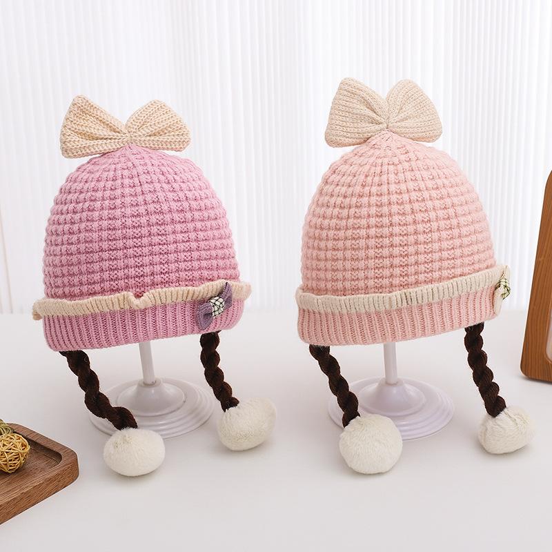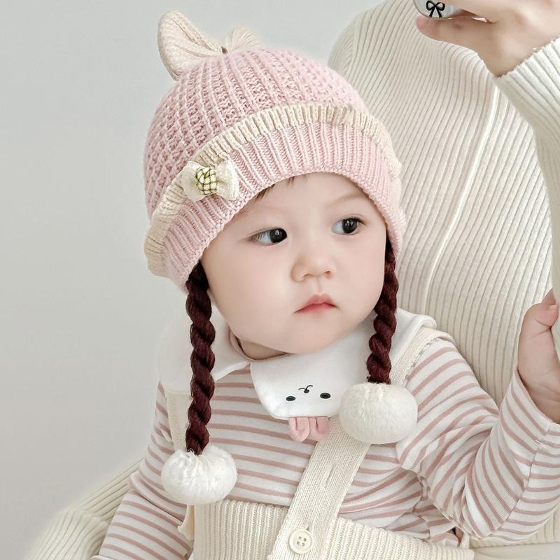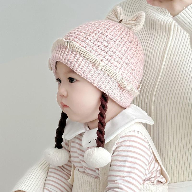 Peluca de estilo extranjero dulce para niña, gorro trenzado de otoño e invierno, gorro de lana de punto grueso y cálido, protección para los oídos súper linda.