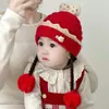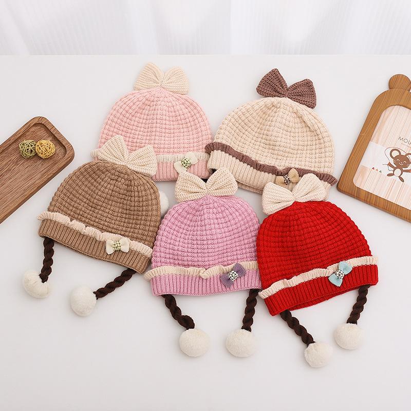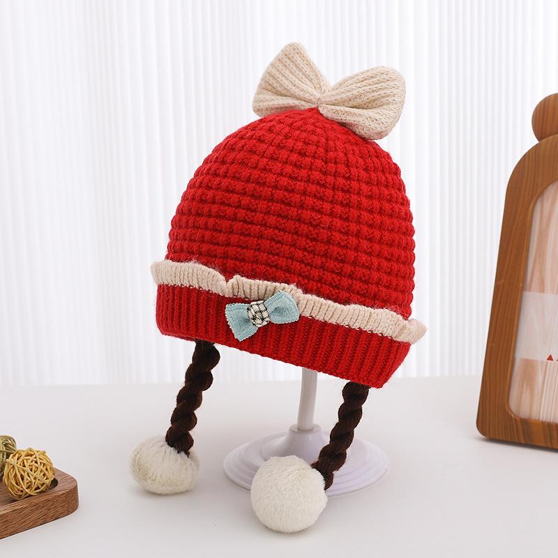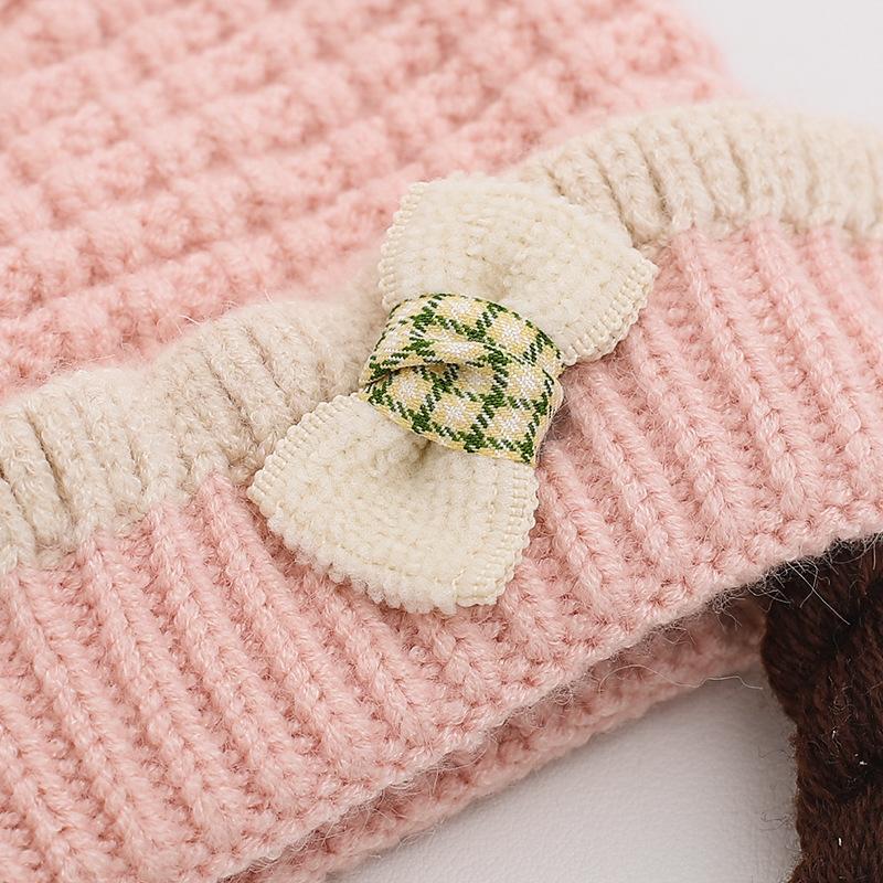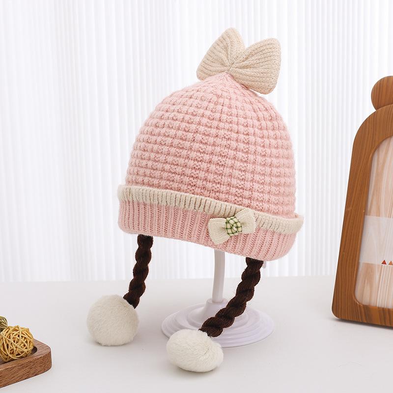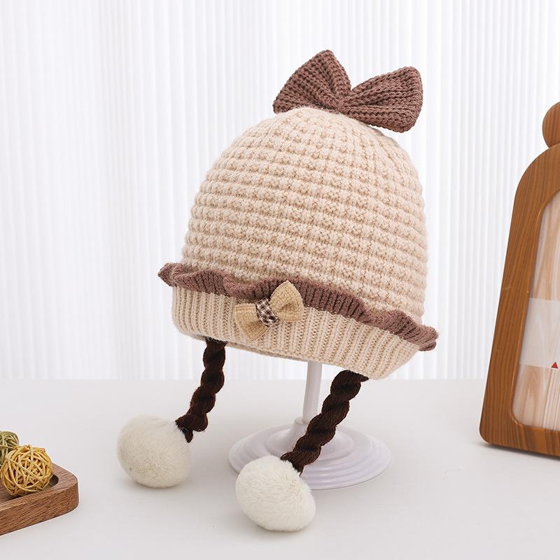 Peluca de estilo extranjero dulce para niña, gorro trenzado de otoño e invierno, gorro de lana de punto grueso y cálido, protección para los oídos súper linda.