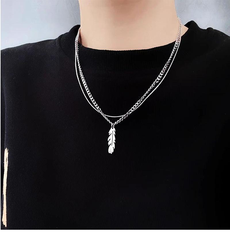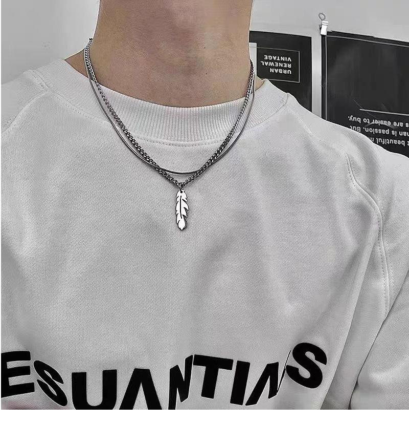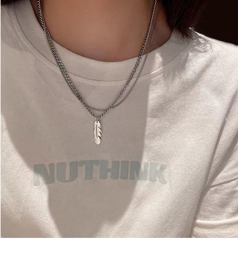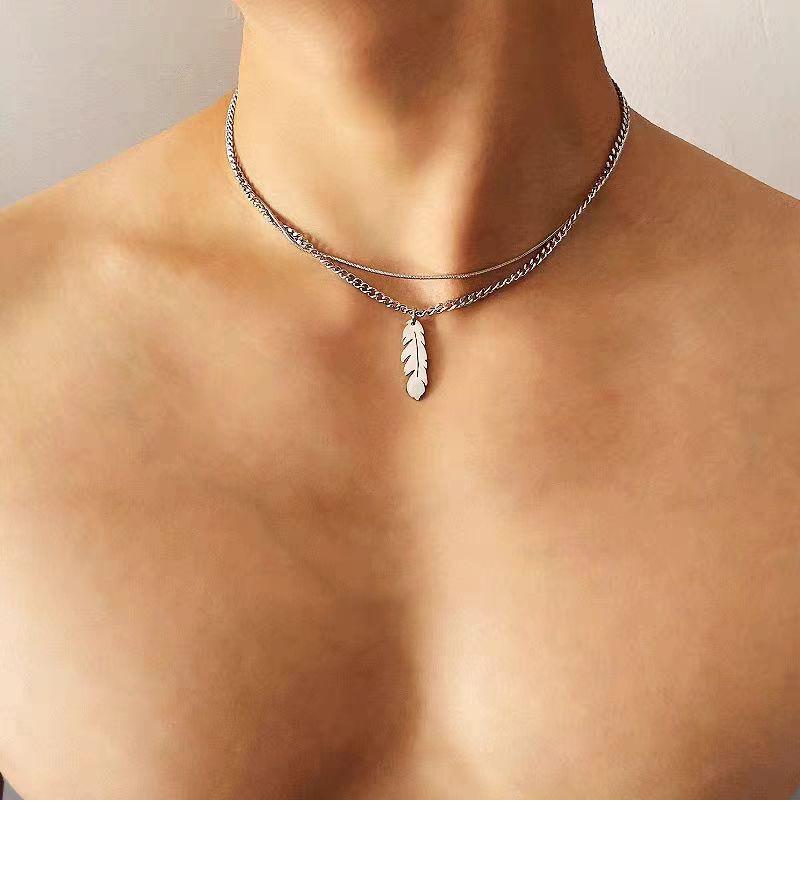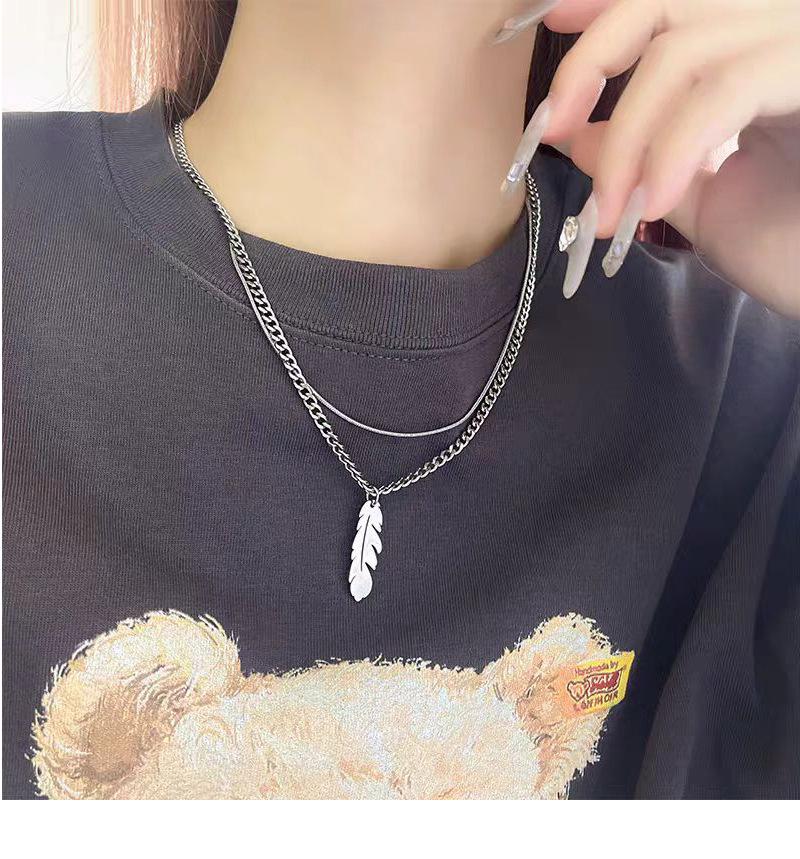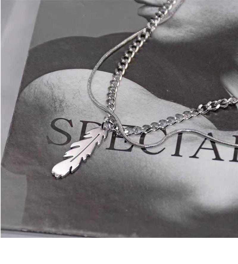 Collar con colgante de cadena de hueso de serpiente versátil de doble capa con plumas apiladas para hombres y mujeres, estilo hip-hop, cadena de clavícula unisex.