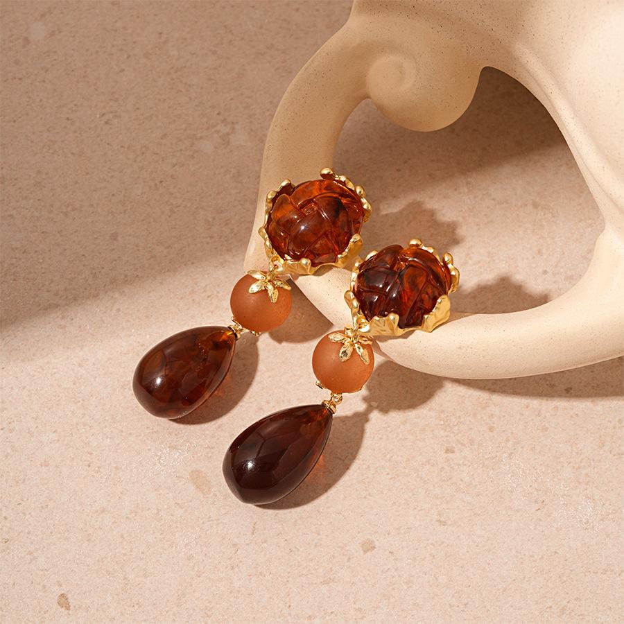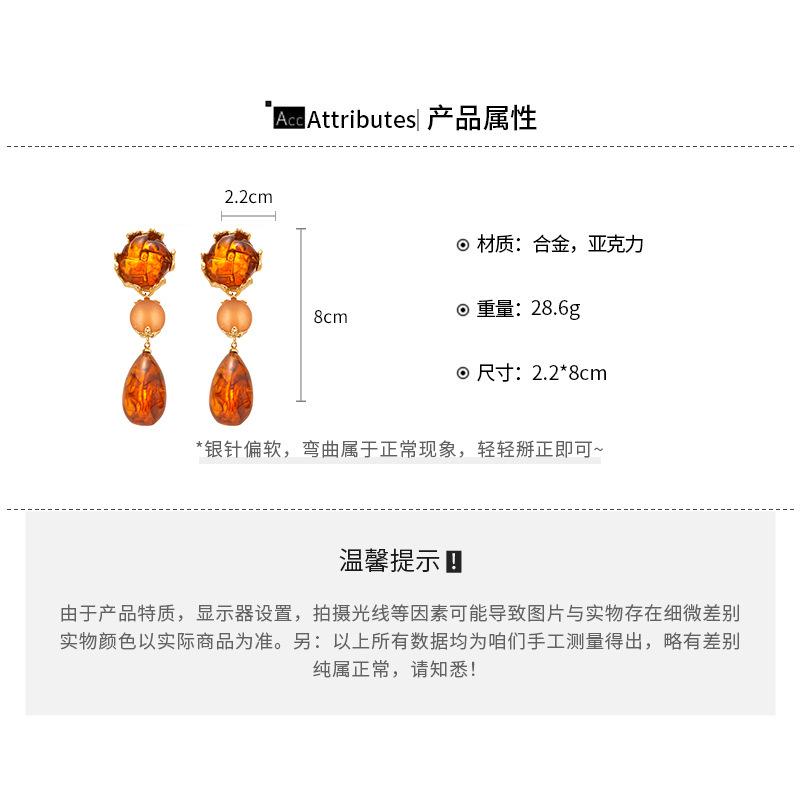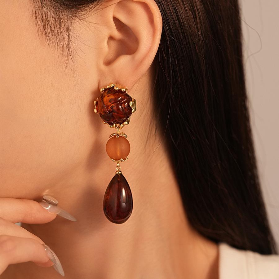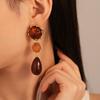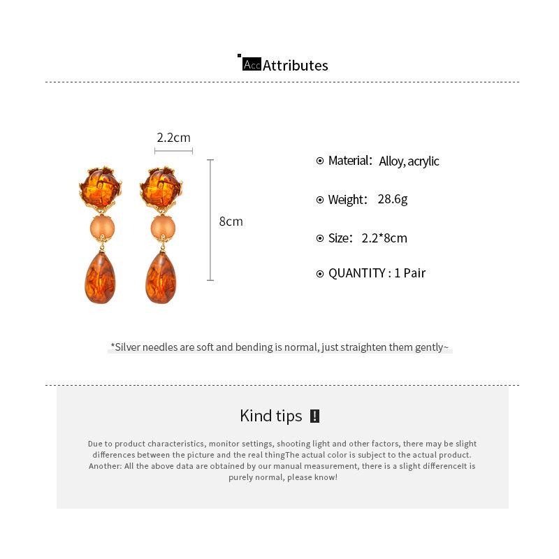 Pendientes de plata con diseño geométrico de gota de agua acrílica estilo Maillard, pendientes de alta gama con temperamento nicho retro francés para mujer