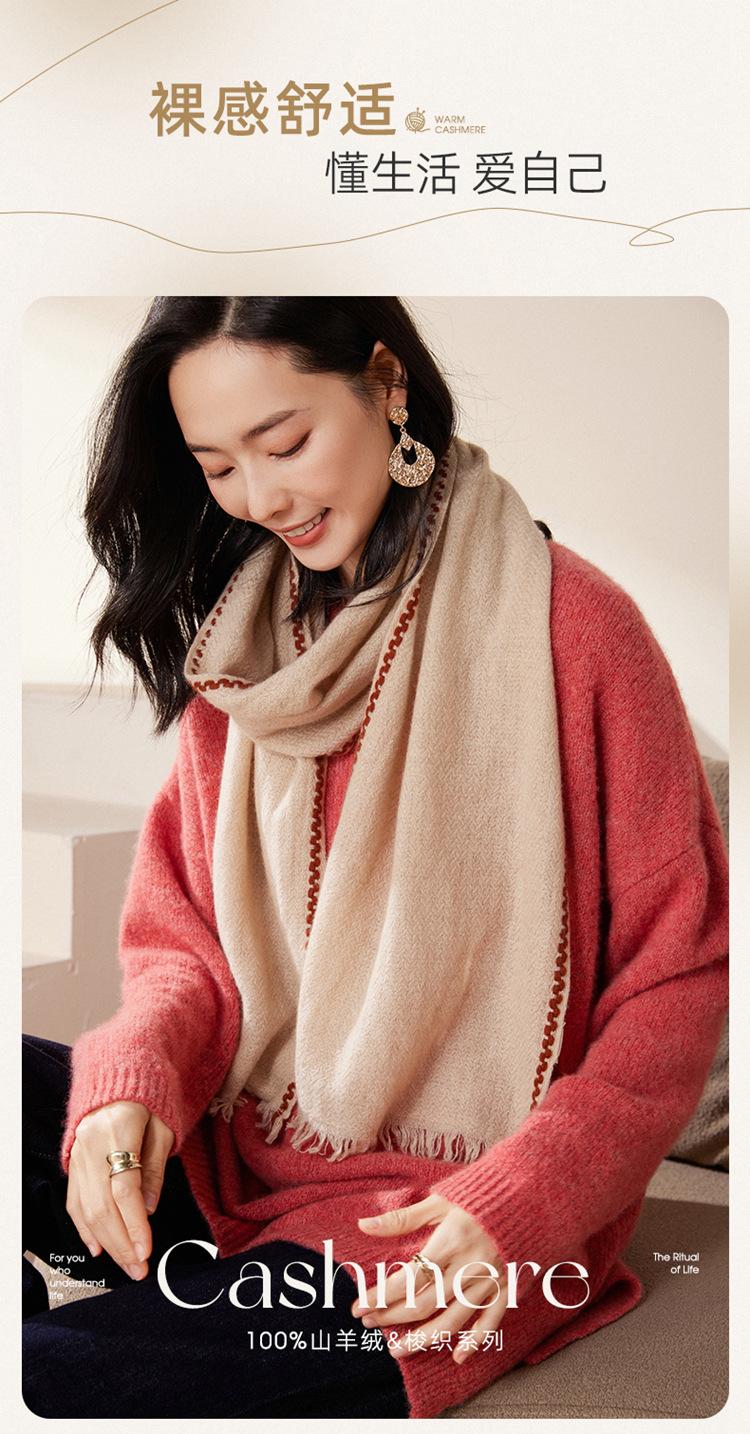 Bufanda de Cachemira para Mujer 100% Cachemira Pura Otoño e Invierno Nuevo Tejido Artesanal Borla Patrón Espiga Moda Bufanda Cálida