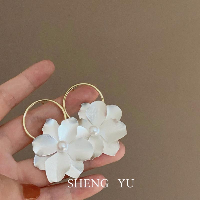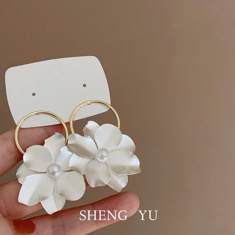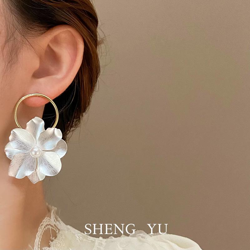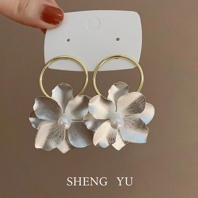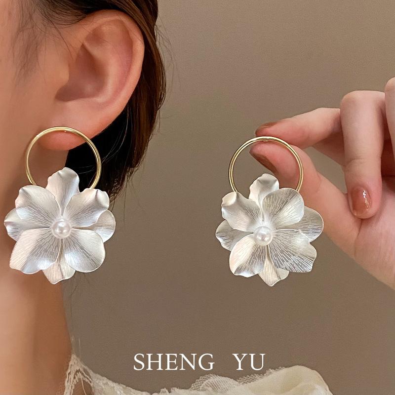 Pendientes exagerados con flores francesas, personalidad creativa dulce, temperamento simple, moda de viajero frecuente, pendientes femeninos de alto sentido.