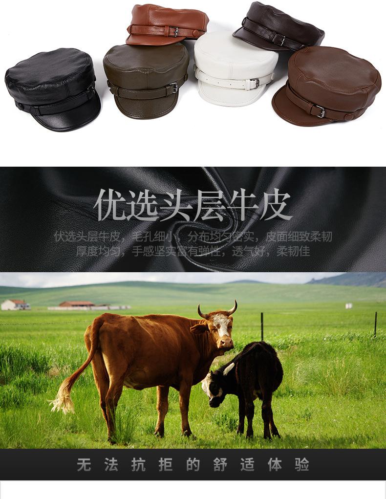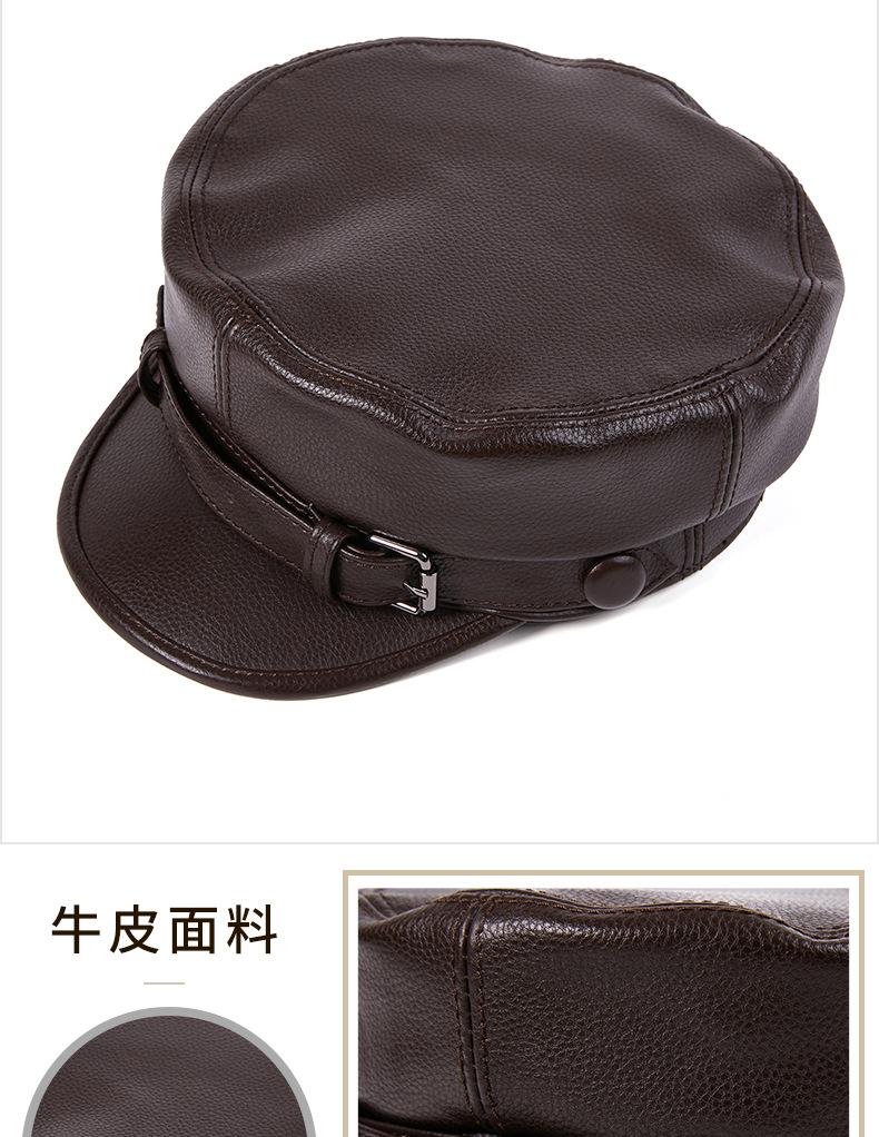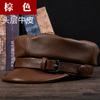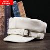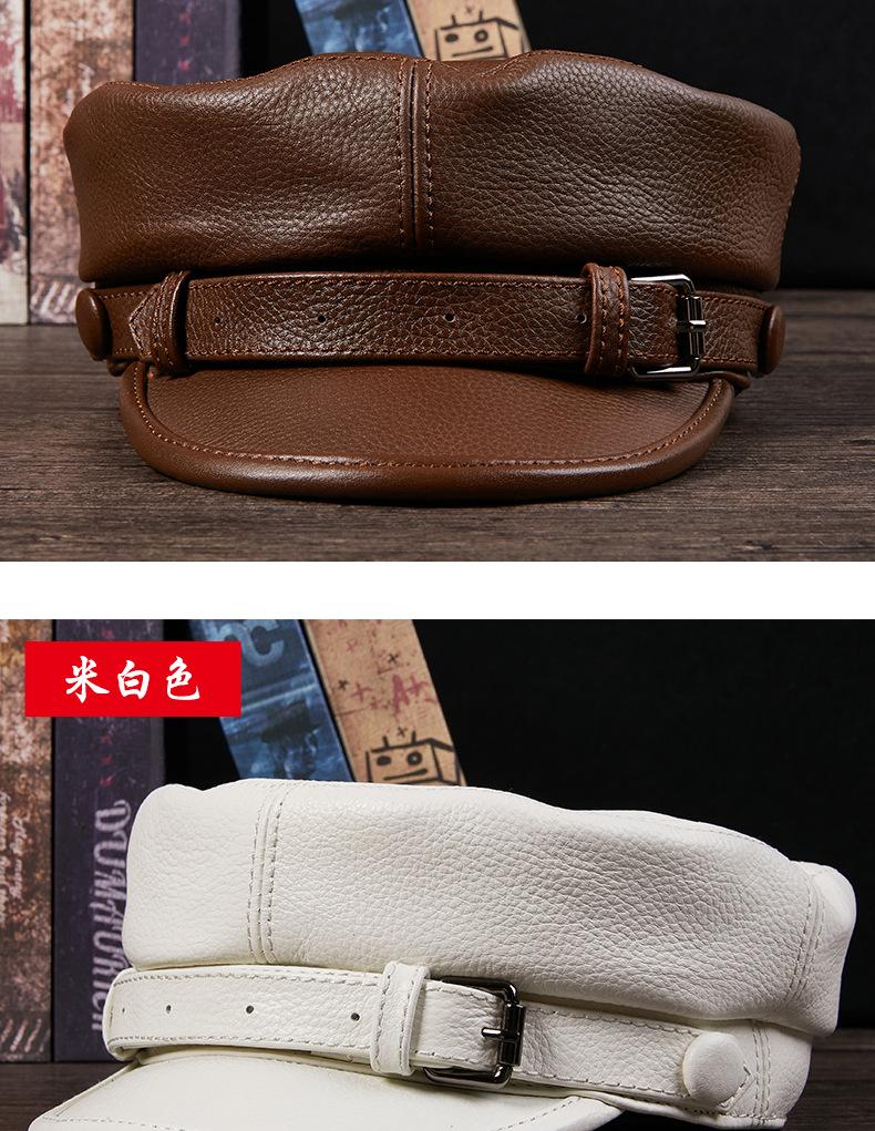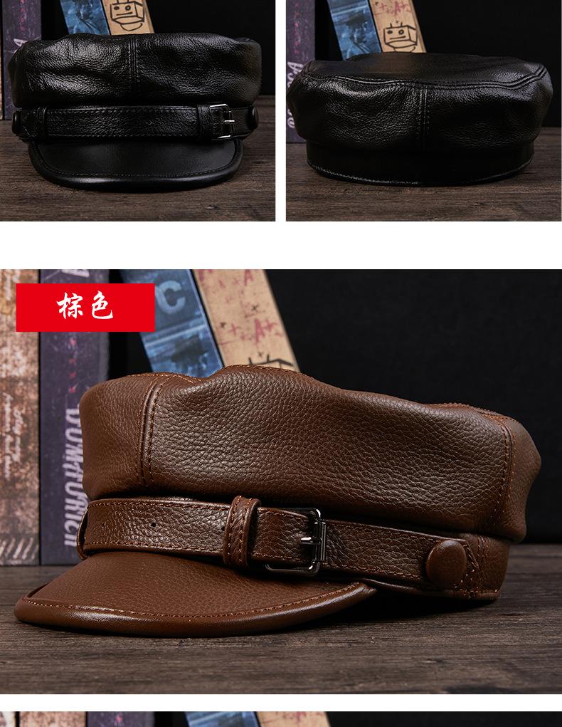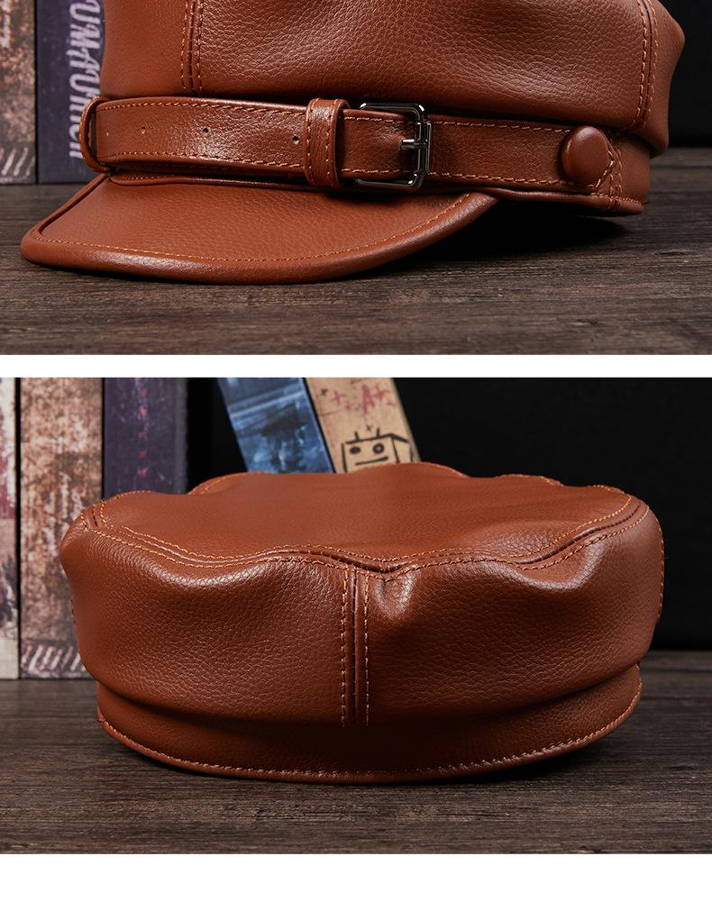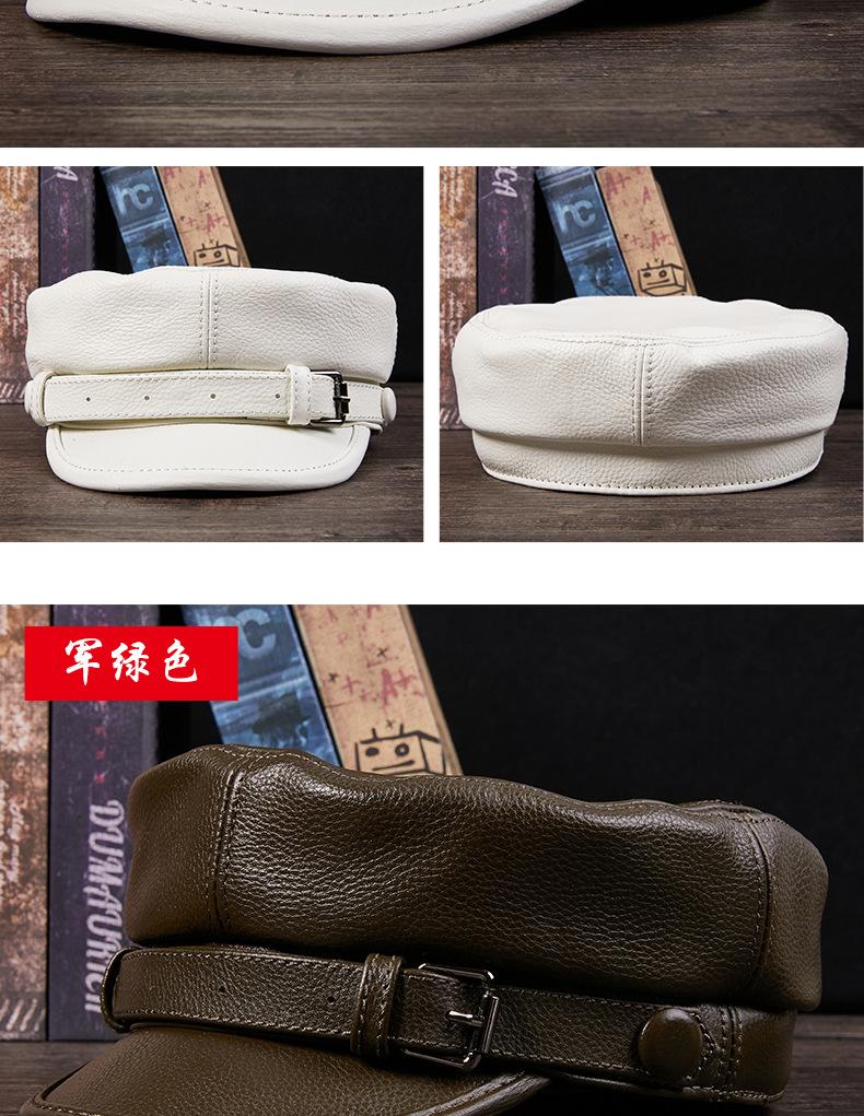 Sombrero de Cuero Genuino para Hombre Otoño e Invierno Cuero Vacuno Gorra Vintage Moderna Mediana Edad y Adulto Mayor Juventud Parte Superior Plana Boina Motociclista Mujer