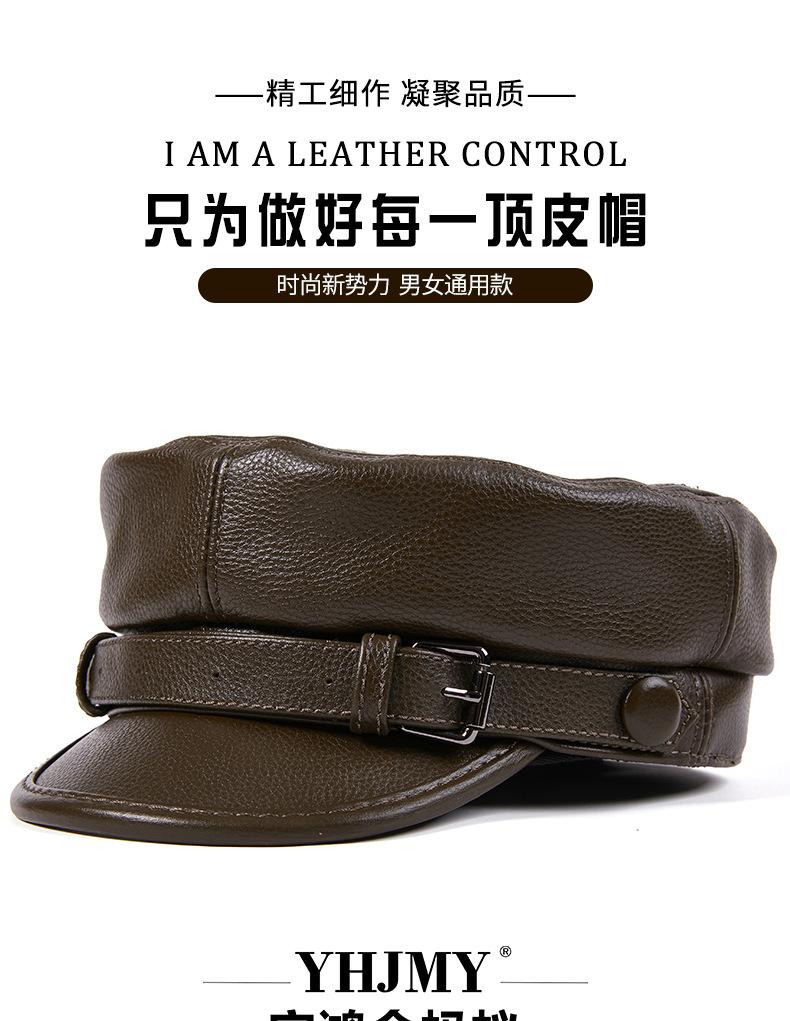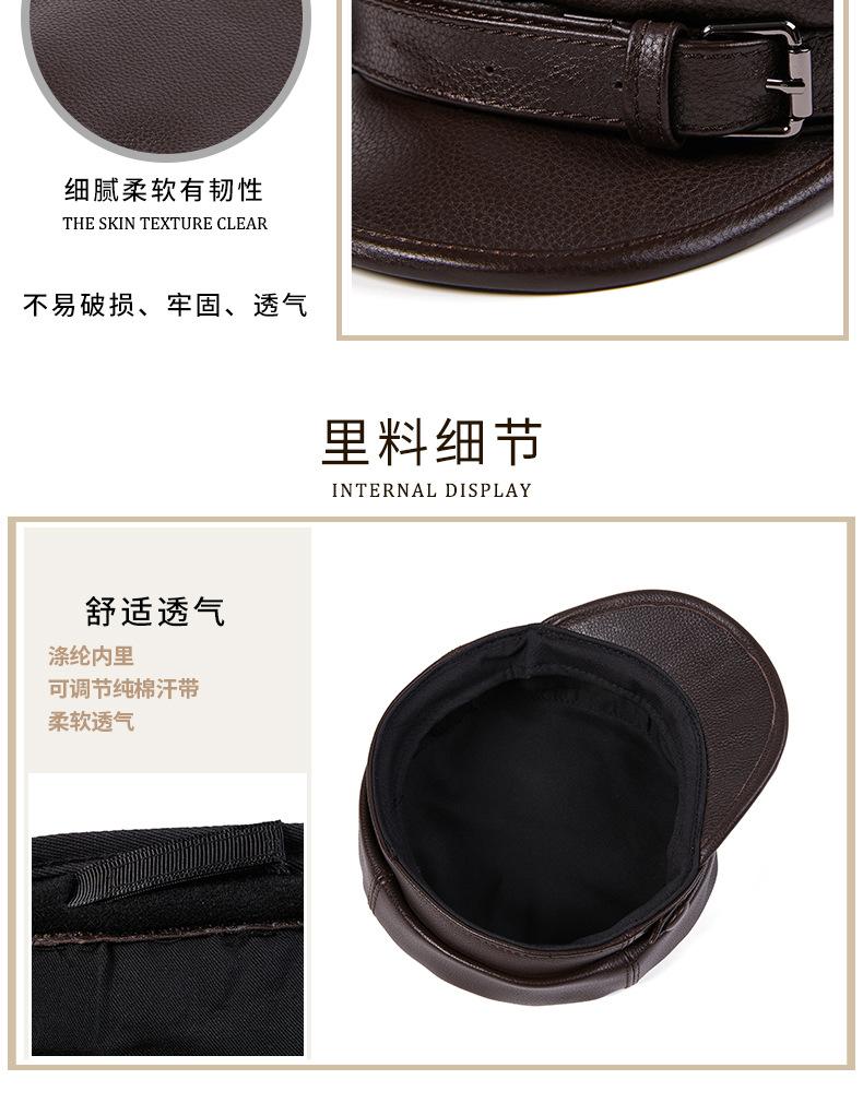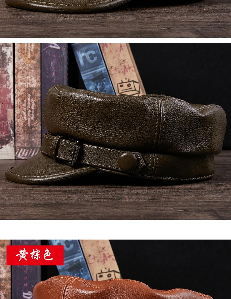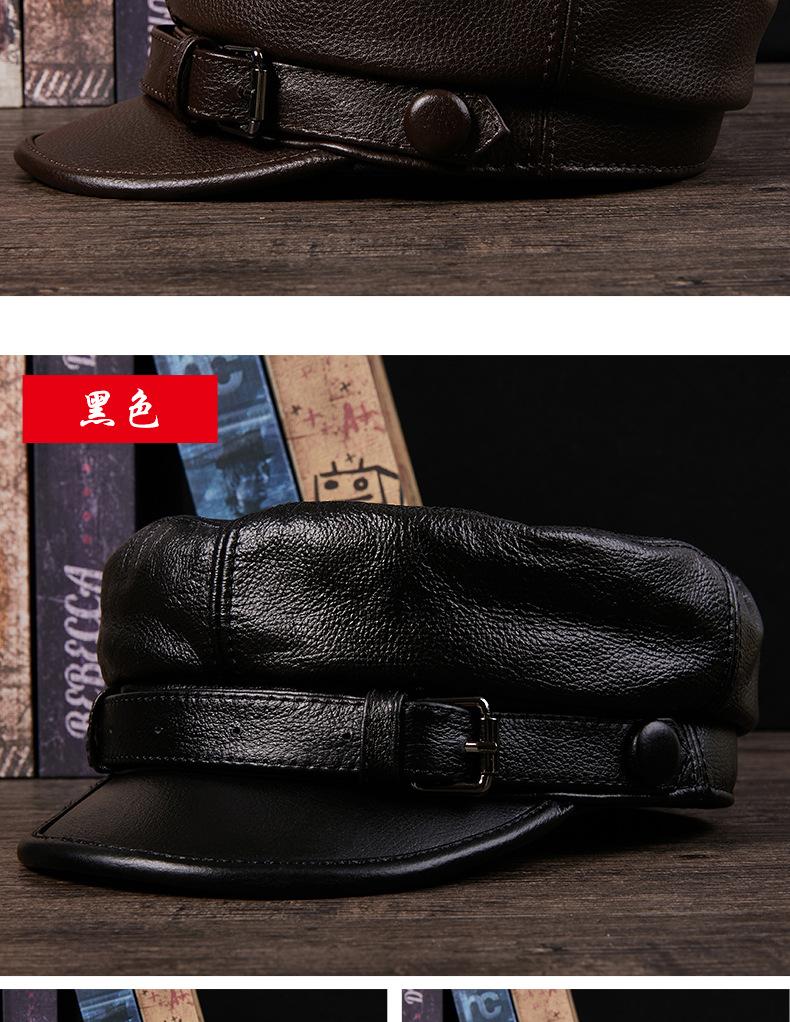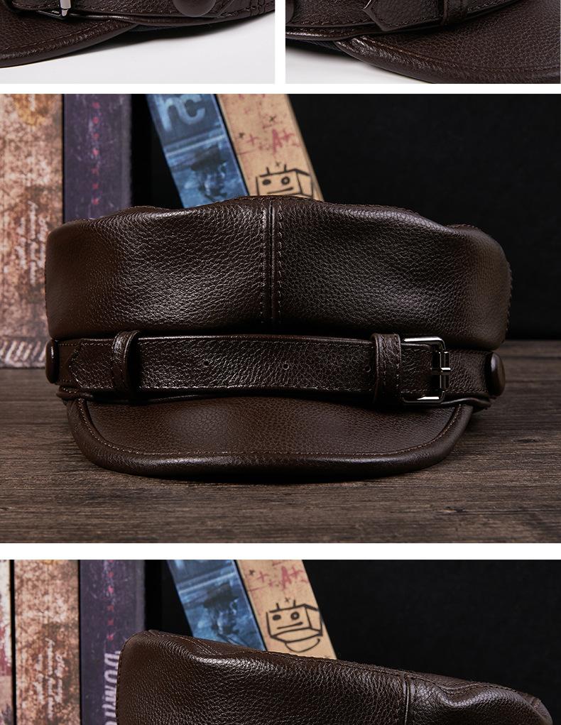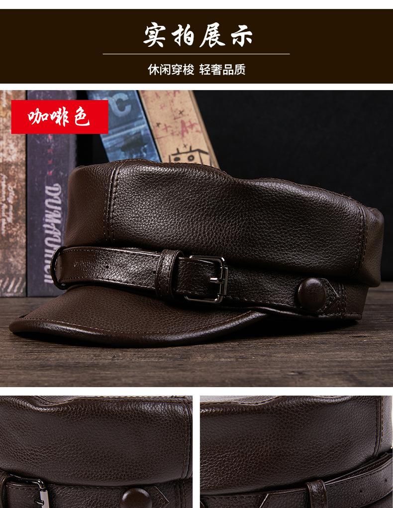 Sombrero de Cuero Genuino para Hombre Otoño e Invierno Cuero Vacuno Gorra Vintage Moderna Mediana Edad y Adulto Mayor Juventud Parte Superior Plana Boina Motociclista Mujer