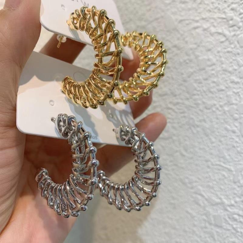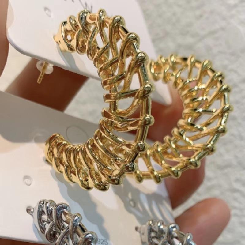 Pendientes de metal tejido únicos con forma de C y diseño de nicho exagerado europeo y americano