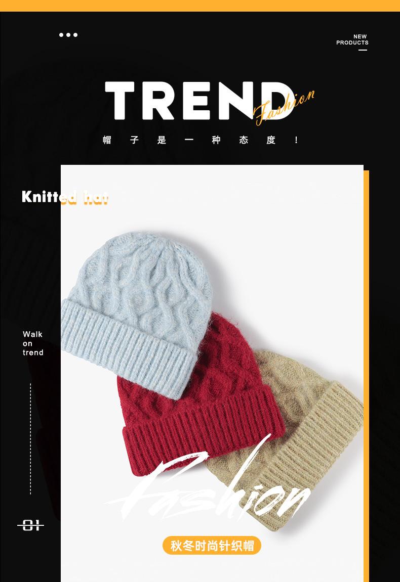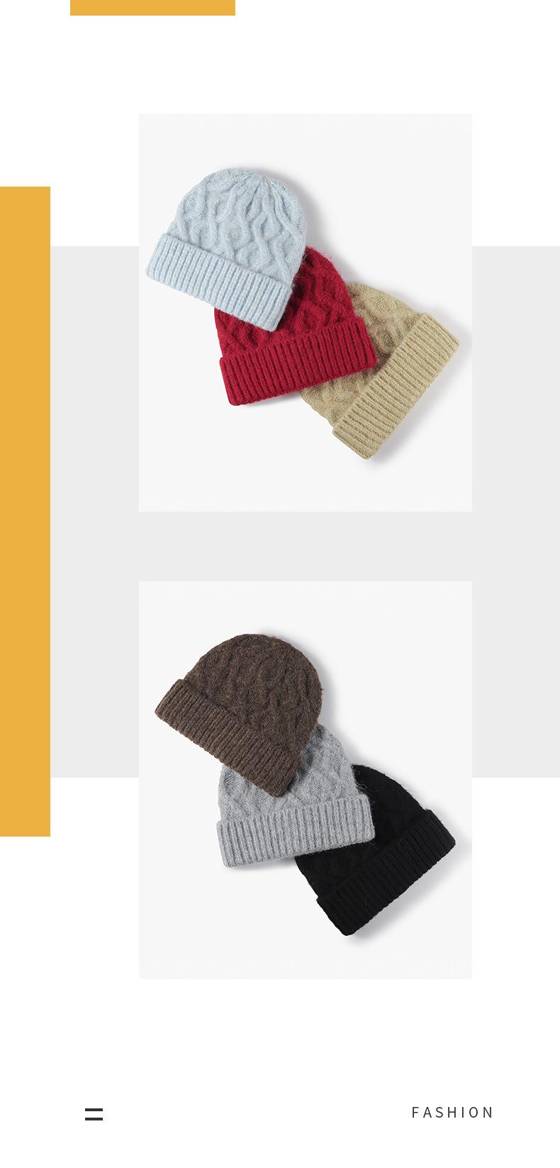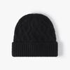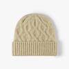 Gorro de lana de moda para mujer, otoño e invierno, a rayas, jacquard, cálido y grueso, para exteriores, tejido a mano, con placa ligera transfronteriza.
