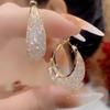 Pendientes Elegantes de Flores Estilo Hong Kong Largos de Metal Estilo Socialité Exagerado Temperamento Moda Únicos Femeninos Cara Delgada