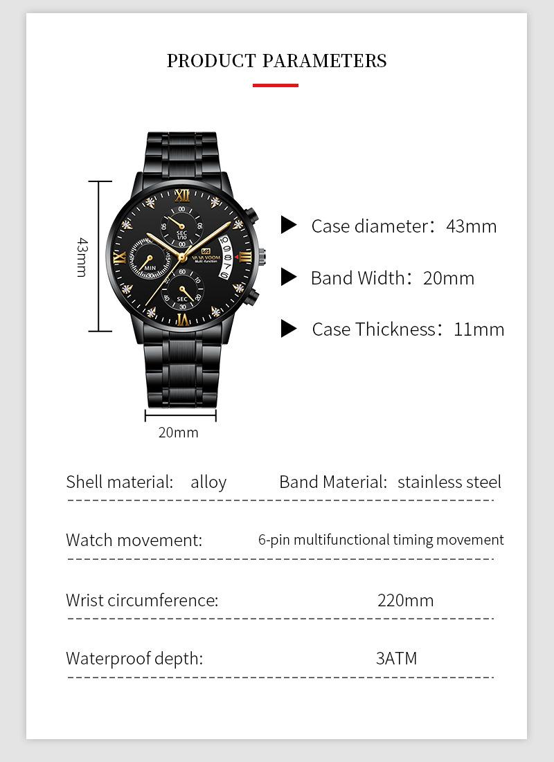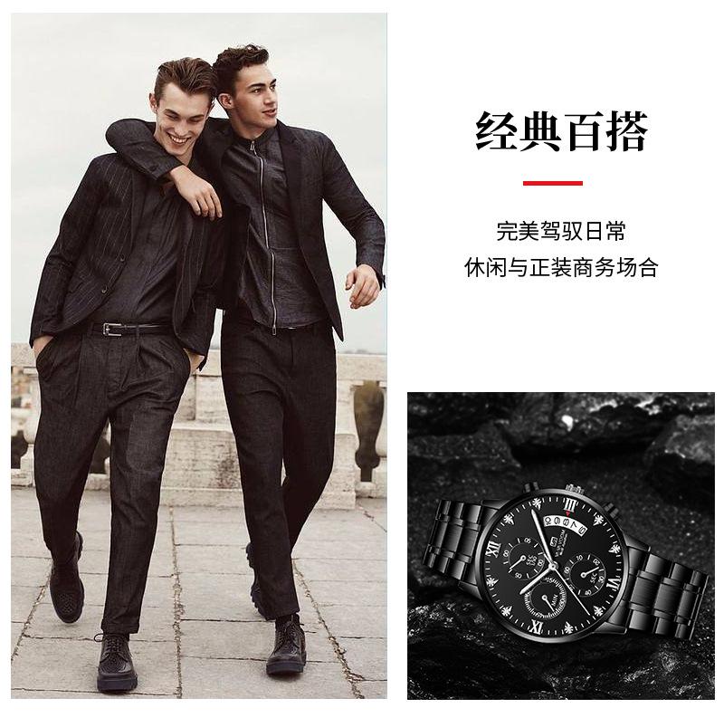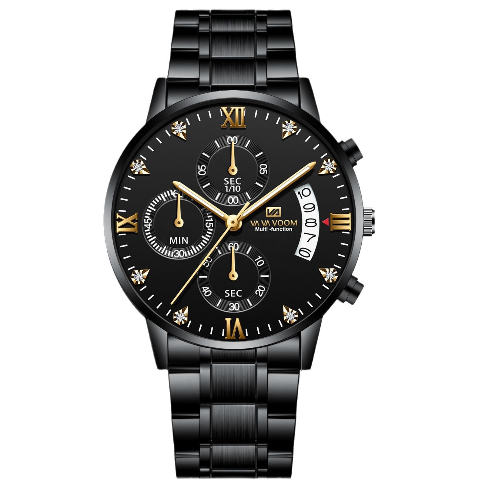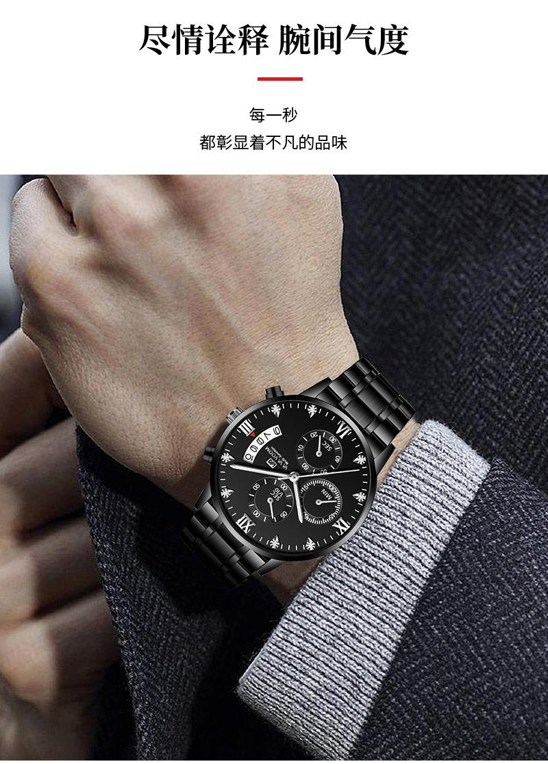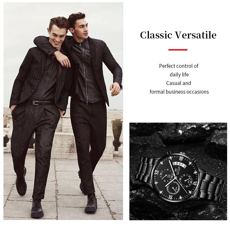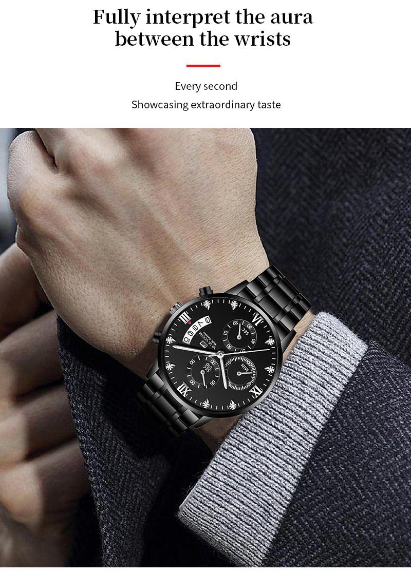 Reloj de Pulsera para Hombre con Banda de Acero Inoxidable Amazon Transfronterizo, Estilo Europeo y Americano, Negocios Sencillo, Calendario, Cuarzo, Resistente al Agua