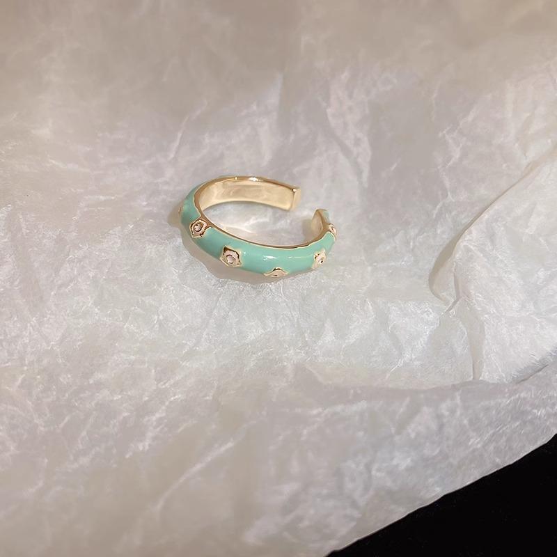 Anillo de estrella con gota de aceite de flor abierta, anillo de dedo simple, pequeño, fresco, de nicho, ligero, lujoso, con temperamento, joyería al por mayor