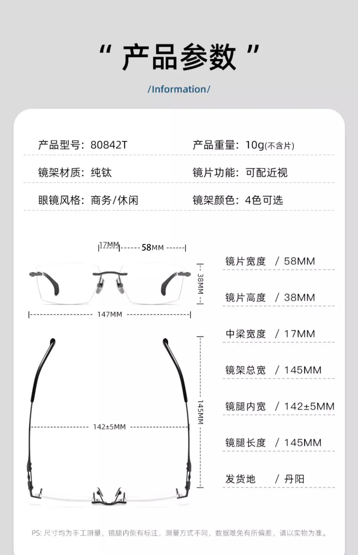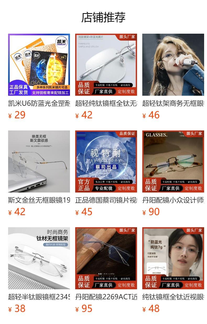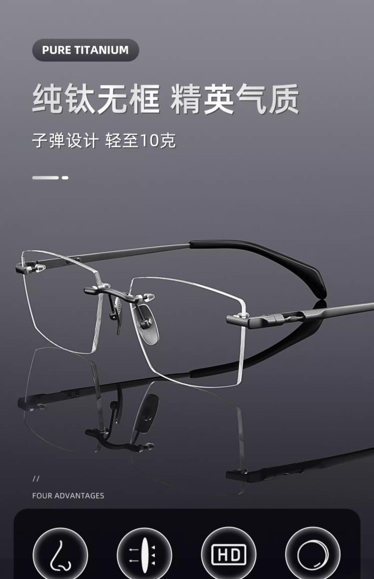 Armazón de Lentes de Lujo Ligero de Alta Gama Ultraligero Sin Montura Armazón de Titanio Puro Lentes para Miopía Lentes para Hombre Venta al por Mayor de Lentes Danyang