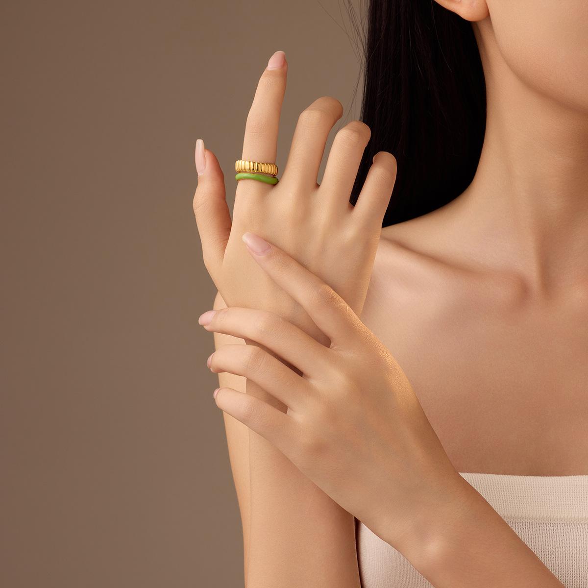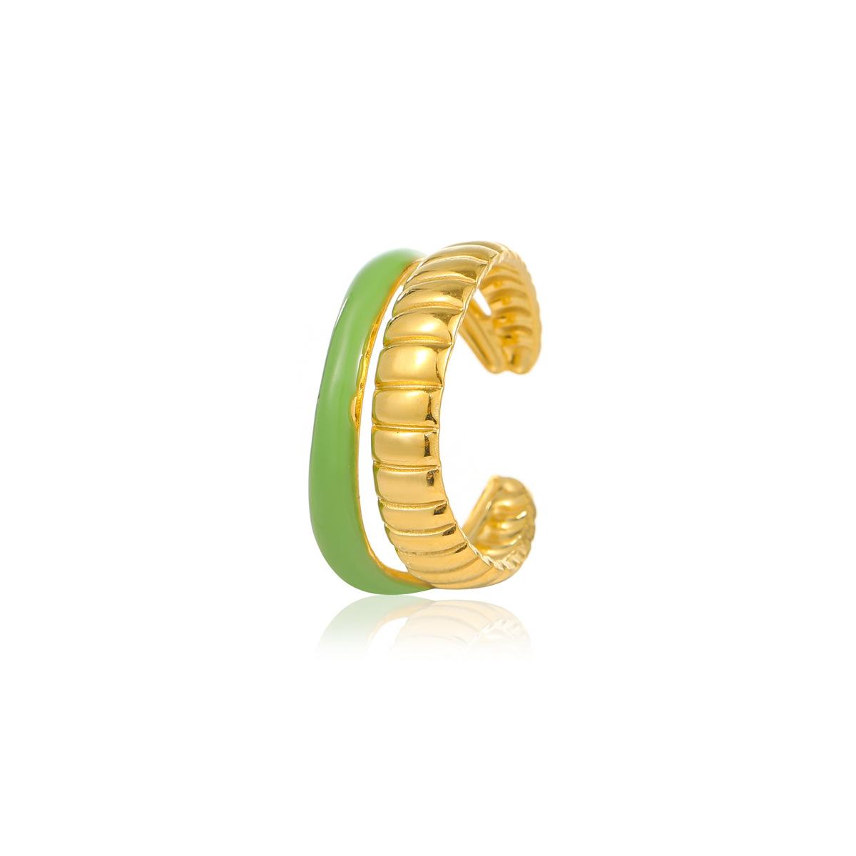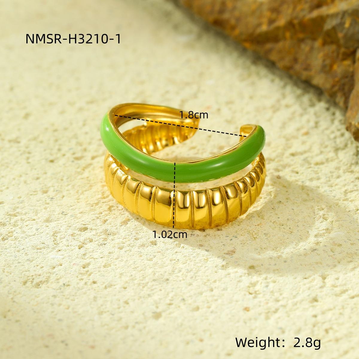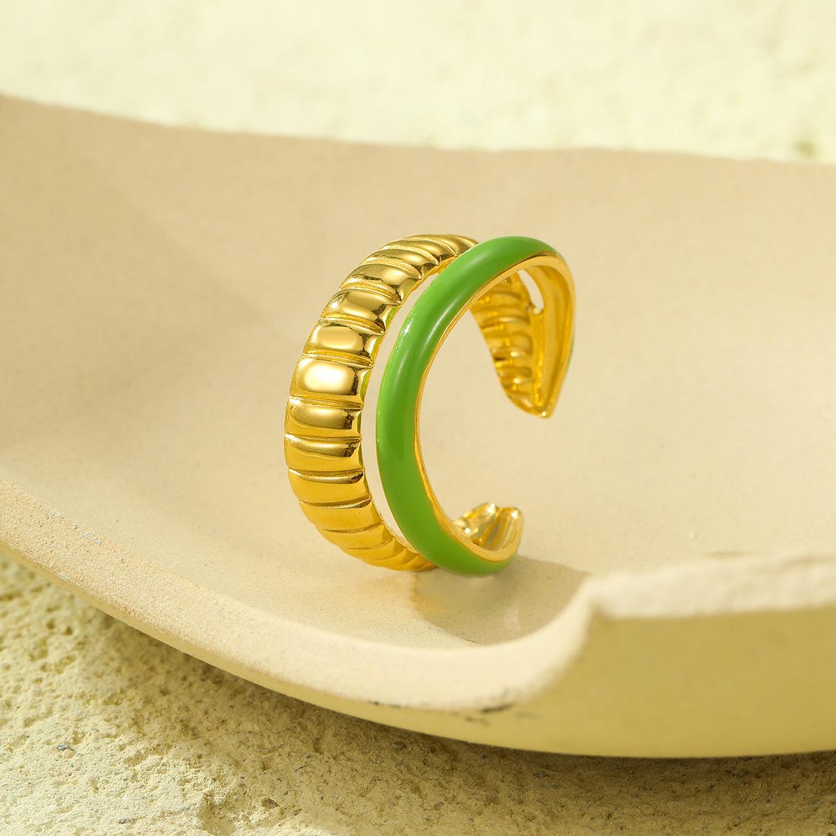 Compra Anillo abierto de acero inoxidable con doble raya y gota de aceite verde viento INS de oro de 18 quilates en color rojo y rojo europeo y americano, joyería al por mayor al por mayor en Joom.pro