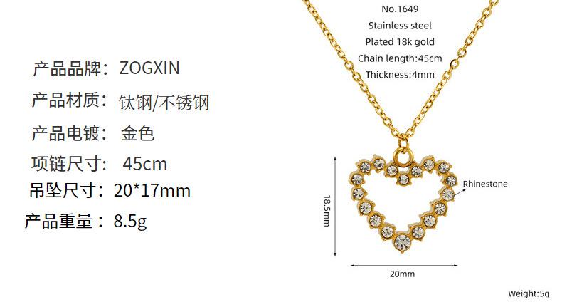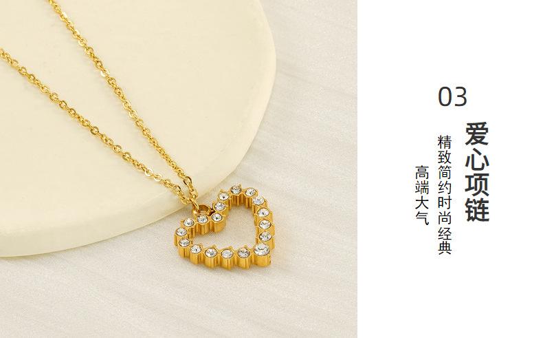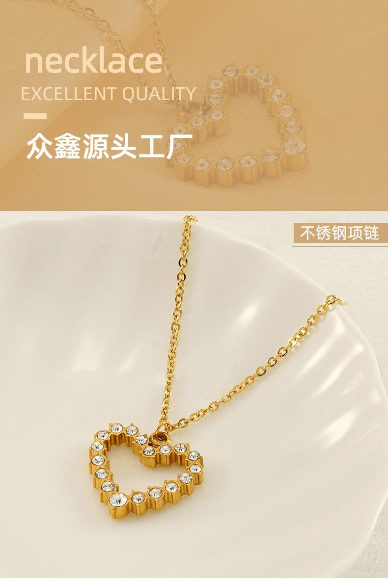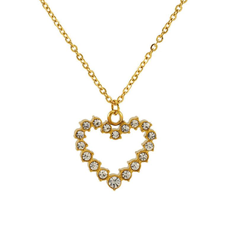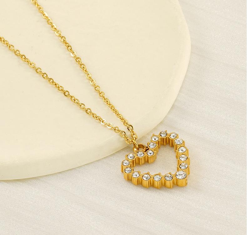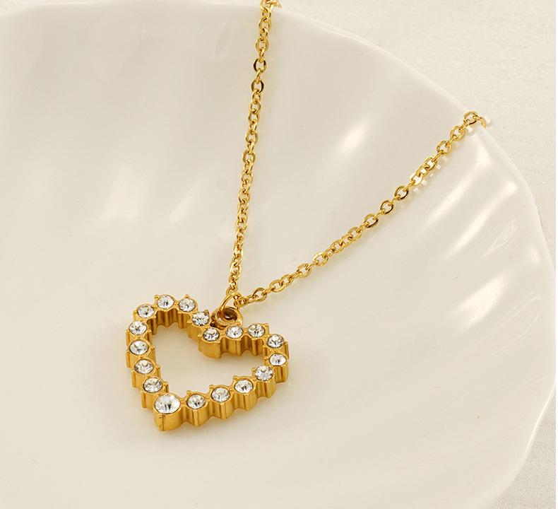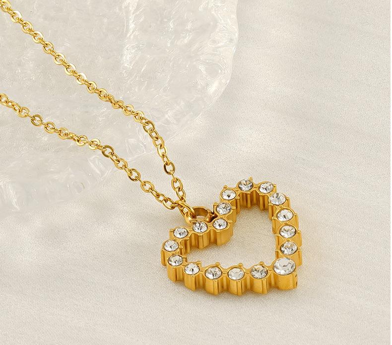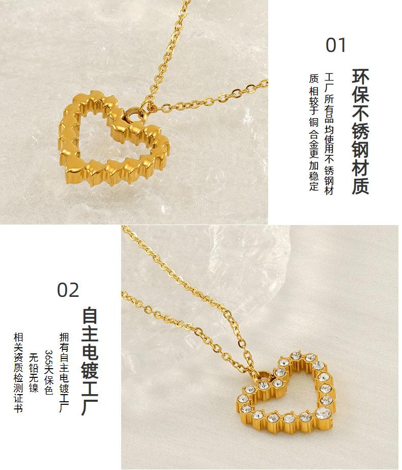 Nuevo Collar de Amor de Acero Inoxidable de Lujo Ligero Europeo y Americano para Mujer, Cadena de Clavícula con Colgante de Corazón de Diamante Dorado Moderno y Versátil para Mujer