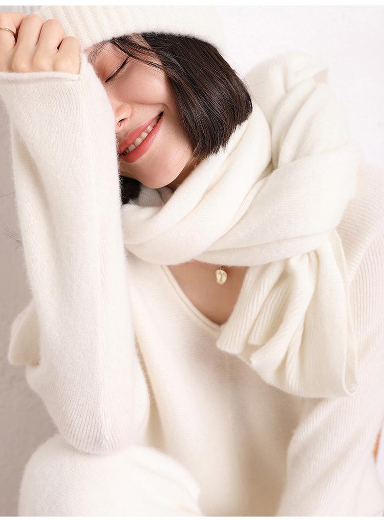 Cachemira Suave y Acogedora Otoño e Invierno Nuevo Color Sólido Versátil Protector de Cuello Bufanda Plana Chal Ropa de Mujer Estilo Casual Relajado