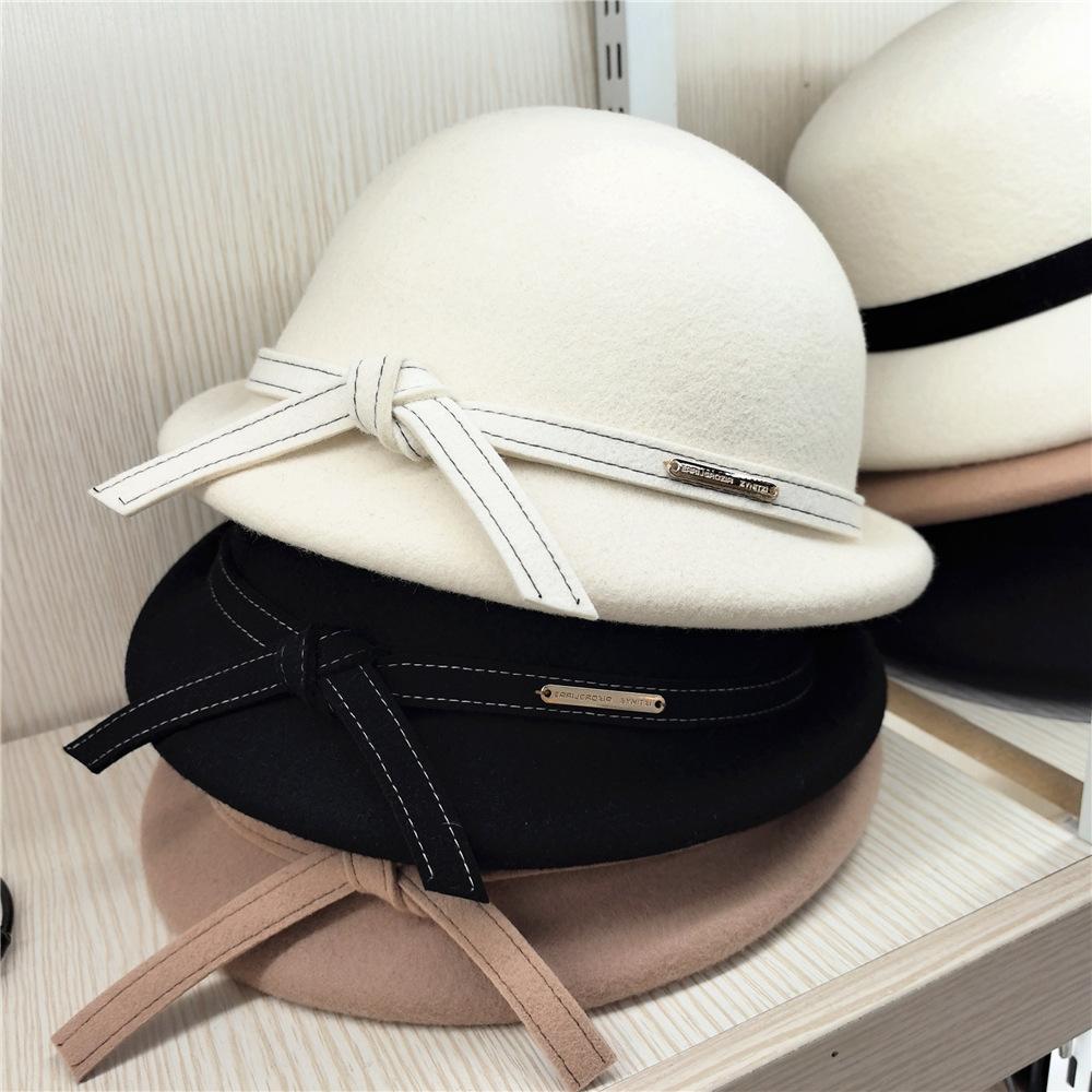 Sombrero de lana para mujer de otoño e invierno de alta calidad, sombrero pequeño estilo británico, estilo estrella coreana, boina moderna y elegante