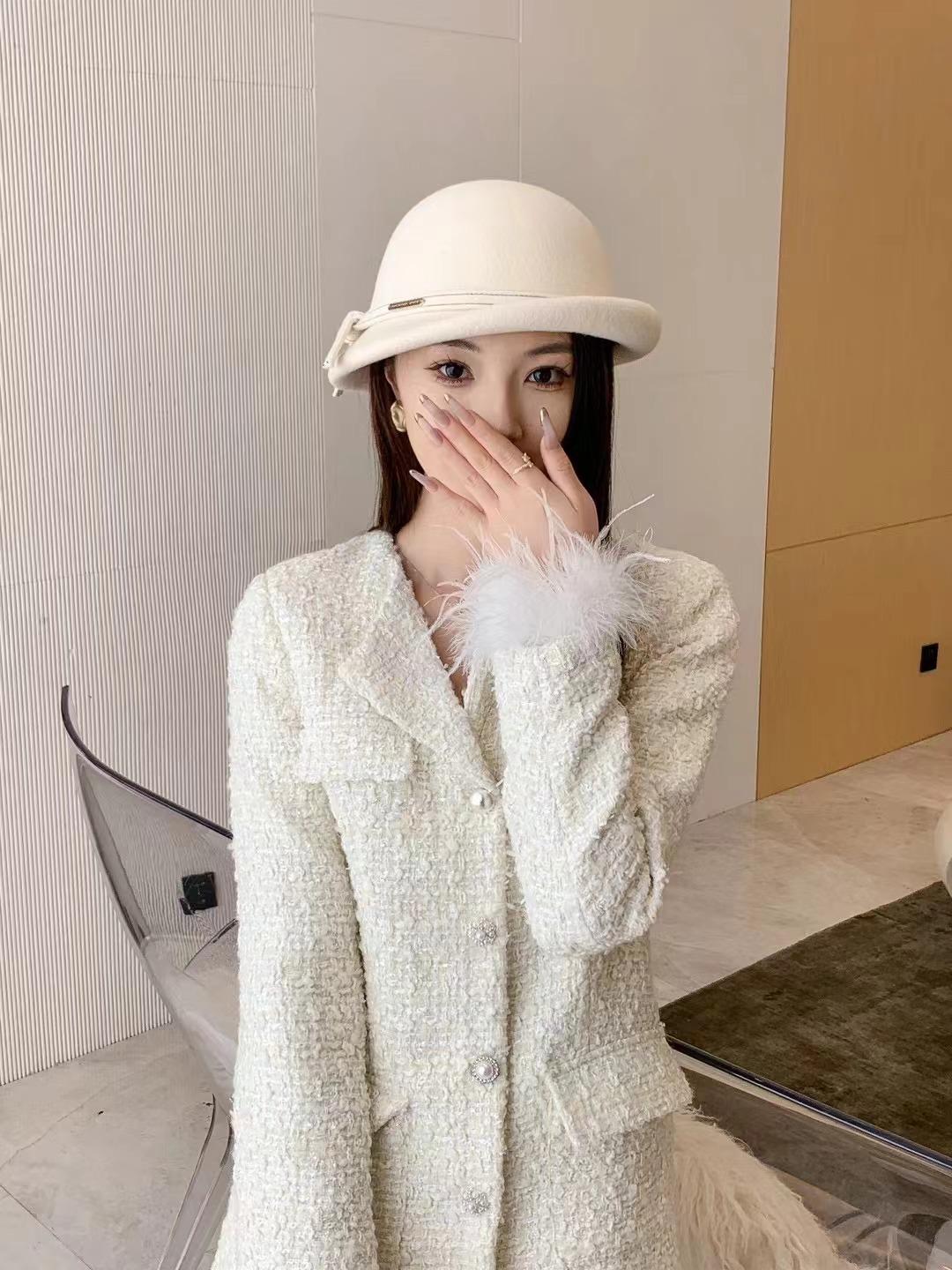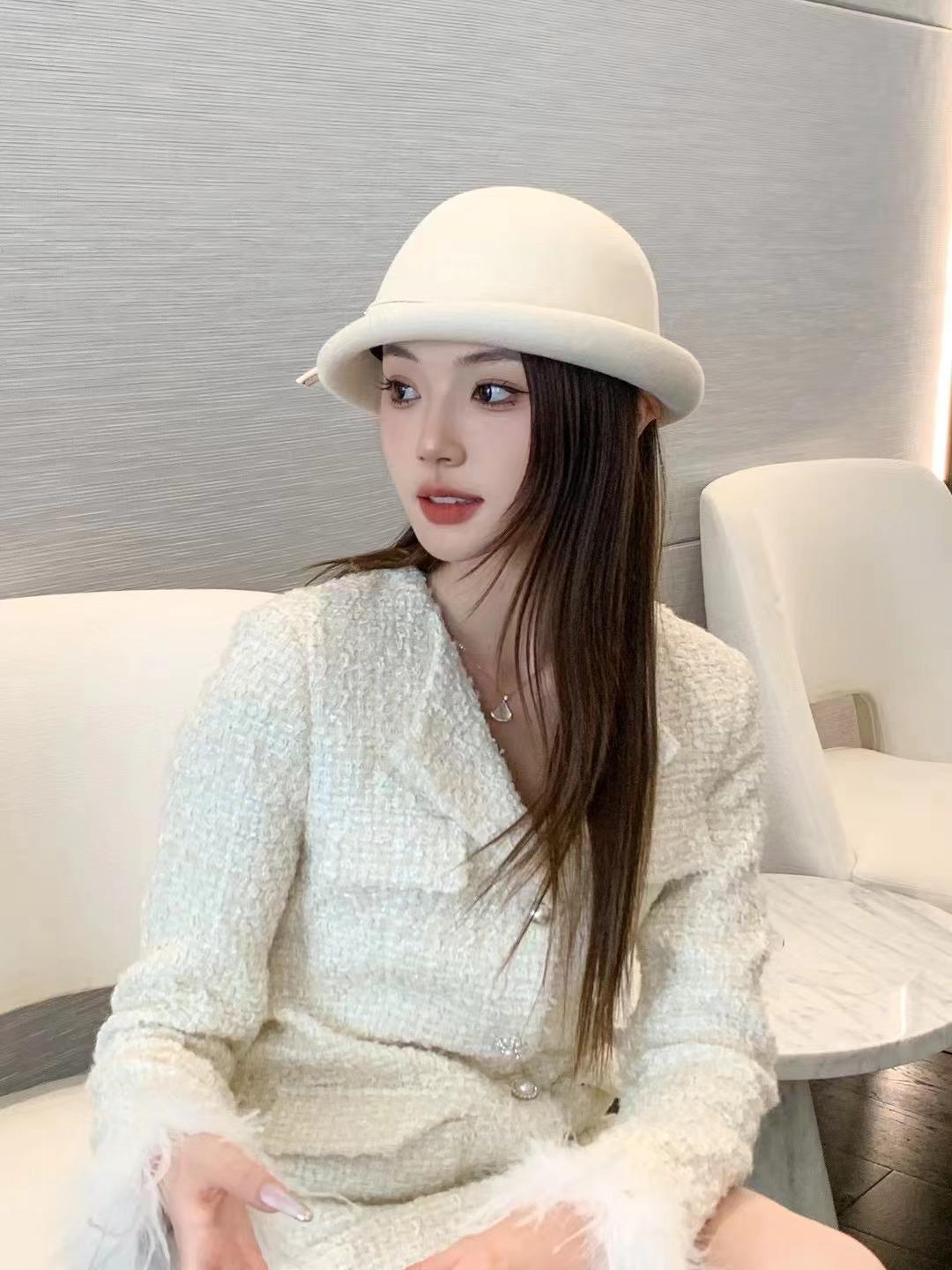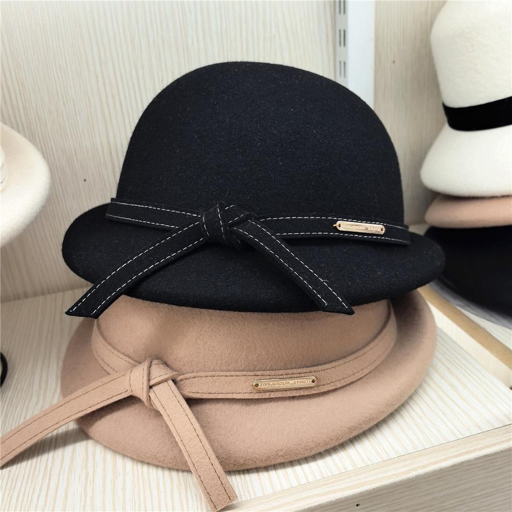 Sombrero de Lana para Mujer de Otoño e Invierno de Alta Calidad Nuevo Estilo Británico Sombrero Pequeño de Copa Estilo Coreano Estrella Moda Boina Elegante