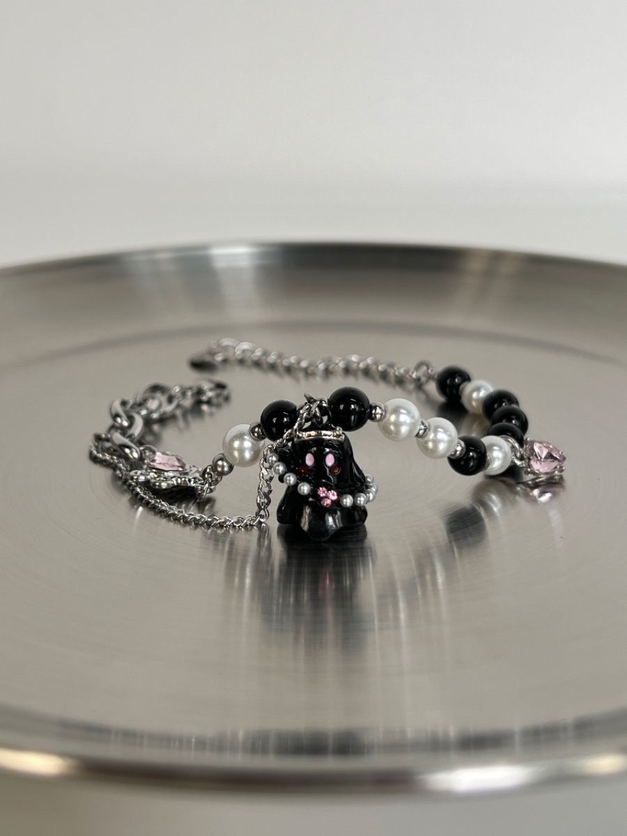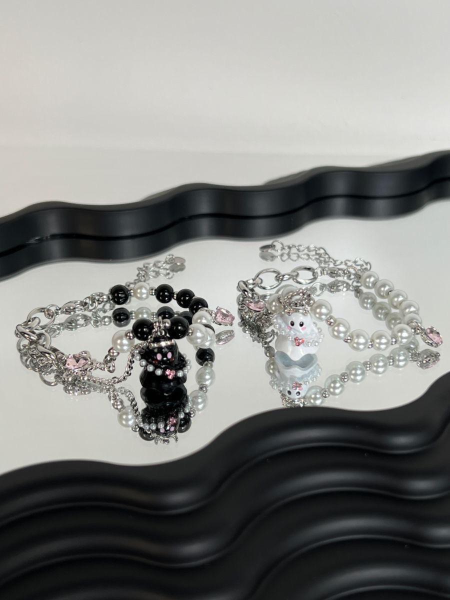 Pulsera de pareja con cuentas de fantasma en blanco y negro, accesorios para novia, estilo nicho, estilo frío, avanzado, dulce, genial, joyería de hip hop.