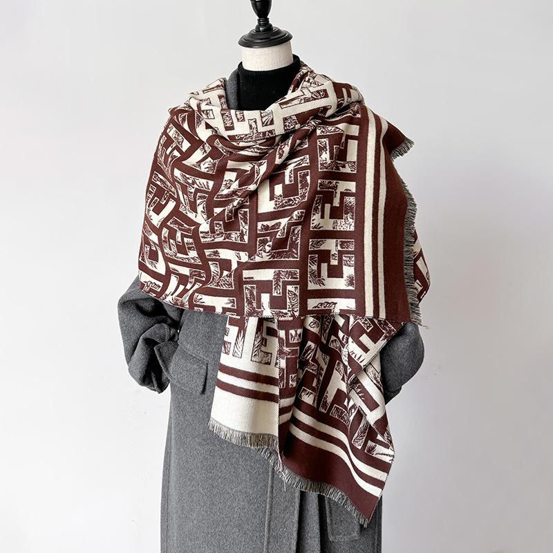 Bufanda chal cálida y cómoda, transpirable, suave y de alta gama, de cachemira, de moda geométrica para mujer, otoño e invierno.