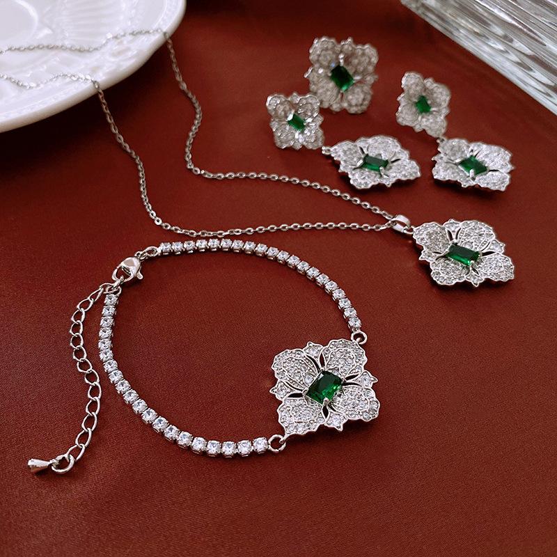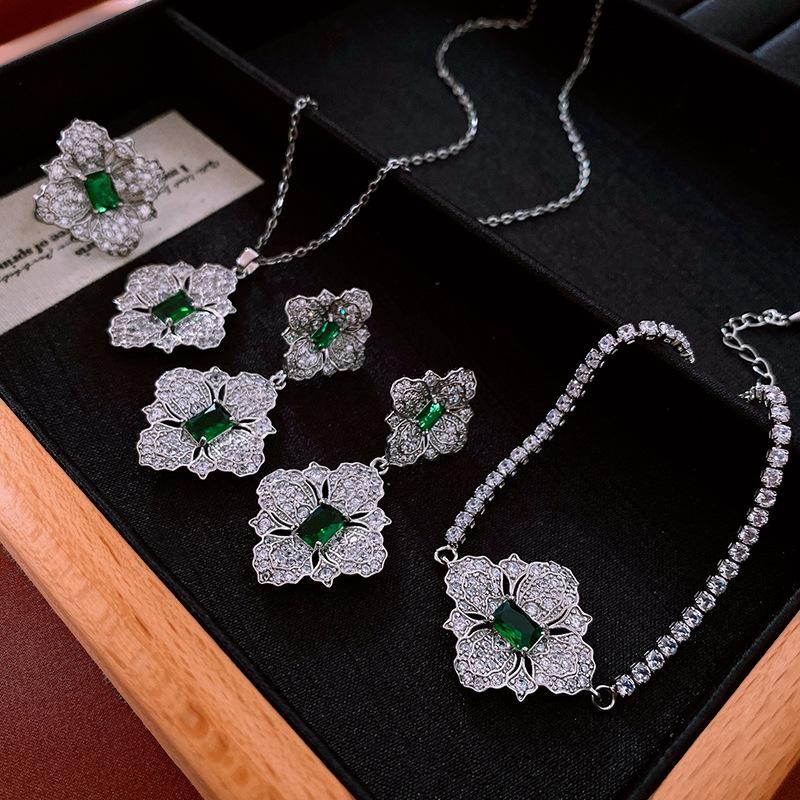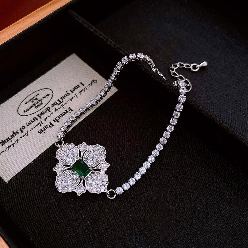 Collar de flores de diamantes y circonitas transfronterizas, cadena de clavícula de diseño retro de lujo ligero, joyería de alta gama de nicho, venta al por mayor para mujeres