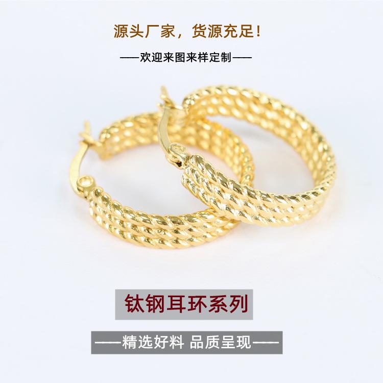 Aretes Coreanos de Nicho de Acero de Titanio, Aretes de Acero de Titanio Dorado Torcido, Acero Inoxidable Dorado Arena, Aretes de Botón para Mujer, Joyería al Mayoreo de Alta Gama