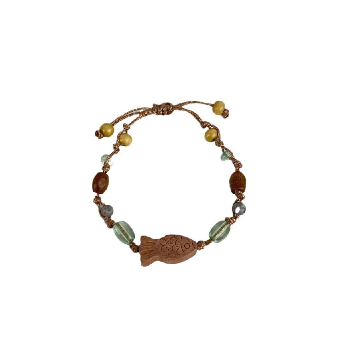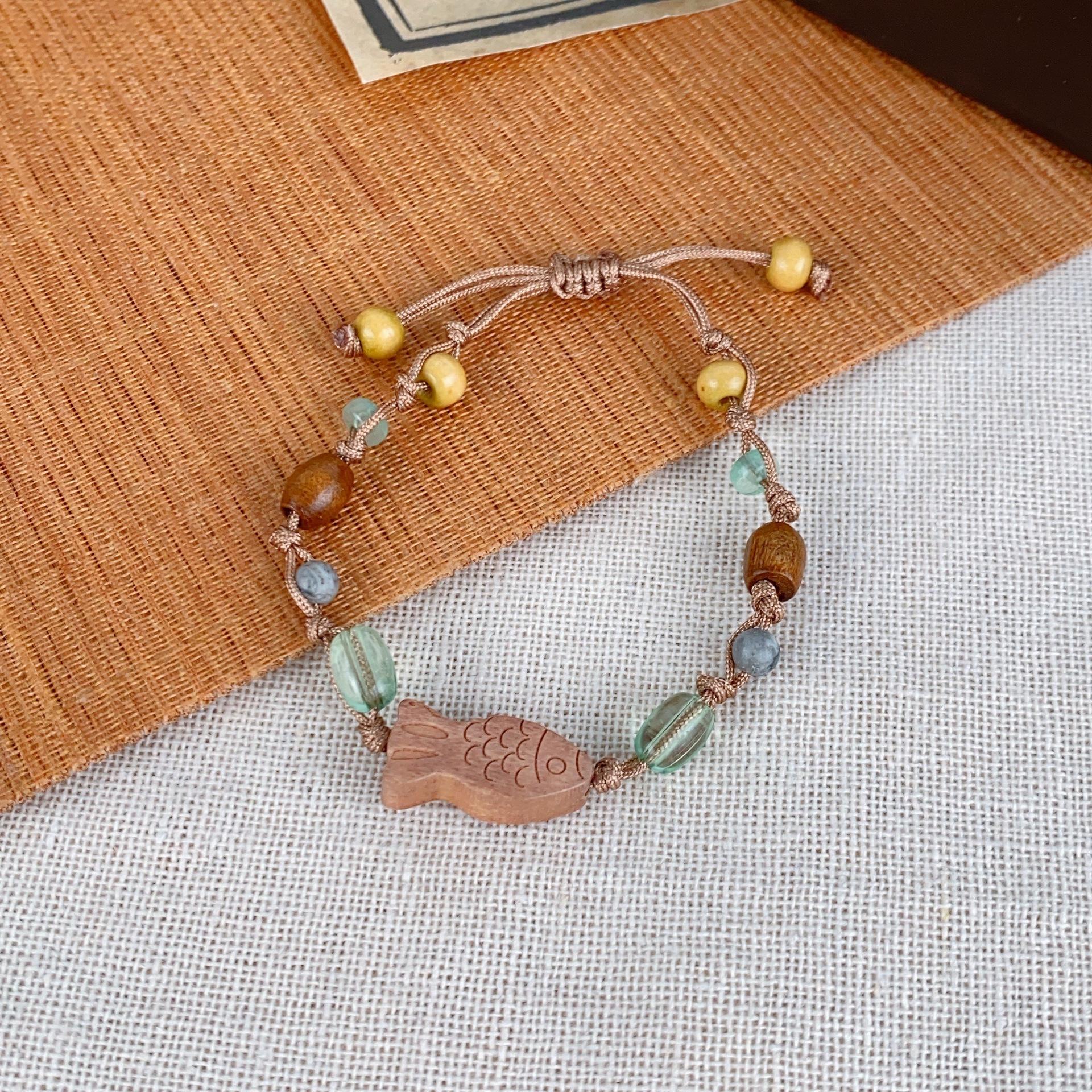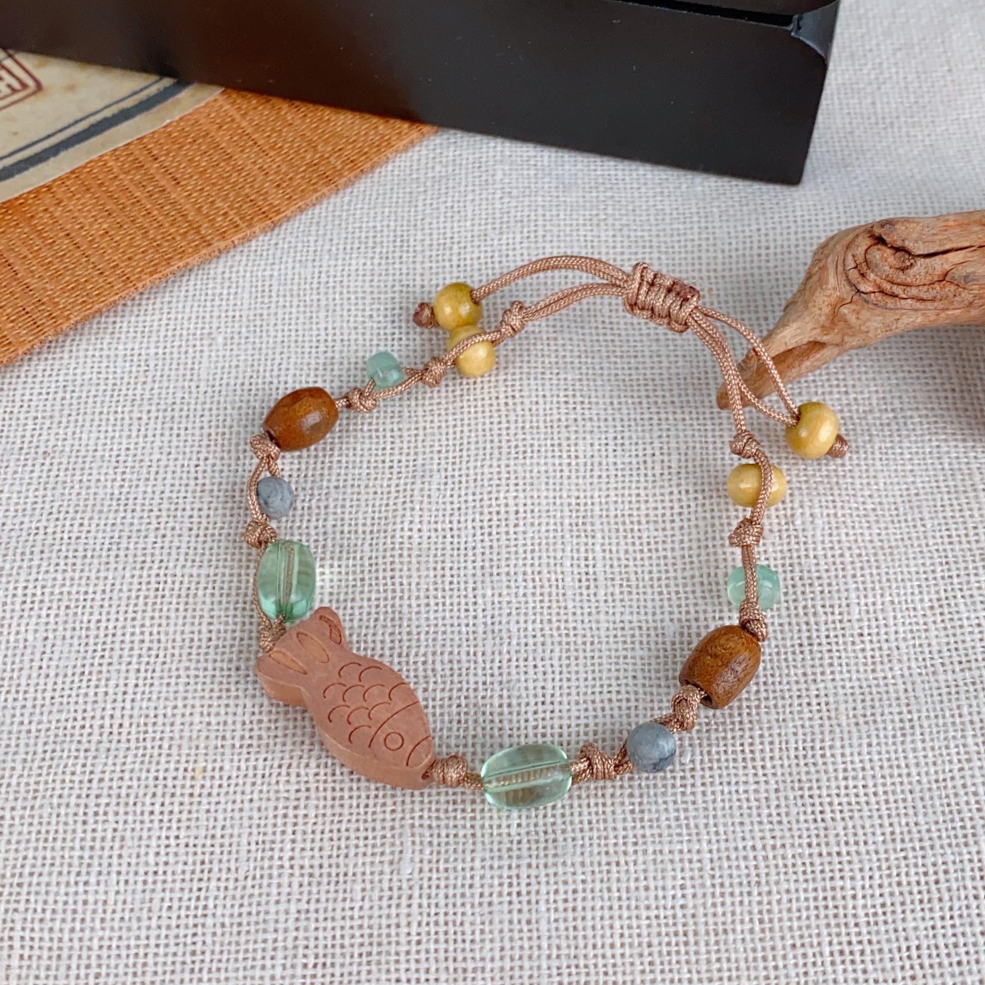 Pulsera de Mano de Cuerda de Madera Estilo Chino Nuevo Pez Koi Estilo Nacional Caoba Cool Vintage Hecha a Mano Tejida Nicho Estilo Ins Pulsera de Novia