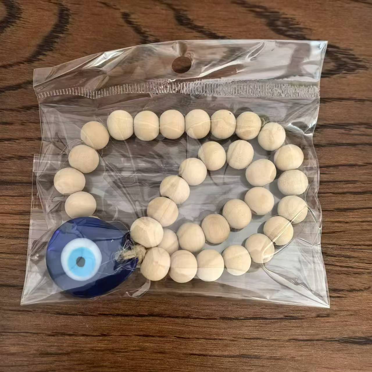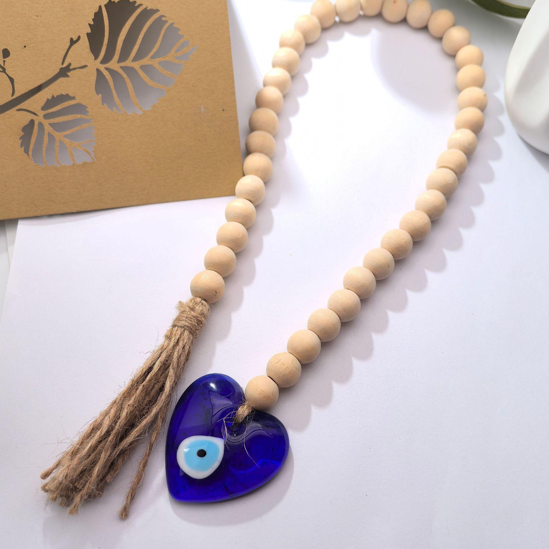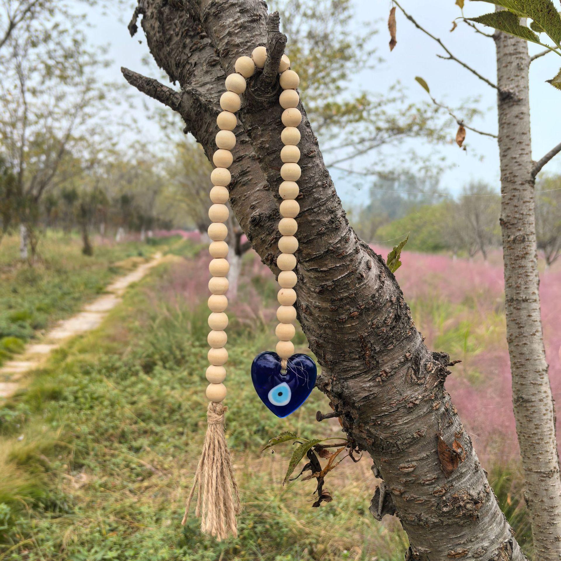 Cuentas de madera de estilo nórdico de nicho, cuentas de Nazar, ojos azules, ojo del diablo, adornos colgantes para el coche y el hogar.
