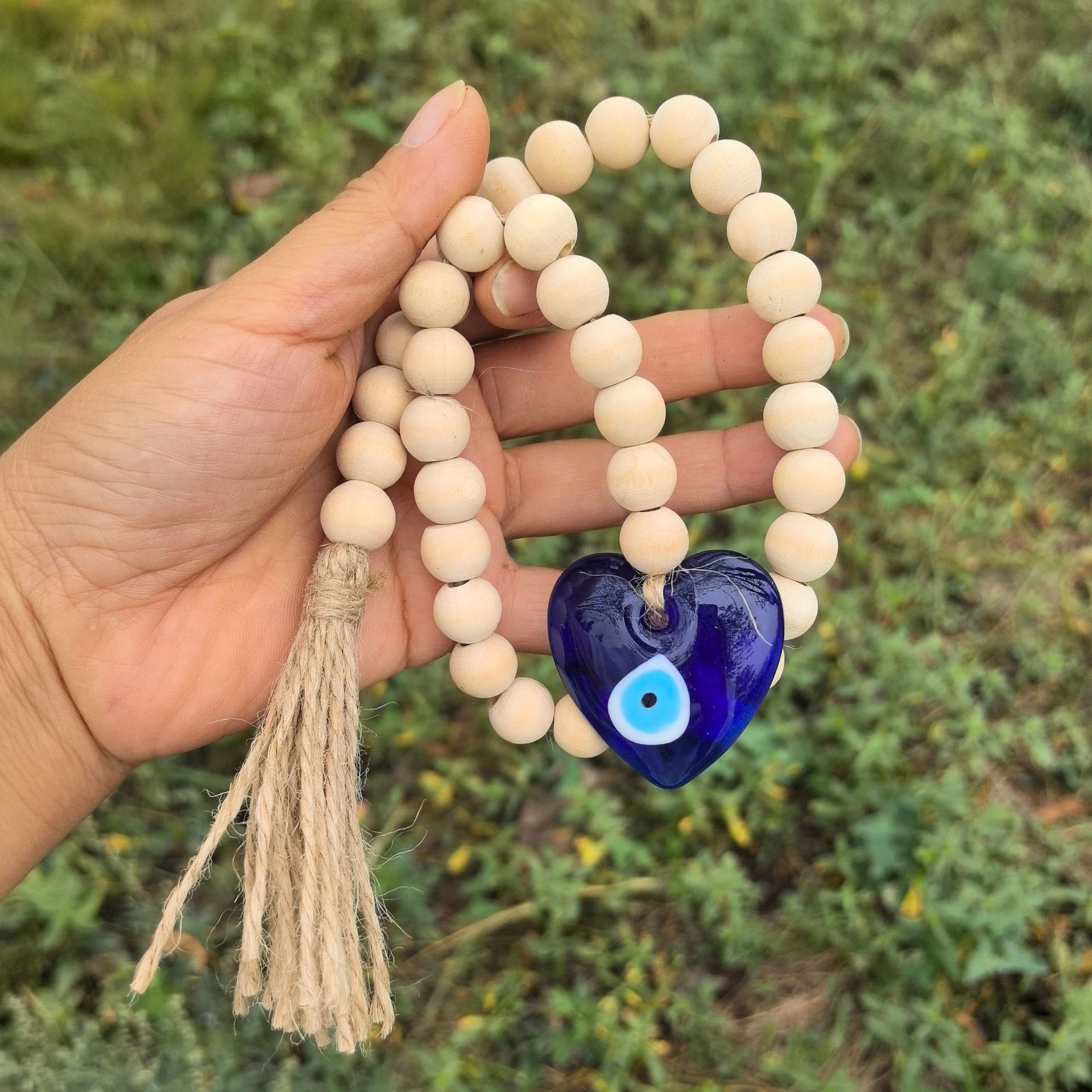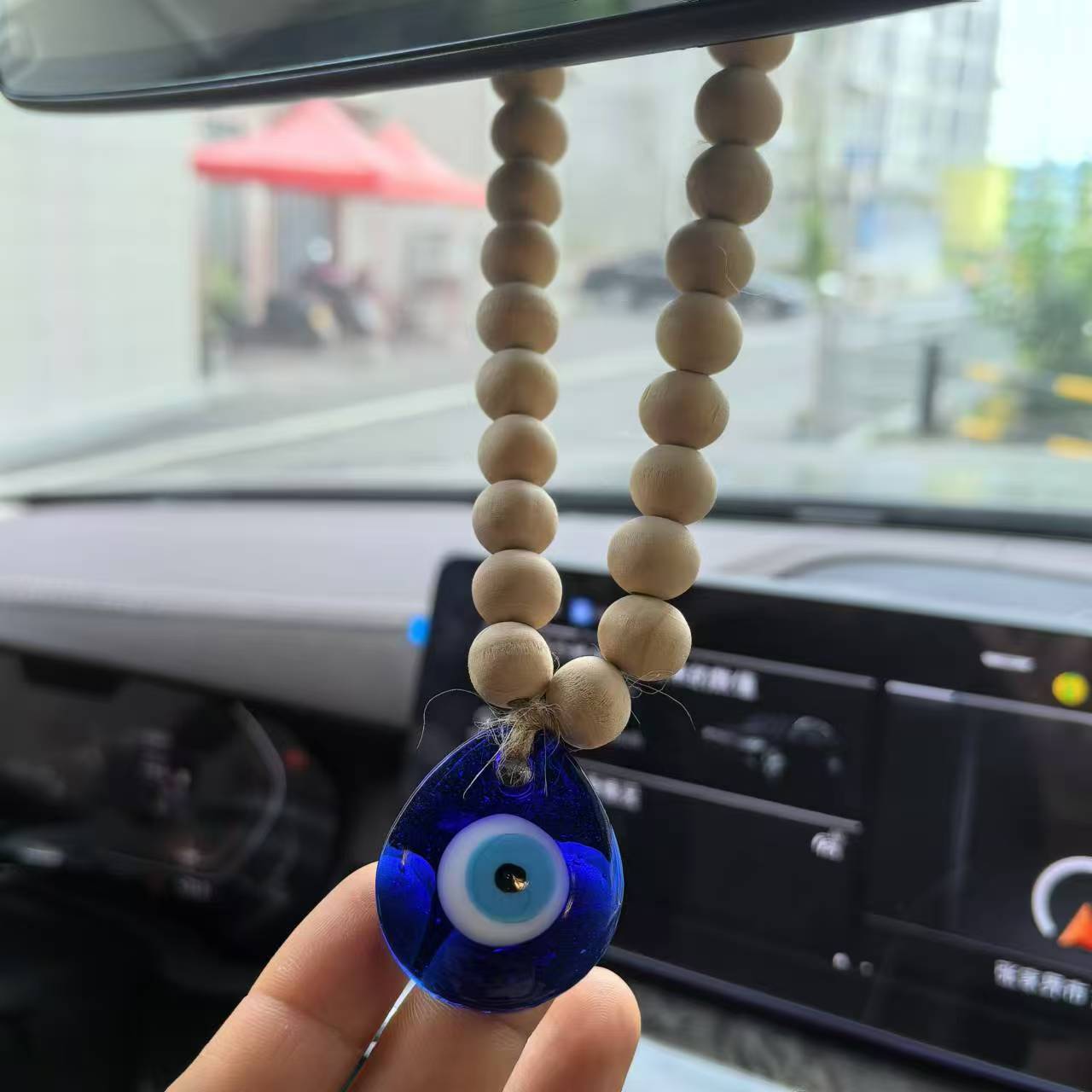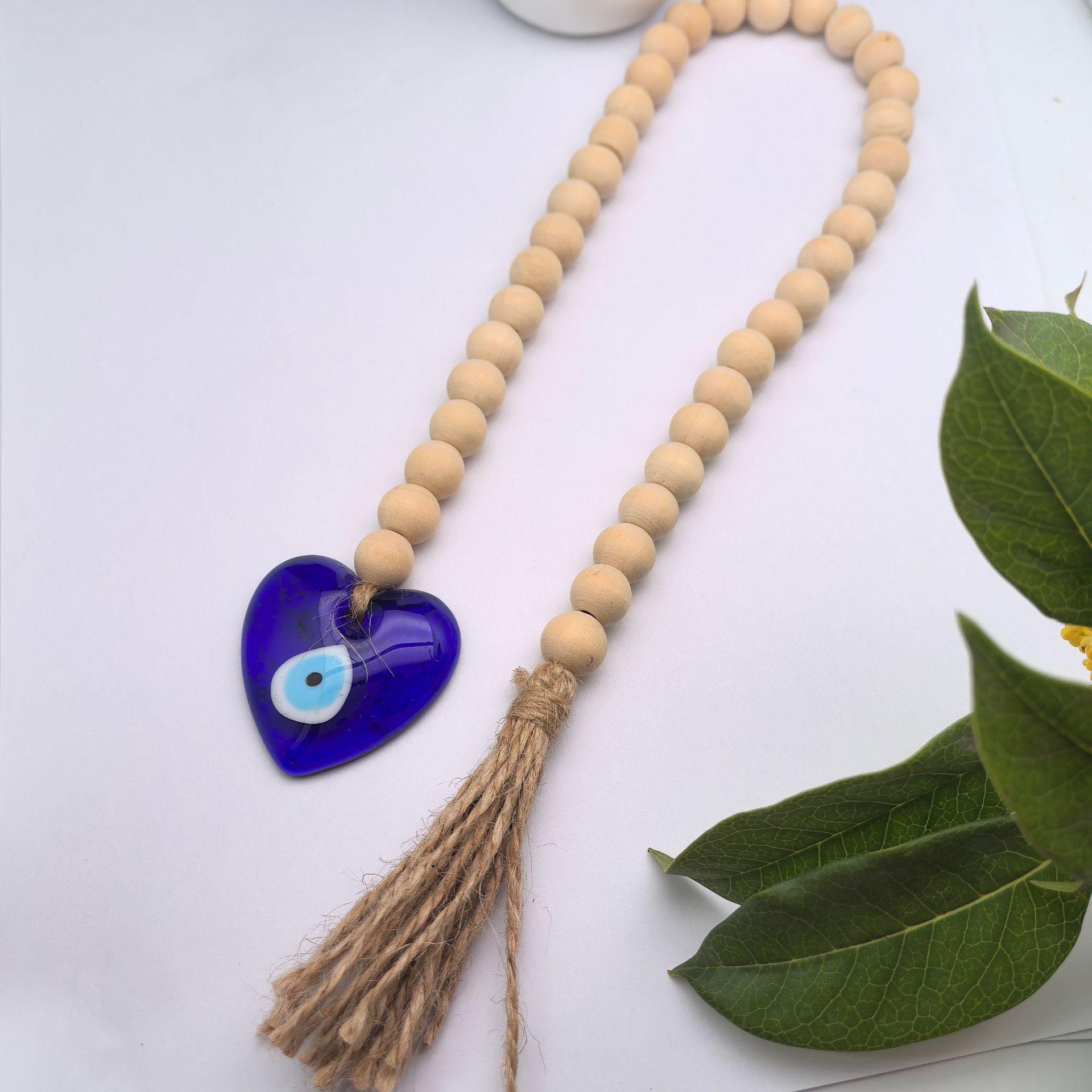 Cuentas de madera de estilo nórdico de nicho, cuentas de Nazar, ojos azules, ojo del diablo, adornos colgantes para el coche y el hogar.