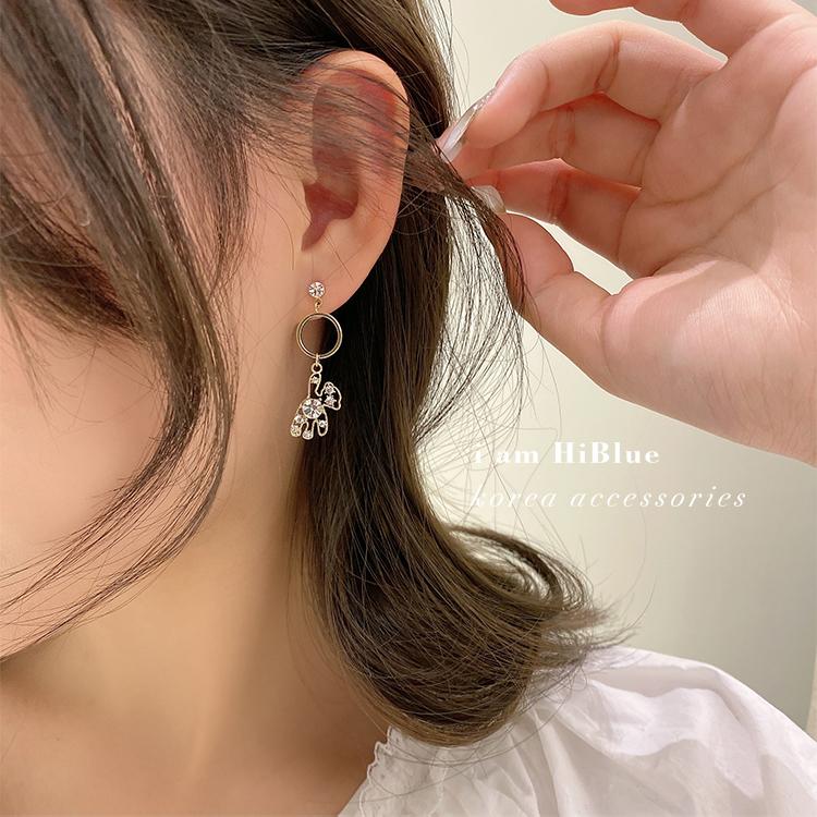 Lindos pendientes de oso elegantes para mujer, estilo francés, pendientes de celebridades de Internet, pendientes sencillos de moda que combinan con todo, nueva moda 2023