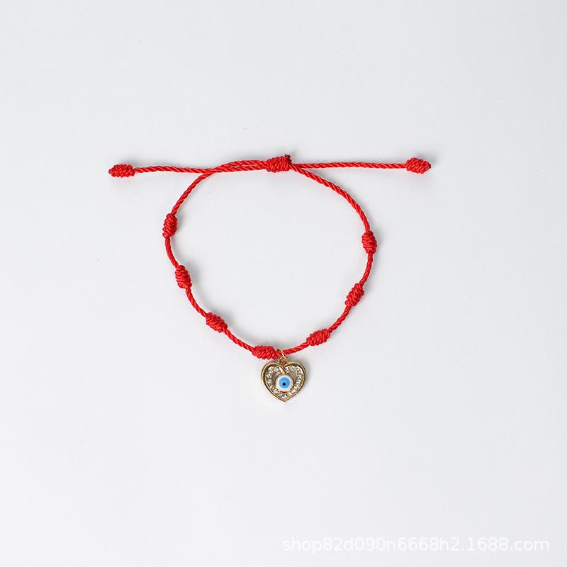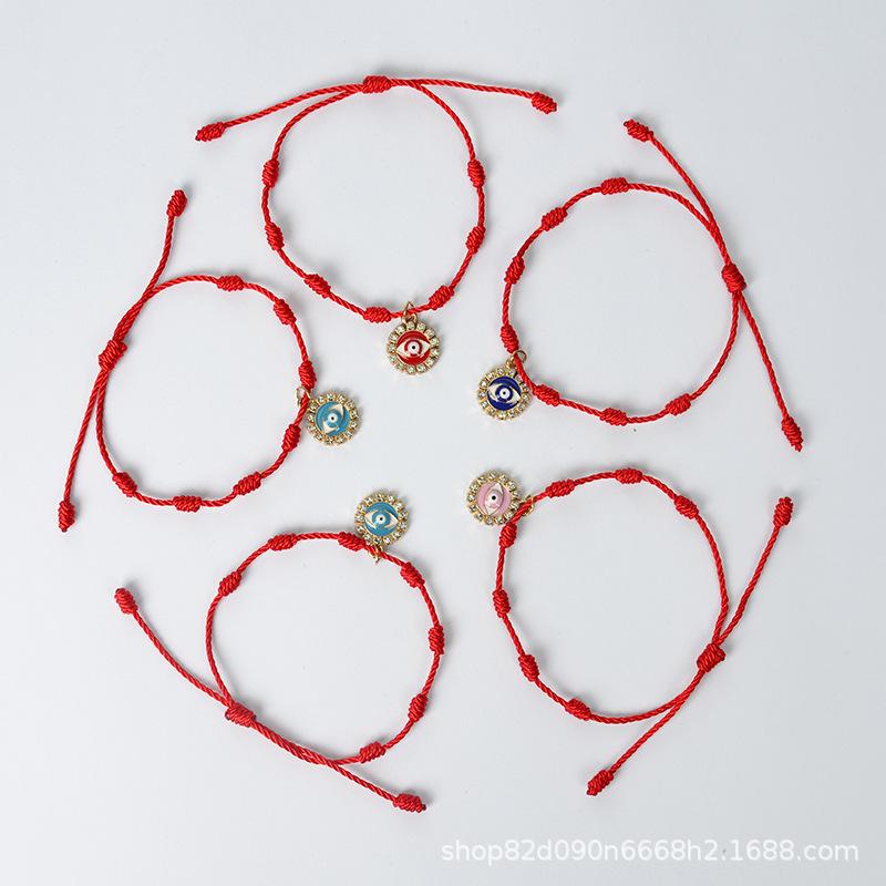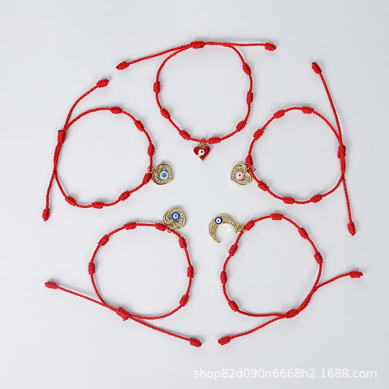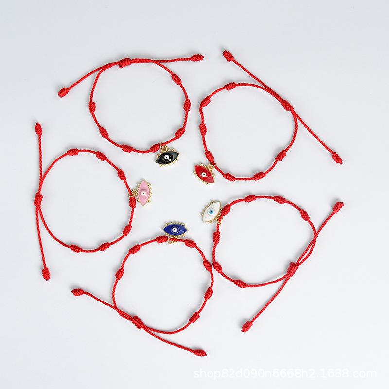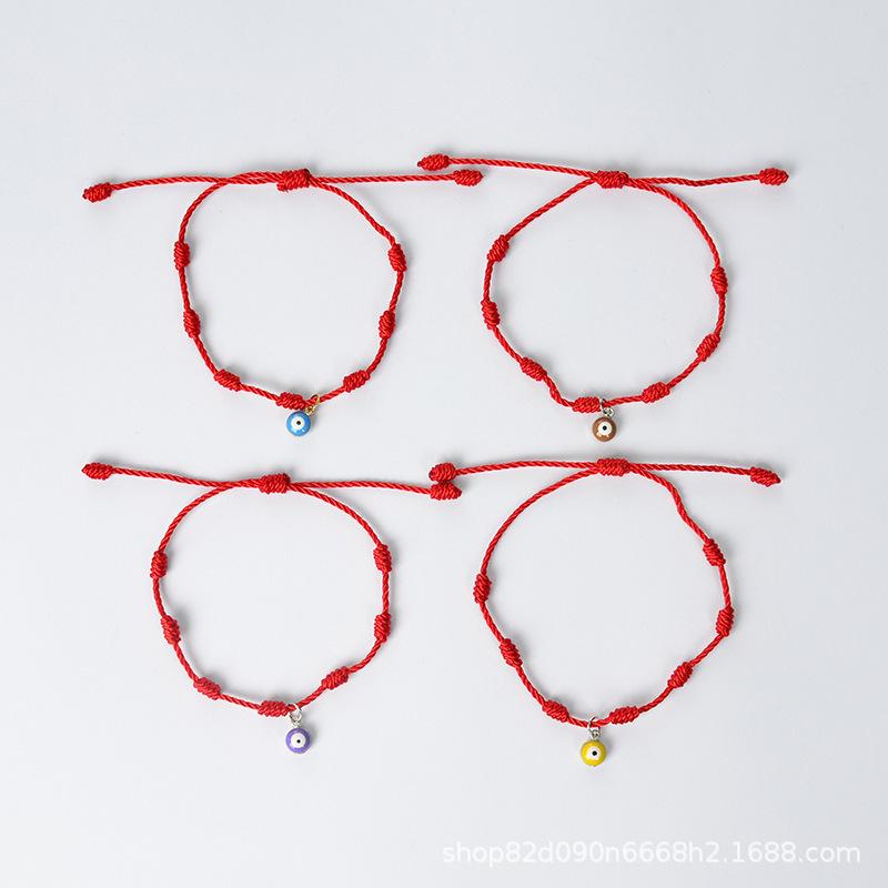 Pulsera de la suerte para pareja popular transfronteriza de Europa y Estados Unidos, demonio turco ojo malvado, tejida a mano con cuerda roja, siete secciones