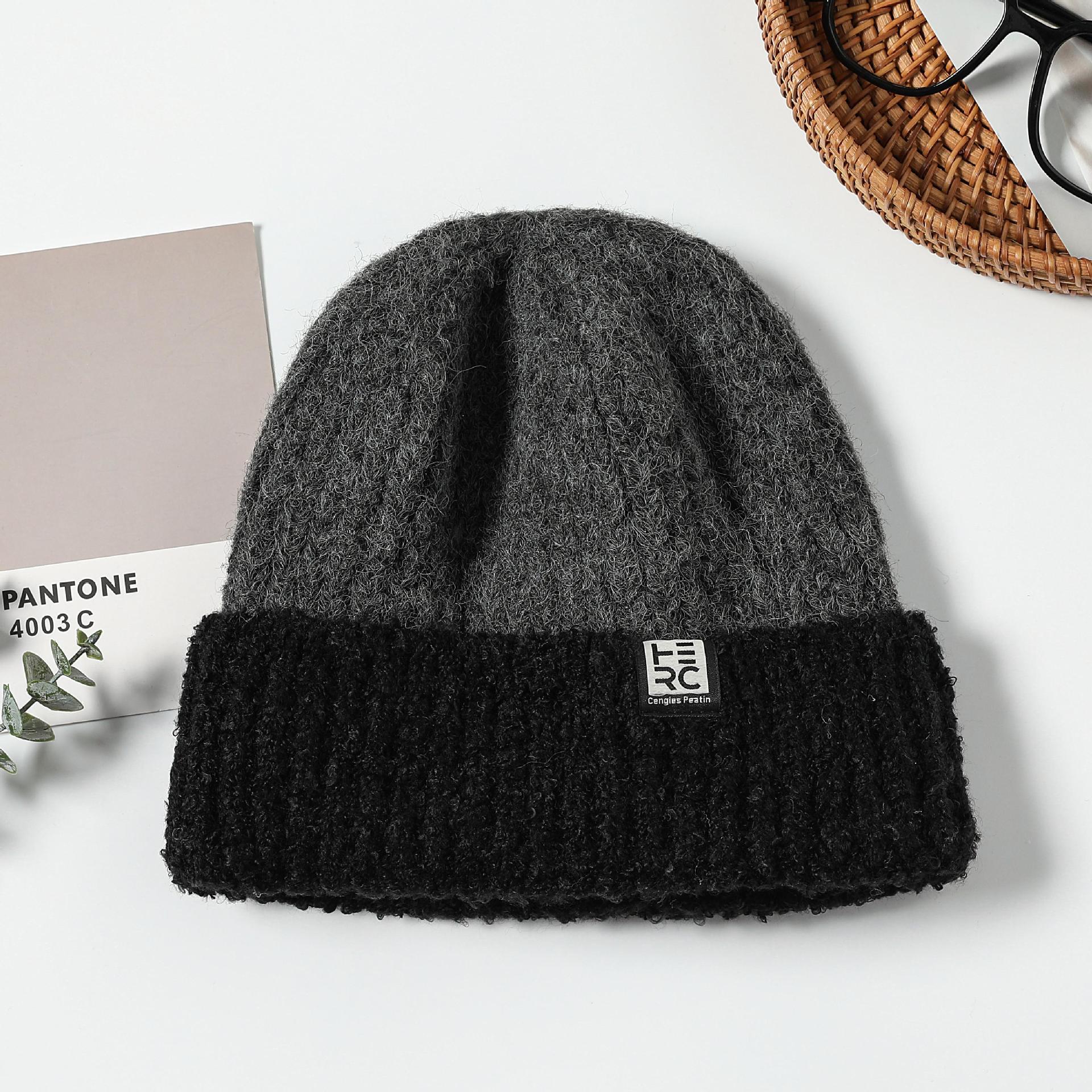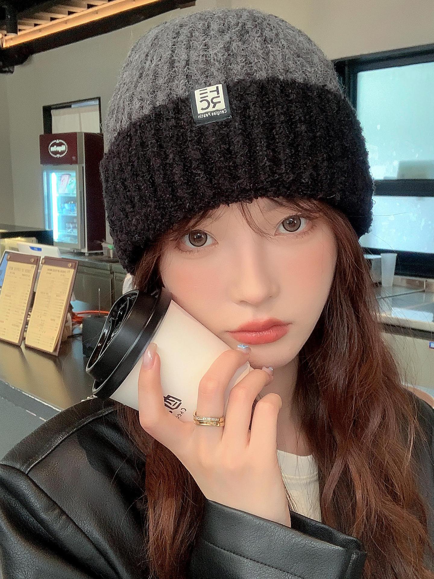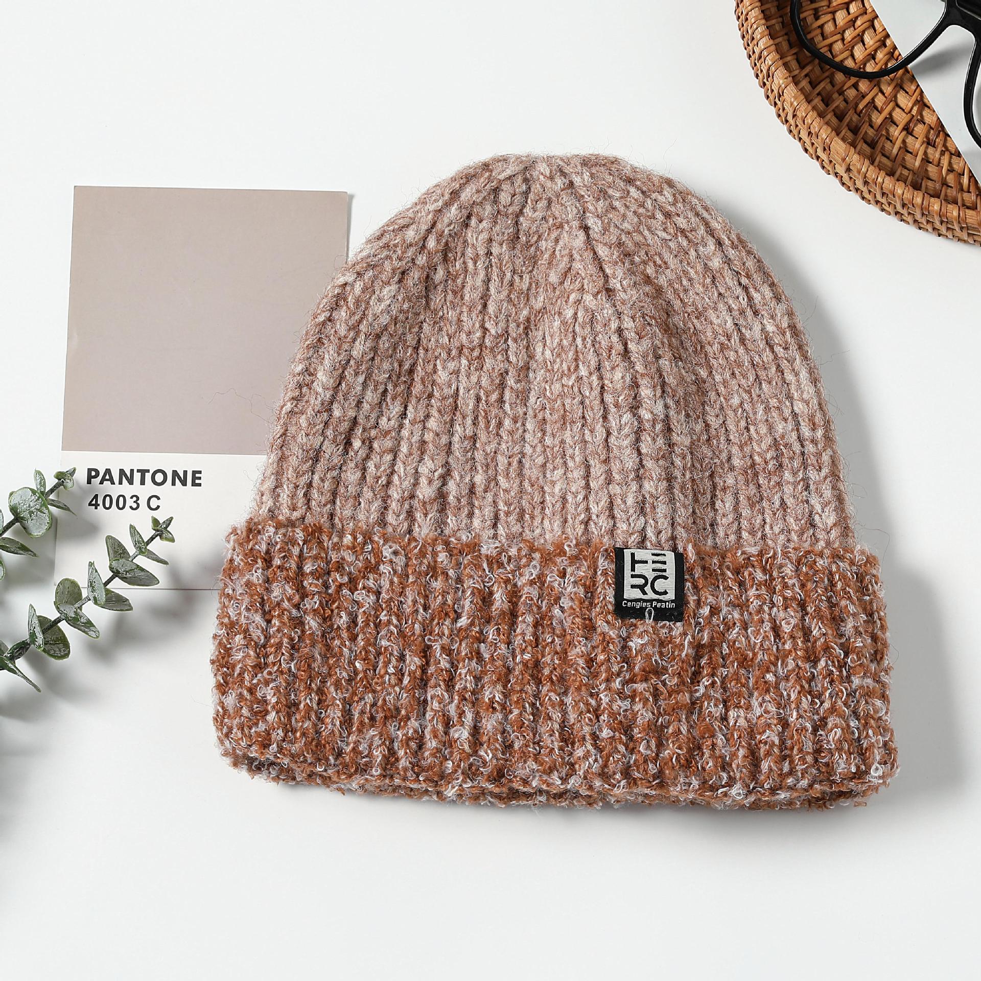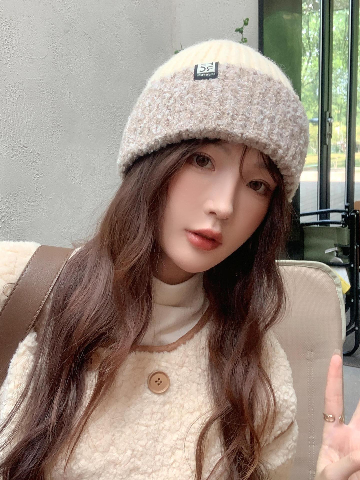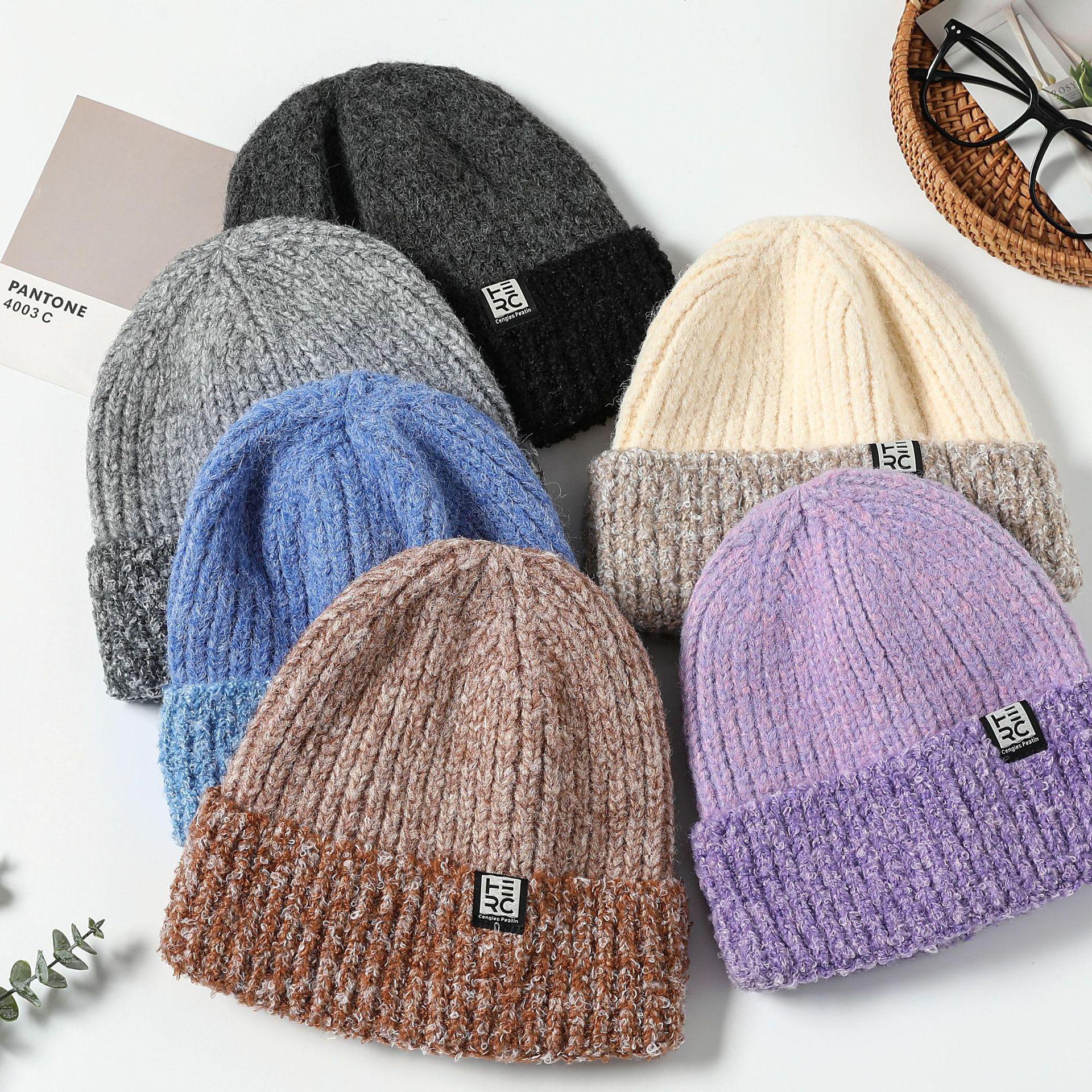 Gorro de punto de lana vintage para mujer, otoño e invierno, grueso, cálido, combinable con todo, pequeño gorro de lana, protección para las orejas, gorro frío, moderno.