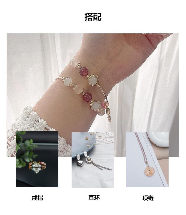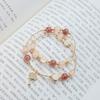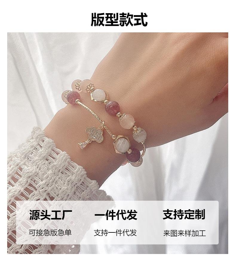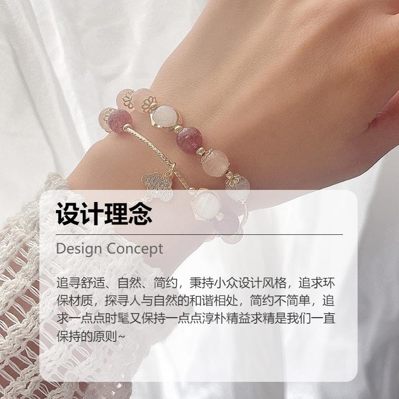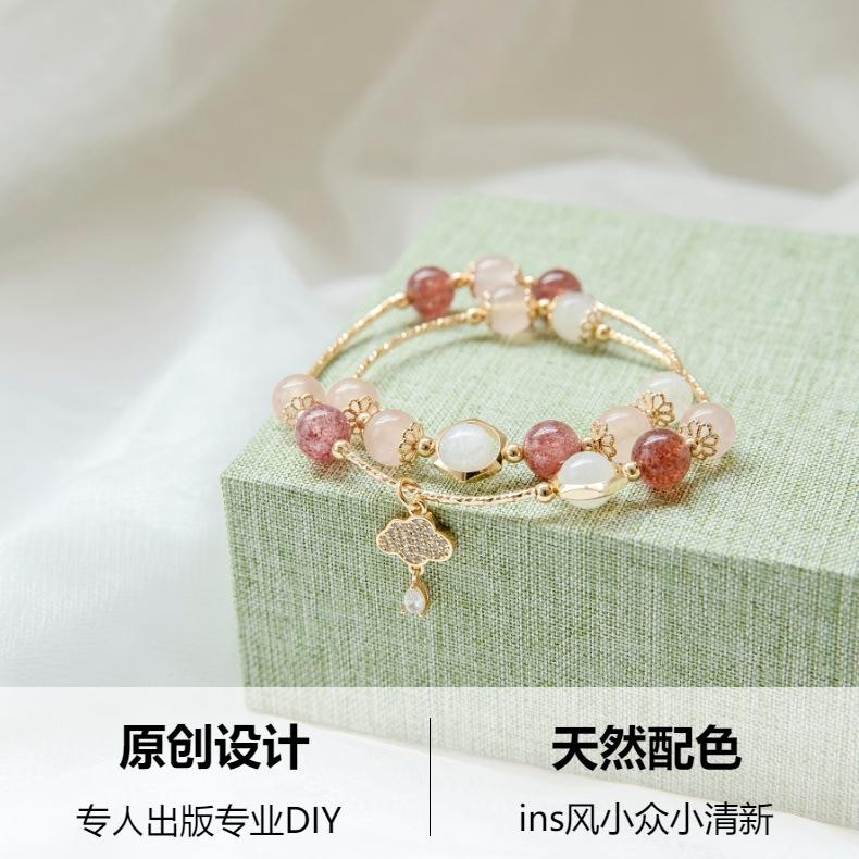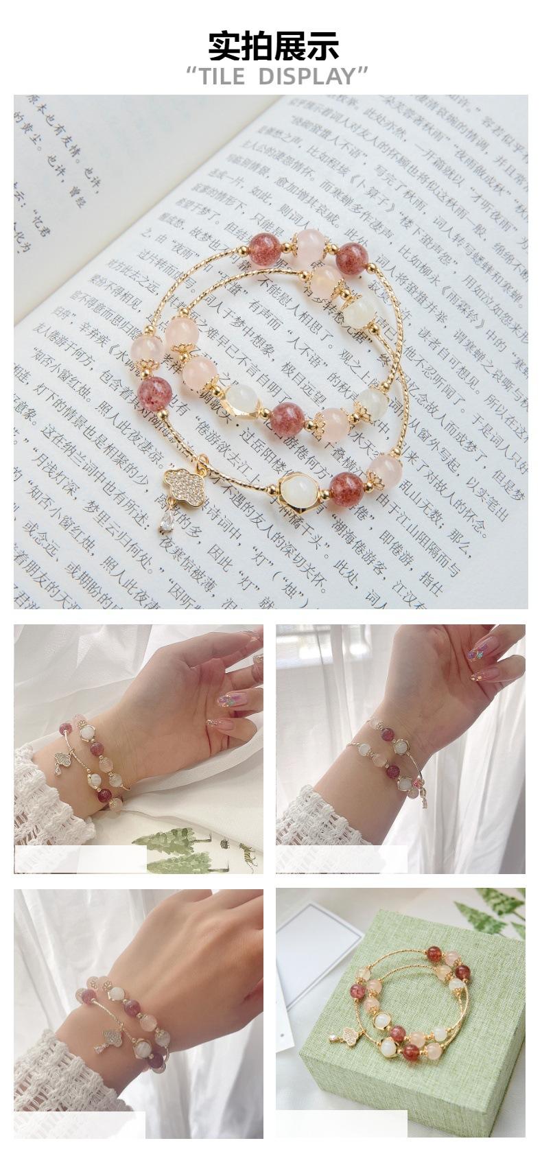 Diseño Original Natural Sansheng Pulsera de Cristal de Fresa Tricolor Femenina Estilo Hada Transmisión en Vivo Popular Pulsera de Cristal Rosa
