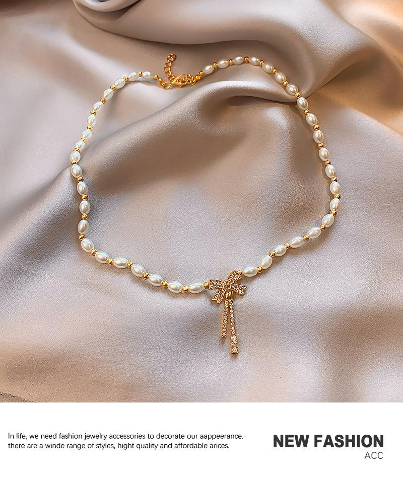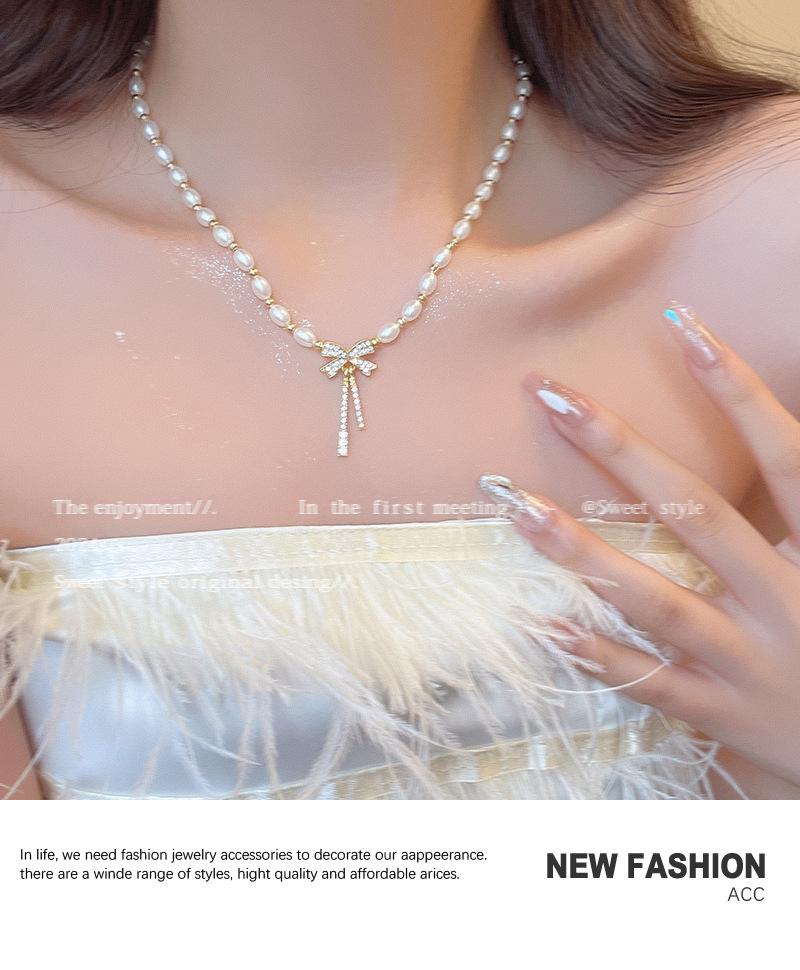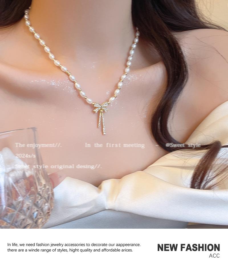 Collar de perlas ligero de lujo retro para mujer, nuevo collar de alta gama 2024, elegante cadena de clavícula con diseño de nicho.