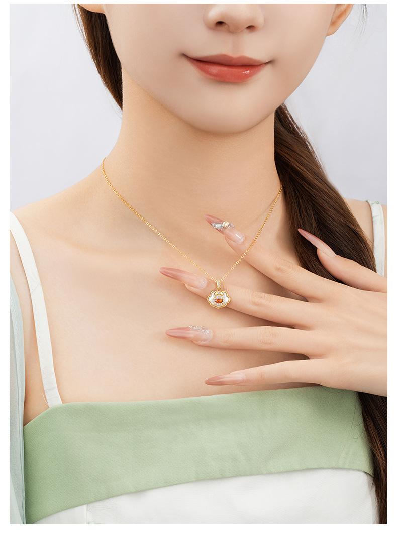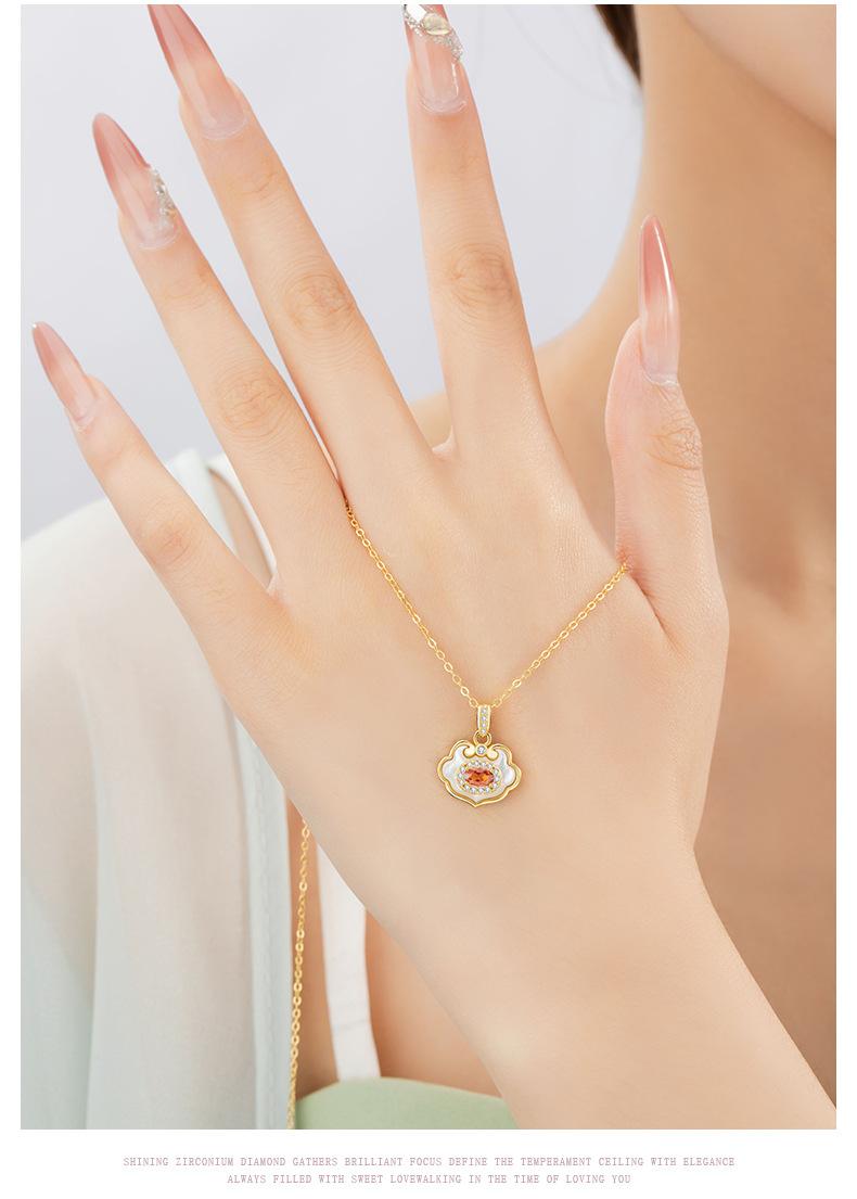 Collar de plata de ley 925 con calcedonia y diseño de serpiente de la suerte, tendencia nacional, con hebilla de paz y cadena de clavícula, colgante estilo zodiaco.