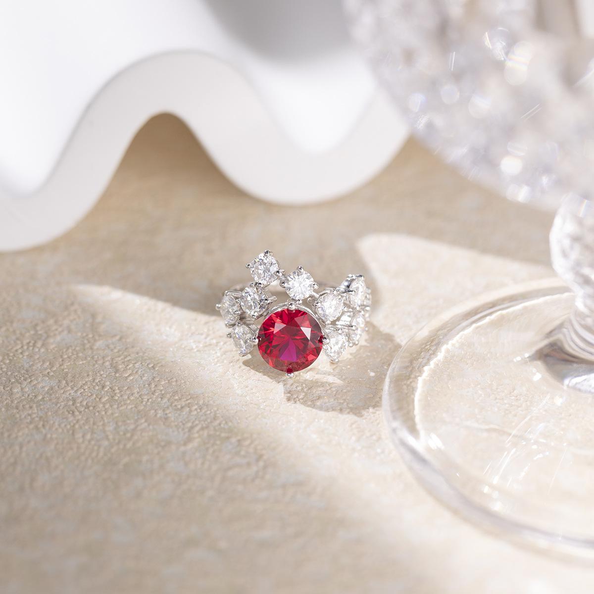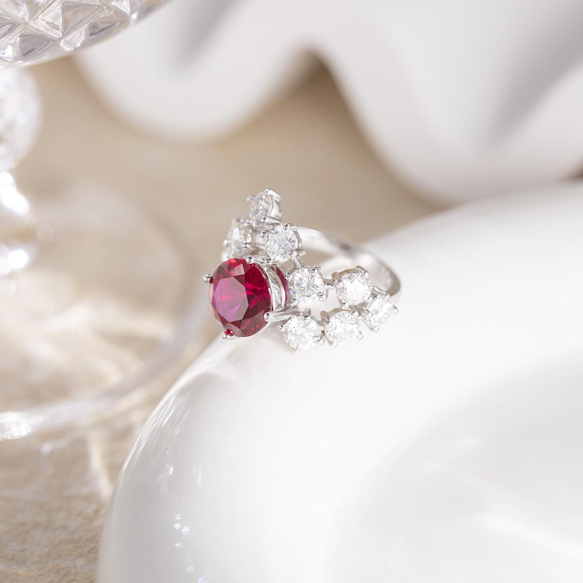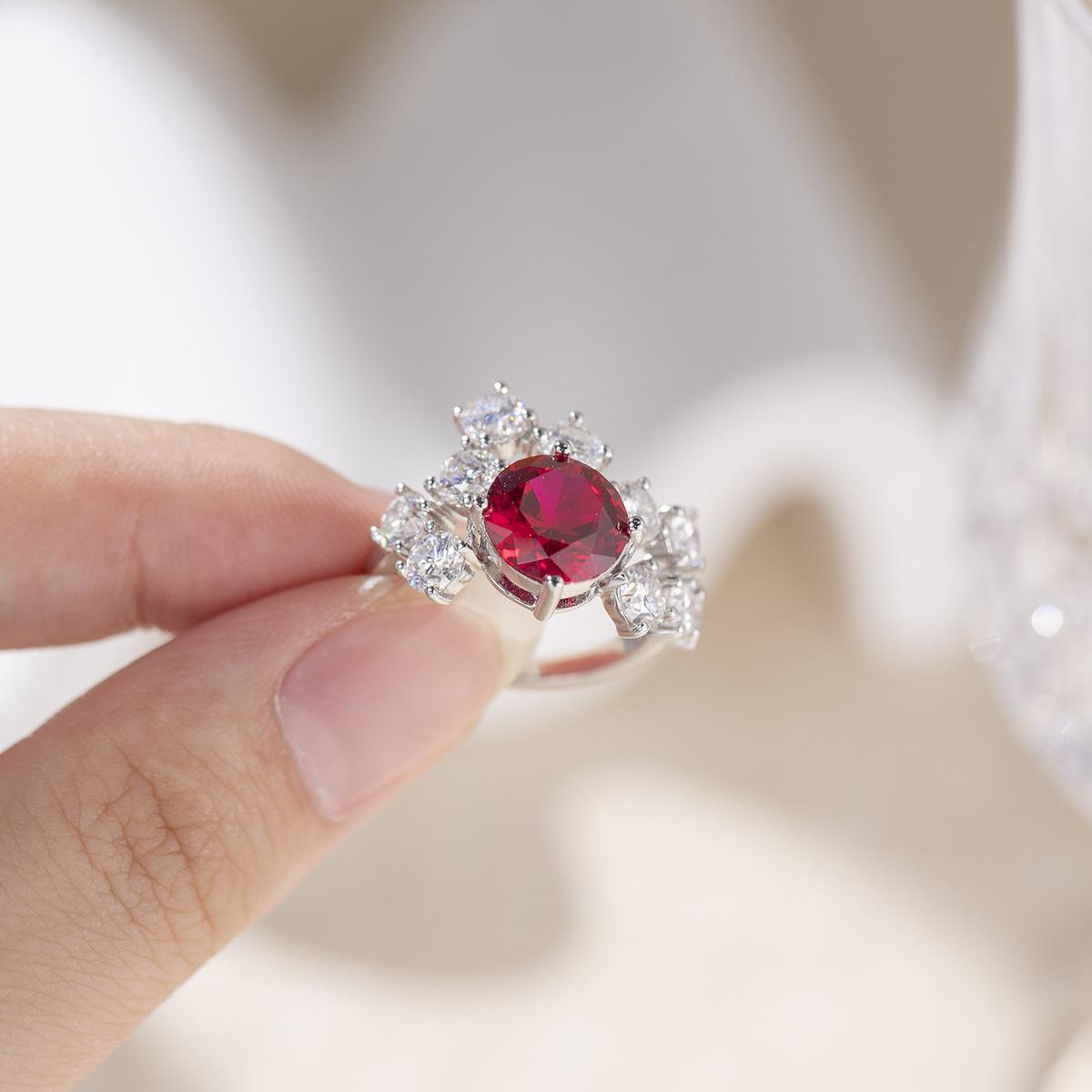Anillo de moissanita de corindón rojo paloma de 3 quilates redondo de plata S925 para mujer, ligero, de lujo, de alta gama, de moda europea y americana.