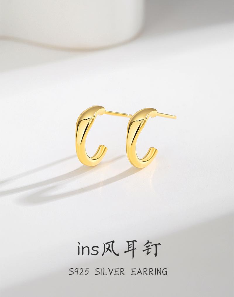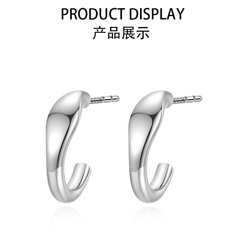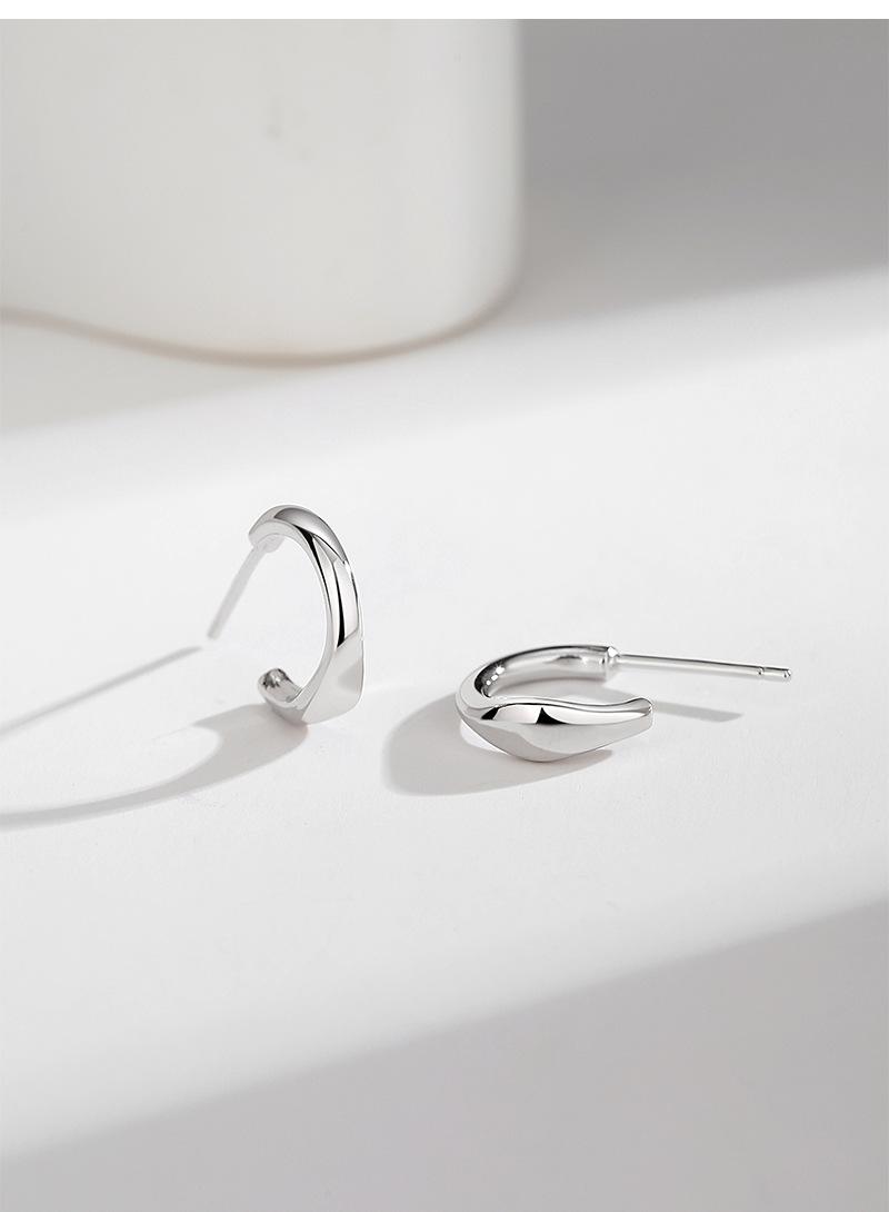 Nuevos pendientes de plata S925 para mujer, de medio círculo, estilo minimalista francés, joyería elegante.