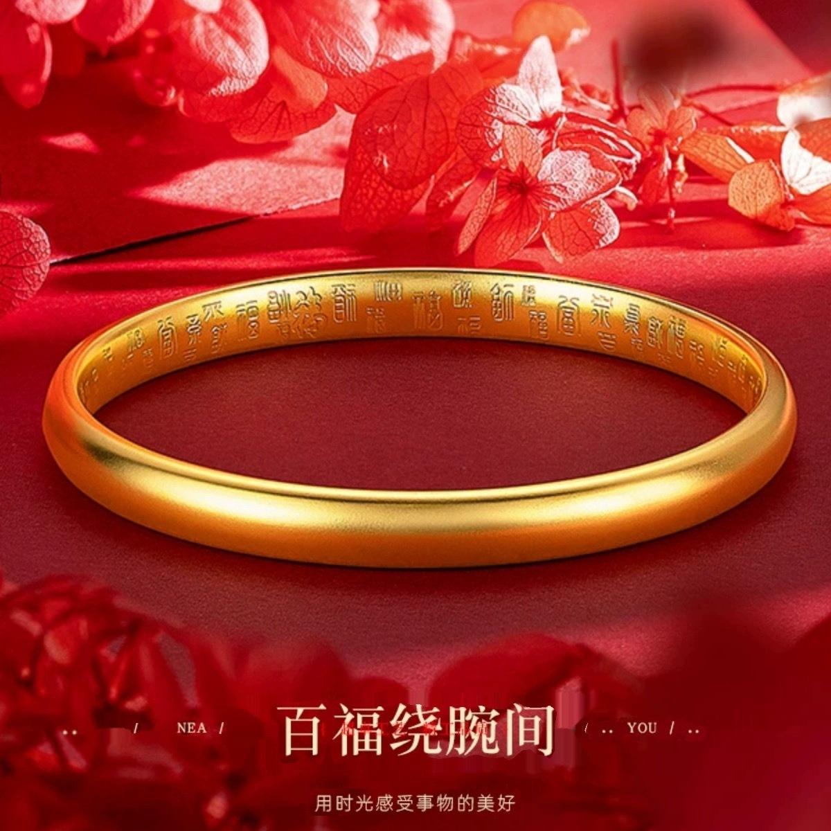 Pulsera Baifu de Oro Arena Vietnamita, Anillo Cerrado Sólido, Pulsera con Palabra de Bendición, Pulsera Versátil Seiko de Larga Duración para Mujer