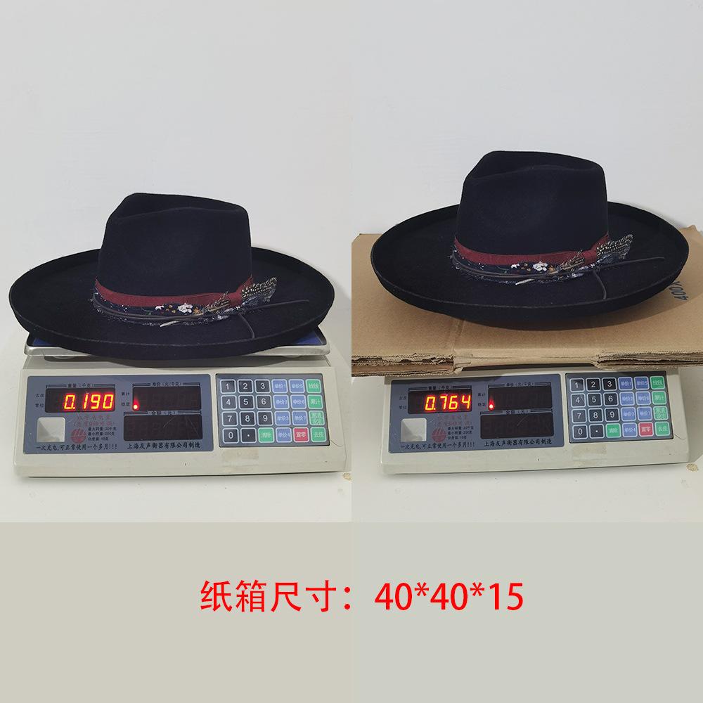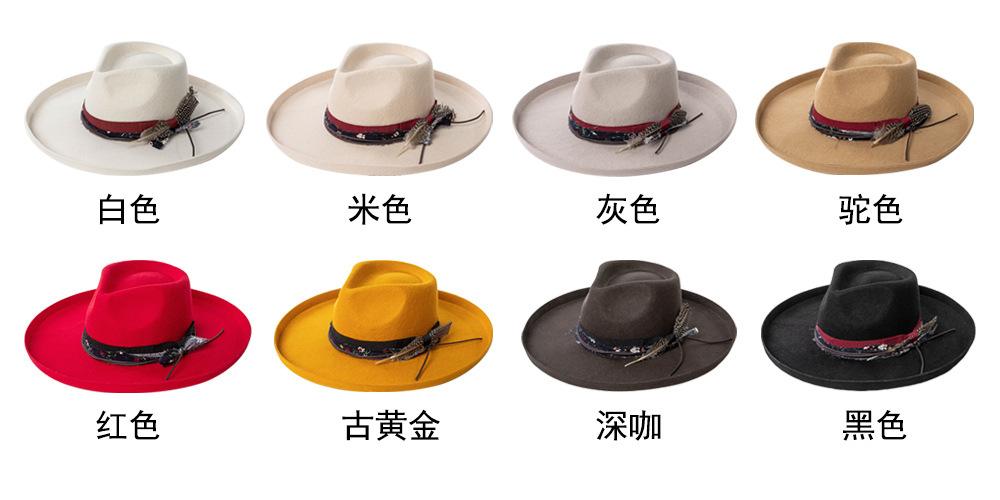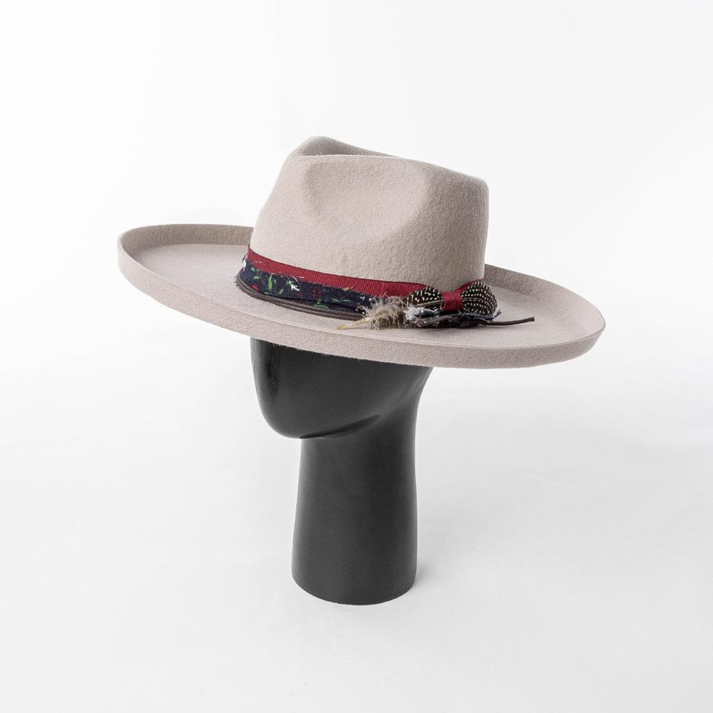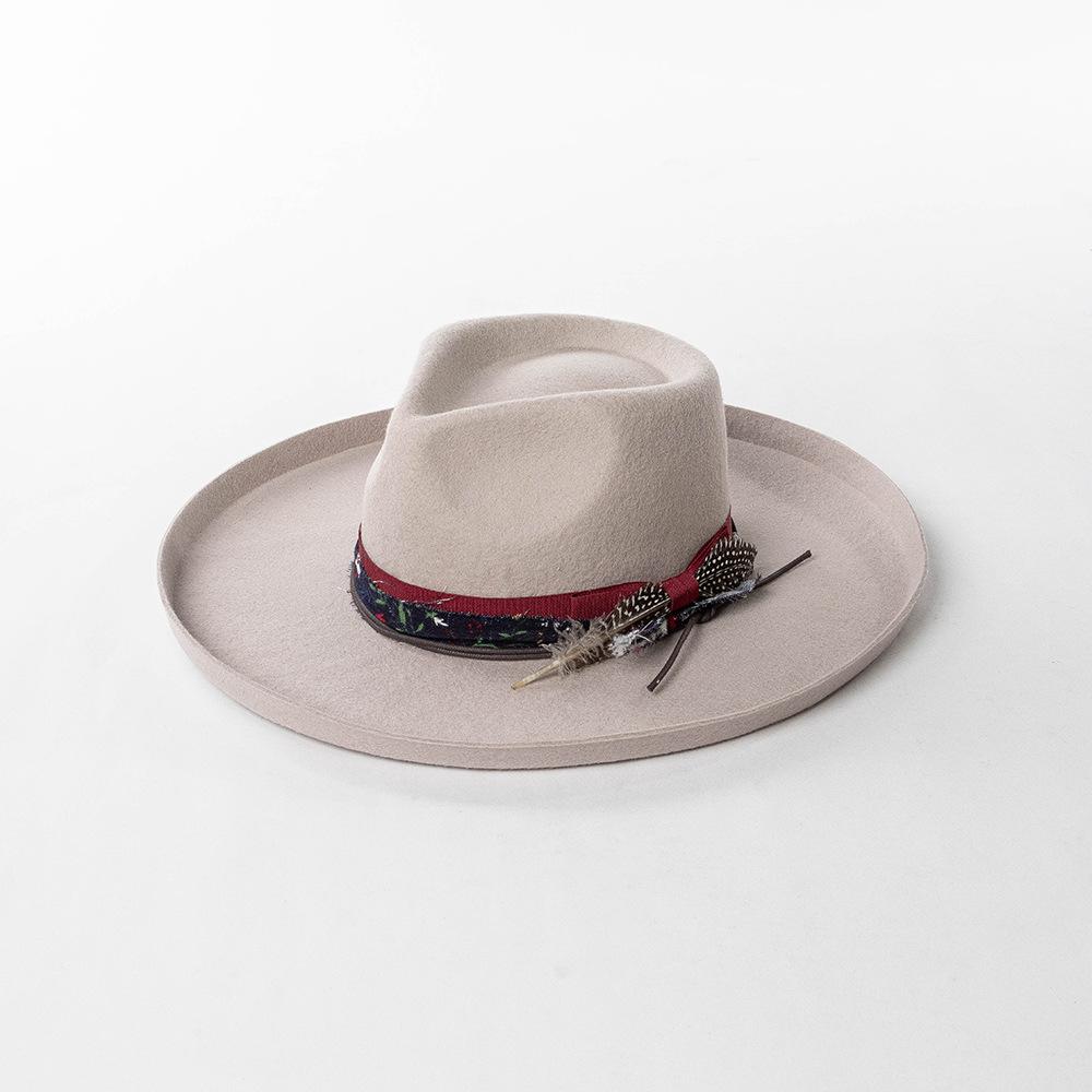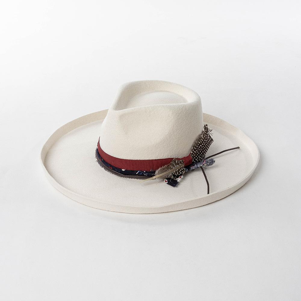 Sombrero de jazz de tweed de lana de ala ancha con borde deformado y plumas de tejido floral informal de moda transfronteriza de otoño e invierno, sombrero británico