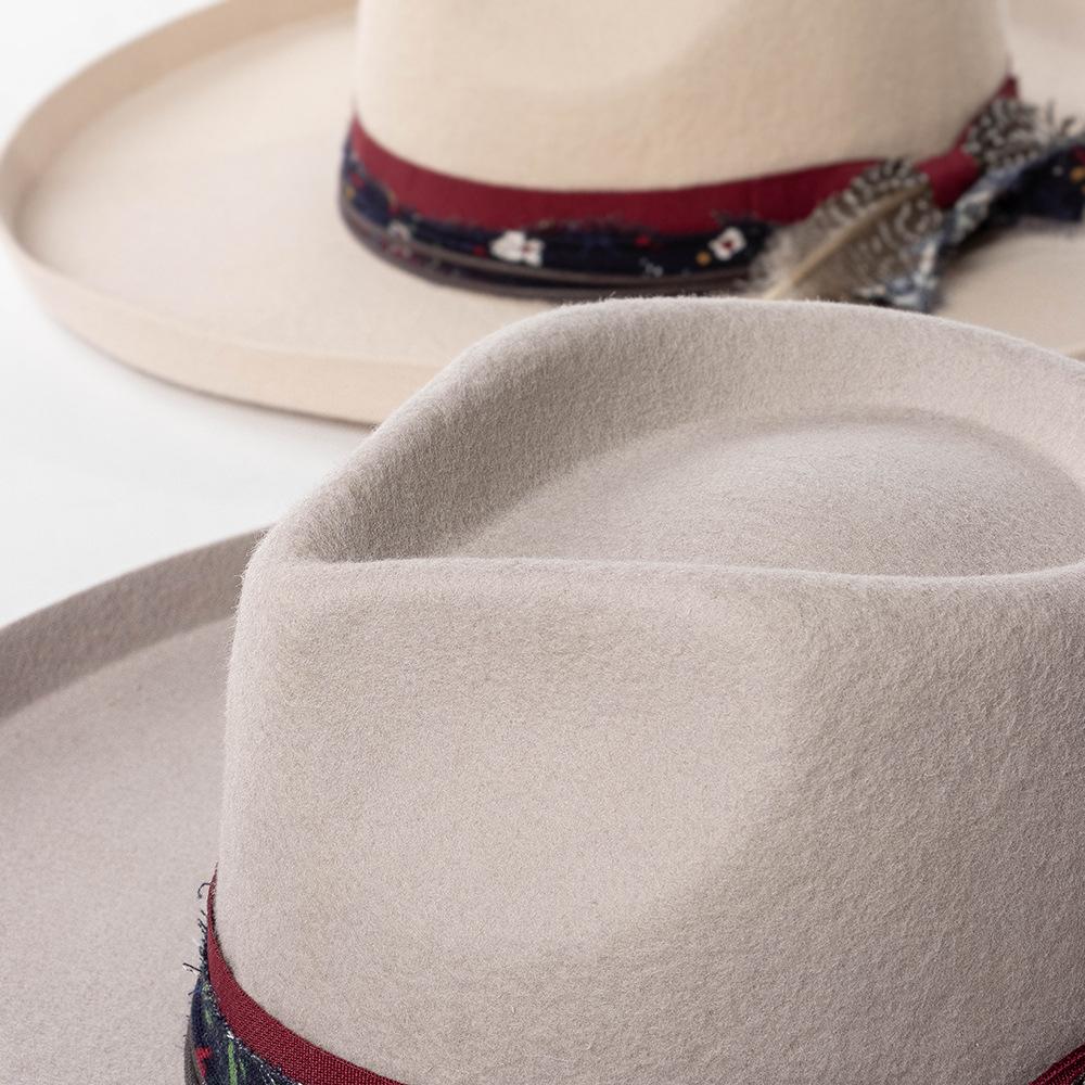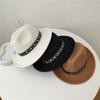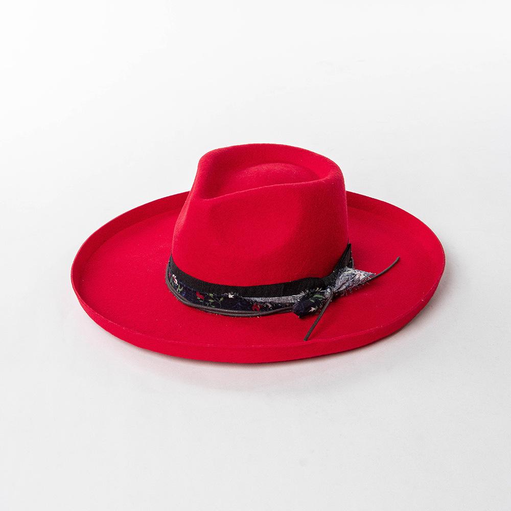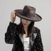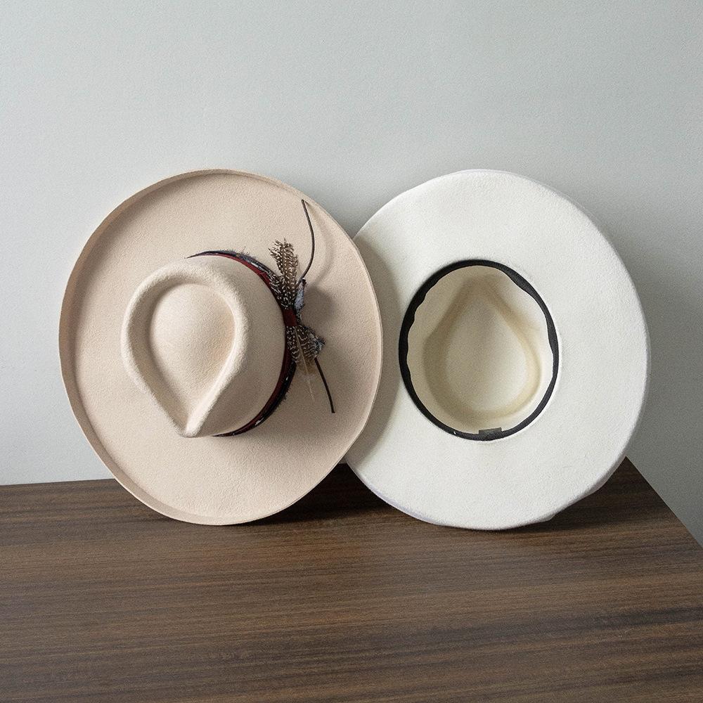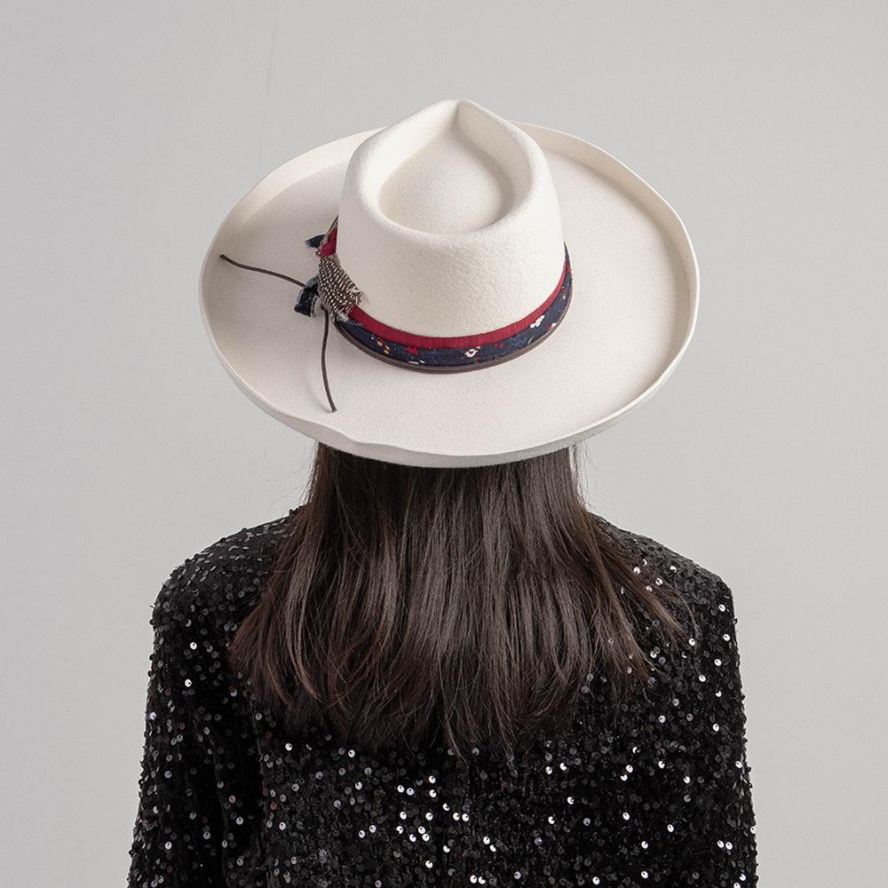 Sombrero de jazz de tweed de lana de ala ancha con borde deformado y plumas de tejido floral informal de moda transfronteriza de otoño e invierno, sombrero británico