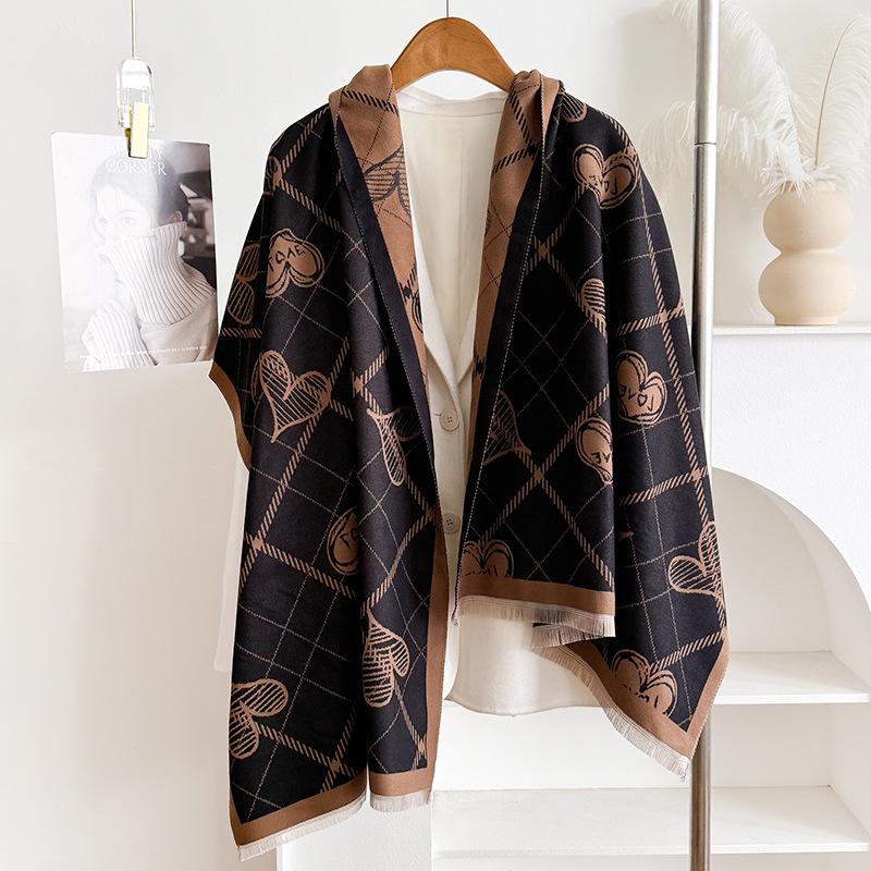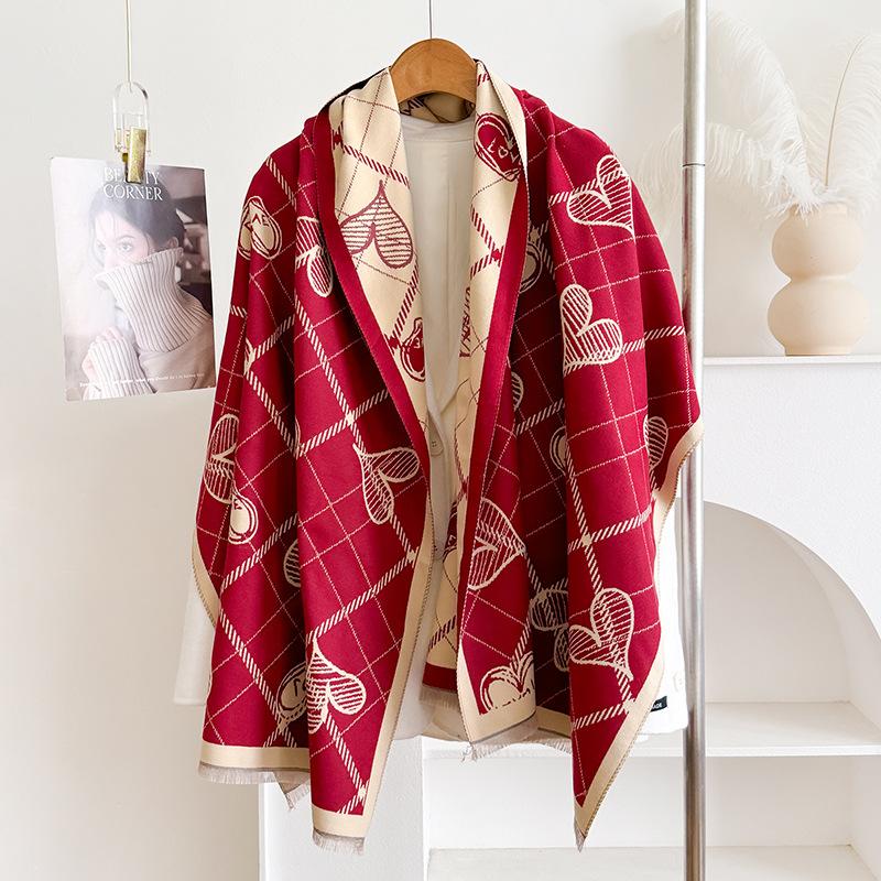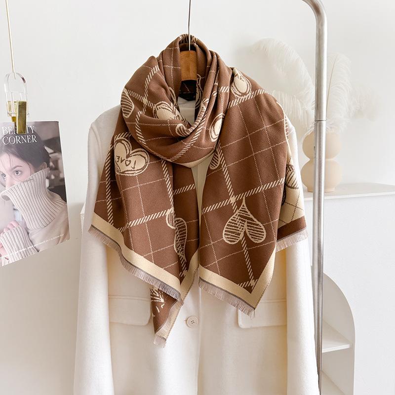 Bufanda de cachemira elegante de alta calidad para mujer, chal grueso de invierno cálido con doble cara y amor, 2024
