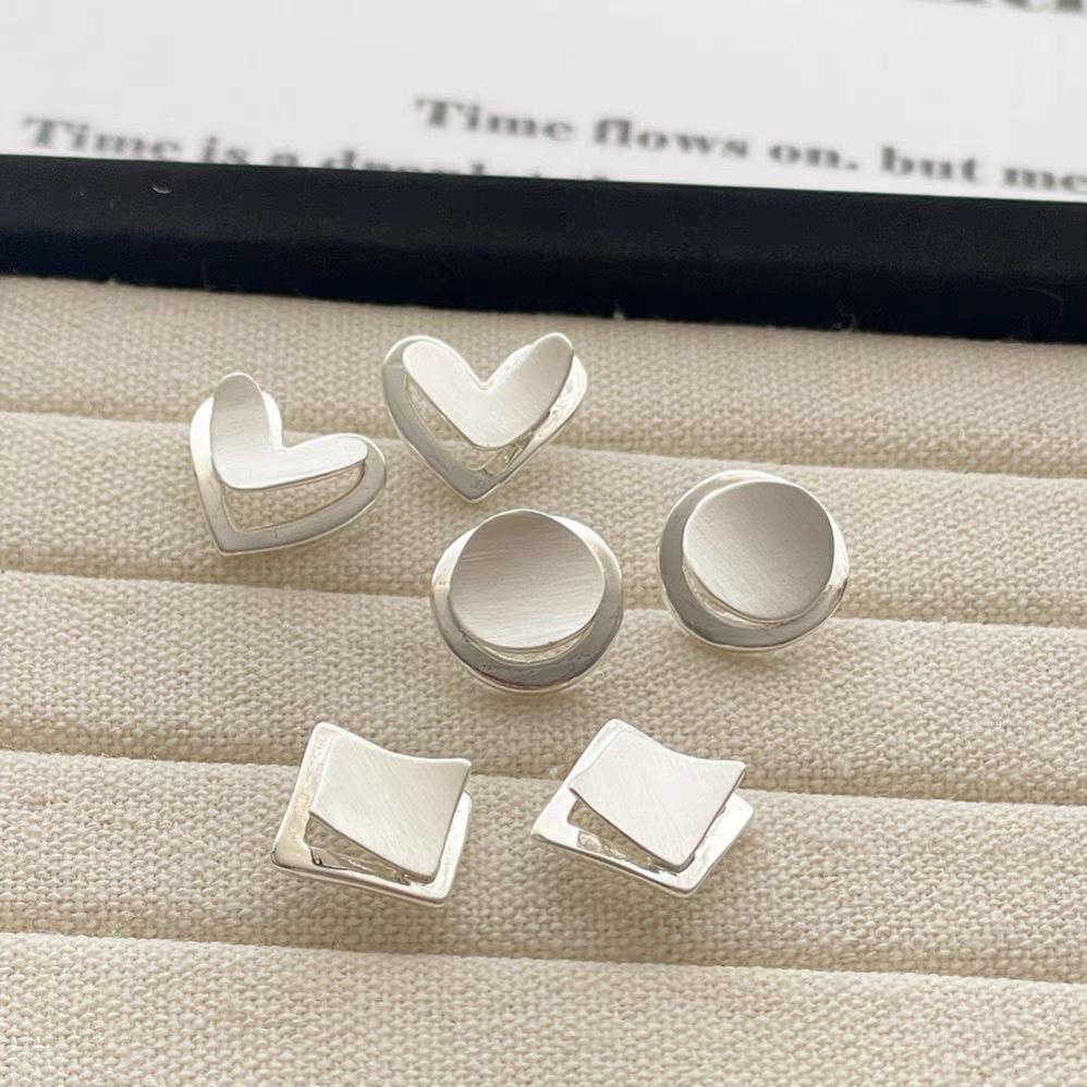 Pendientes retro redondos y cuadrados de amor (2024), nuevos pendientes de estilo frío con diseño cepillado único y combinables.