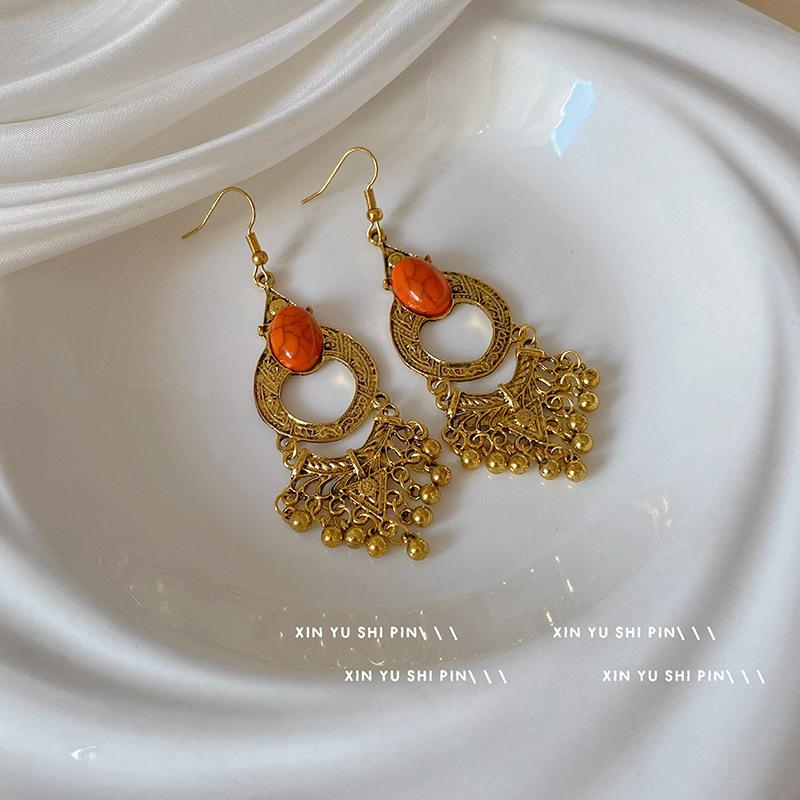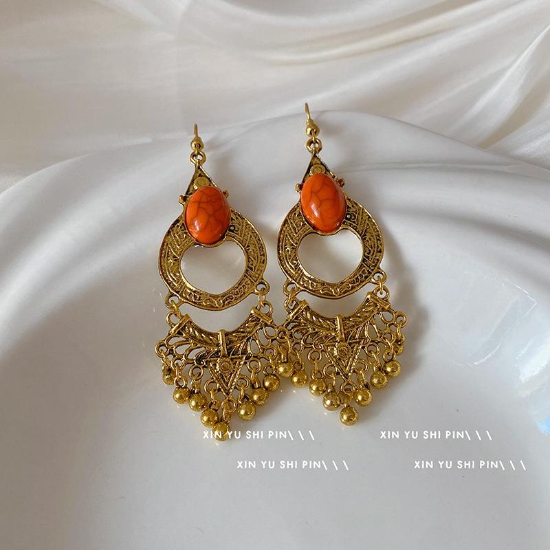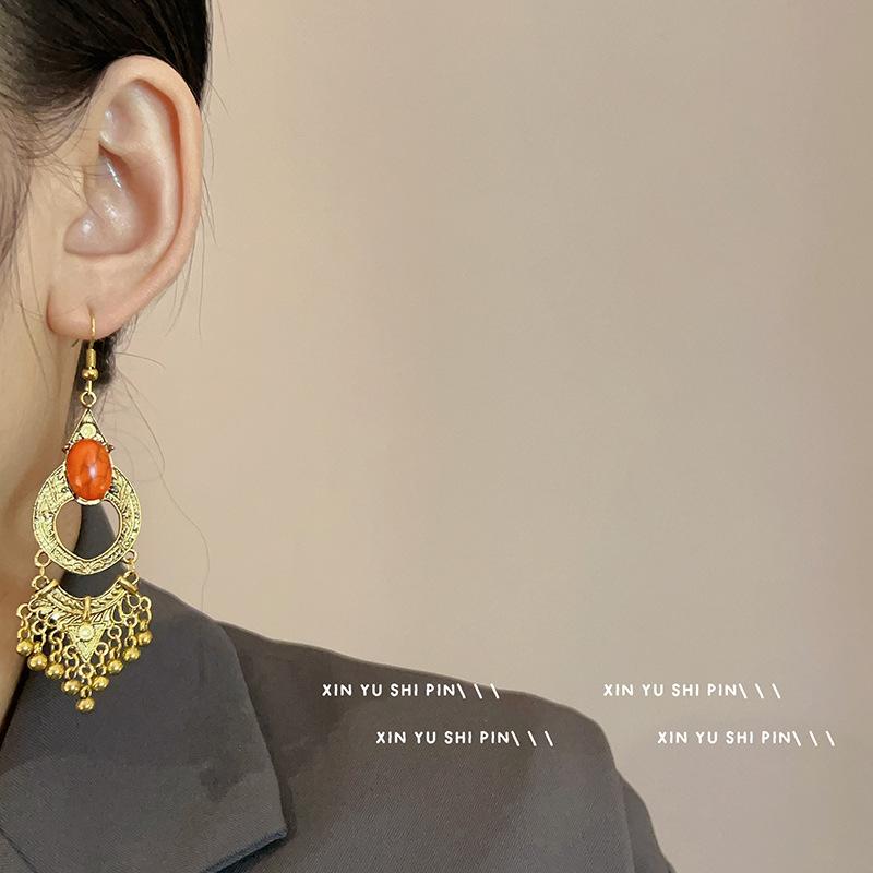 Pendientes largos con borlas estilo bohemio, estilo retro francés, con diseño de nicho, para vacaciones, con personalidad.