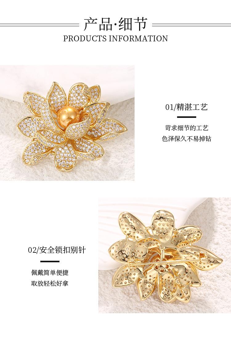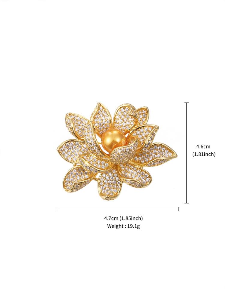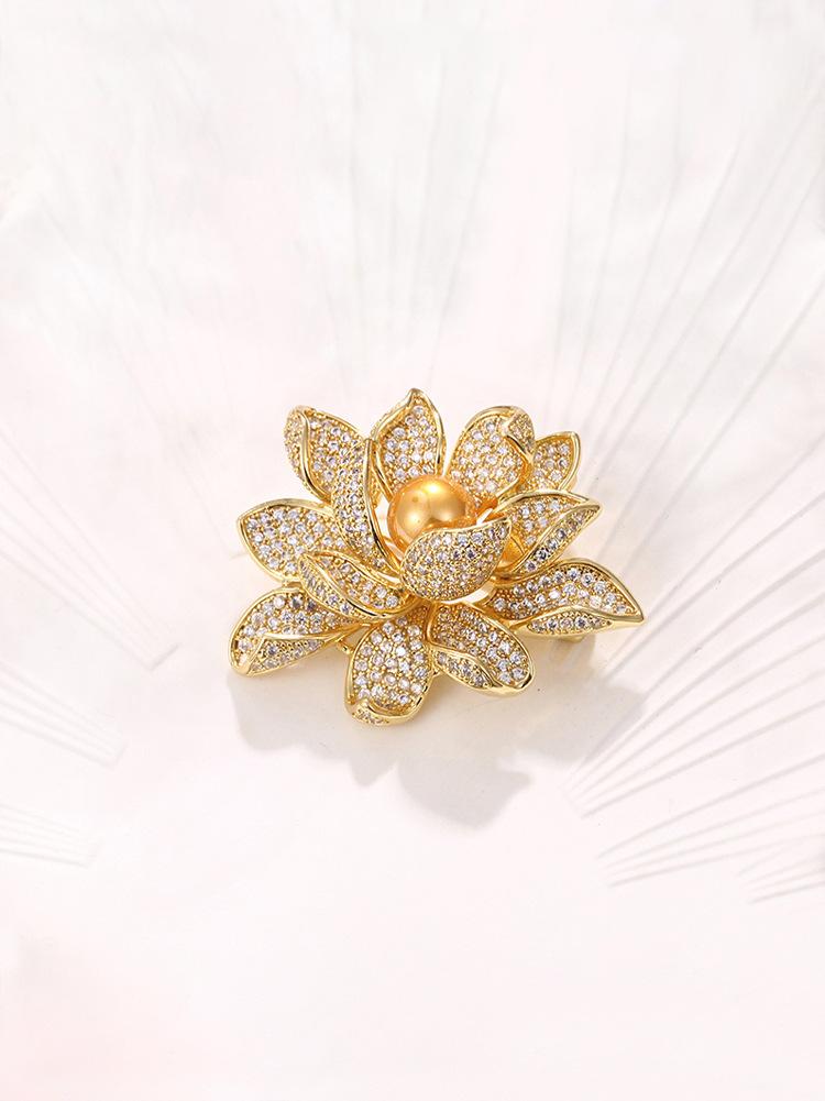 Broche de Ropa para Mujer Elegante de Alta Gama de Aleación Loto Dorado para Uso Diario Corsage Pin Anti-Exposición Accesorio para Cuello