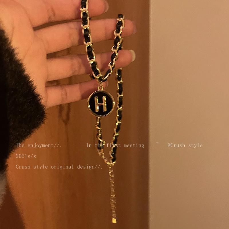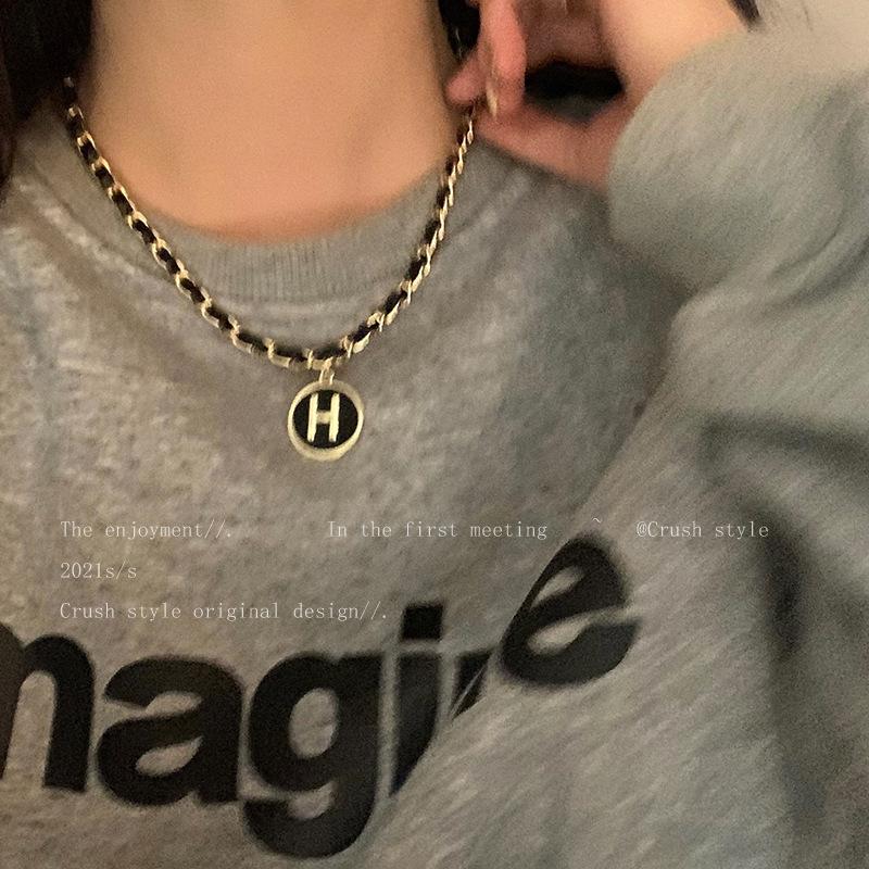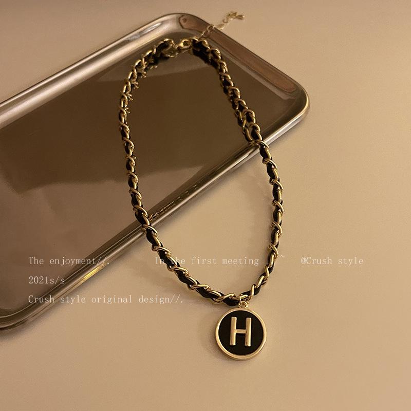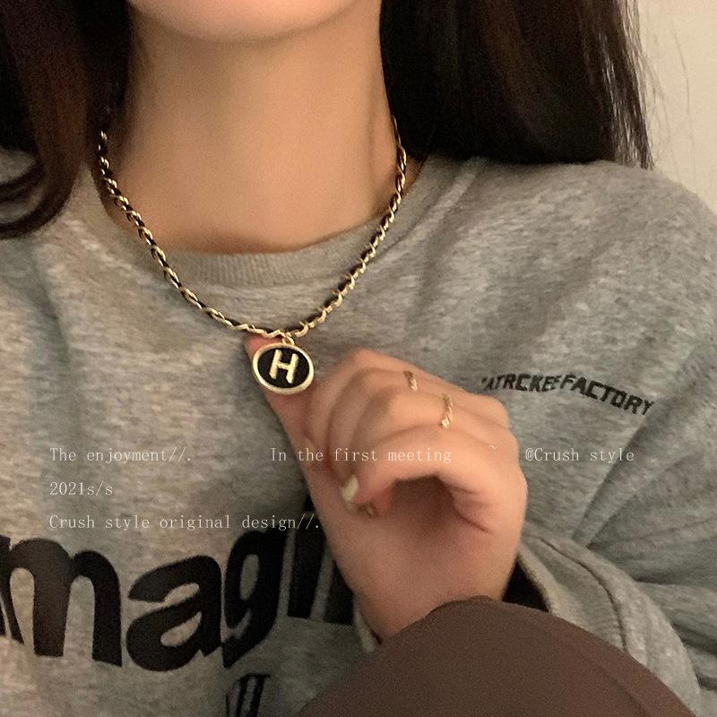 Collar con colgante redondo con letra H, cadena de clavícula con personalidad y temperamento a la moda para mujer, diseño de alta gama, estilo nicho.