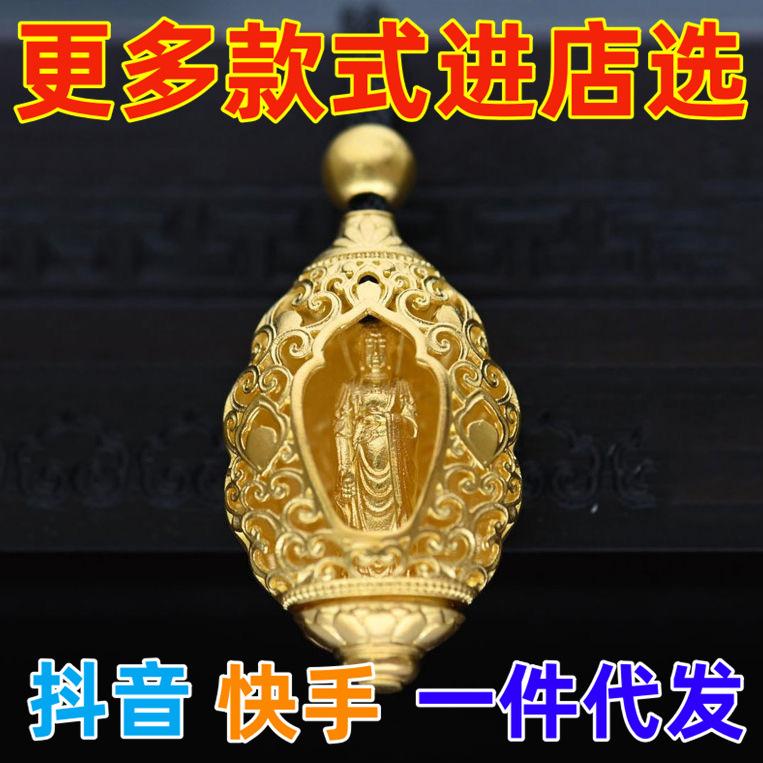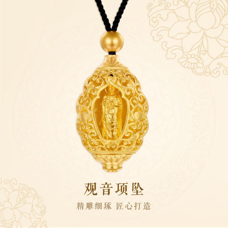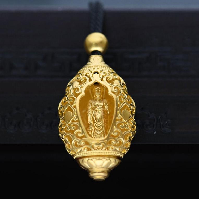 Colgante vietnamita de Guanyin Bodhisattva de oro y arena que atrae riqueza y tesoros. Colgante de Guanyin Tianzhu, método antiguo de herencia, estatua de Buda para hombres y mujeres.