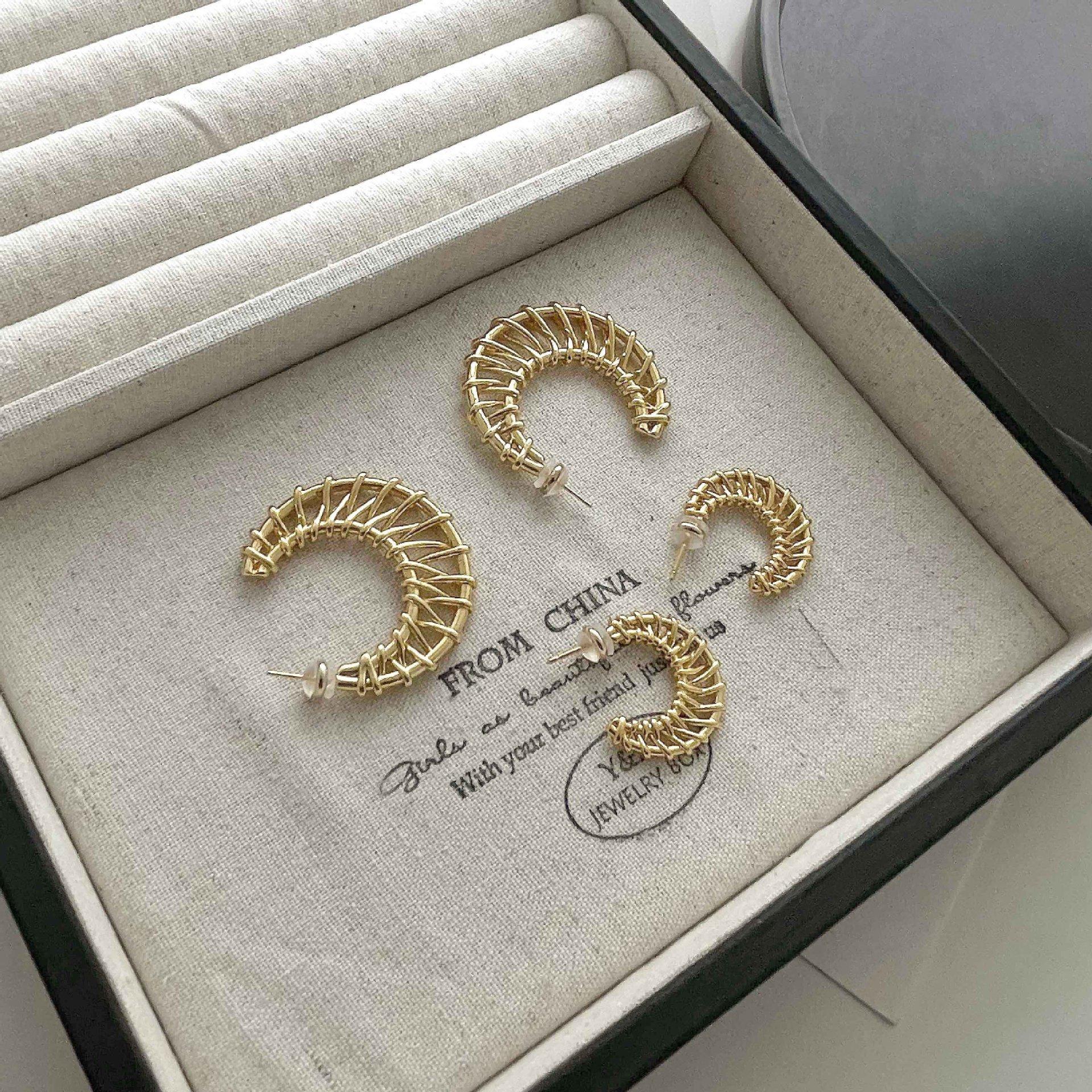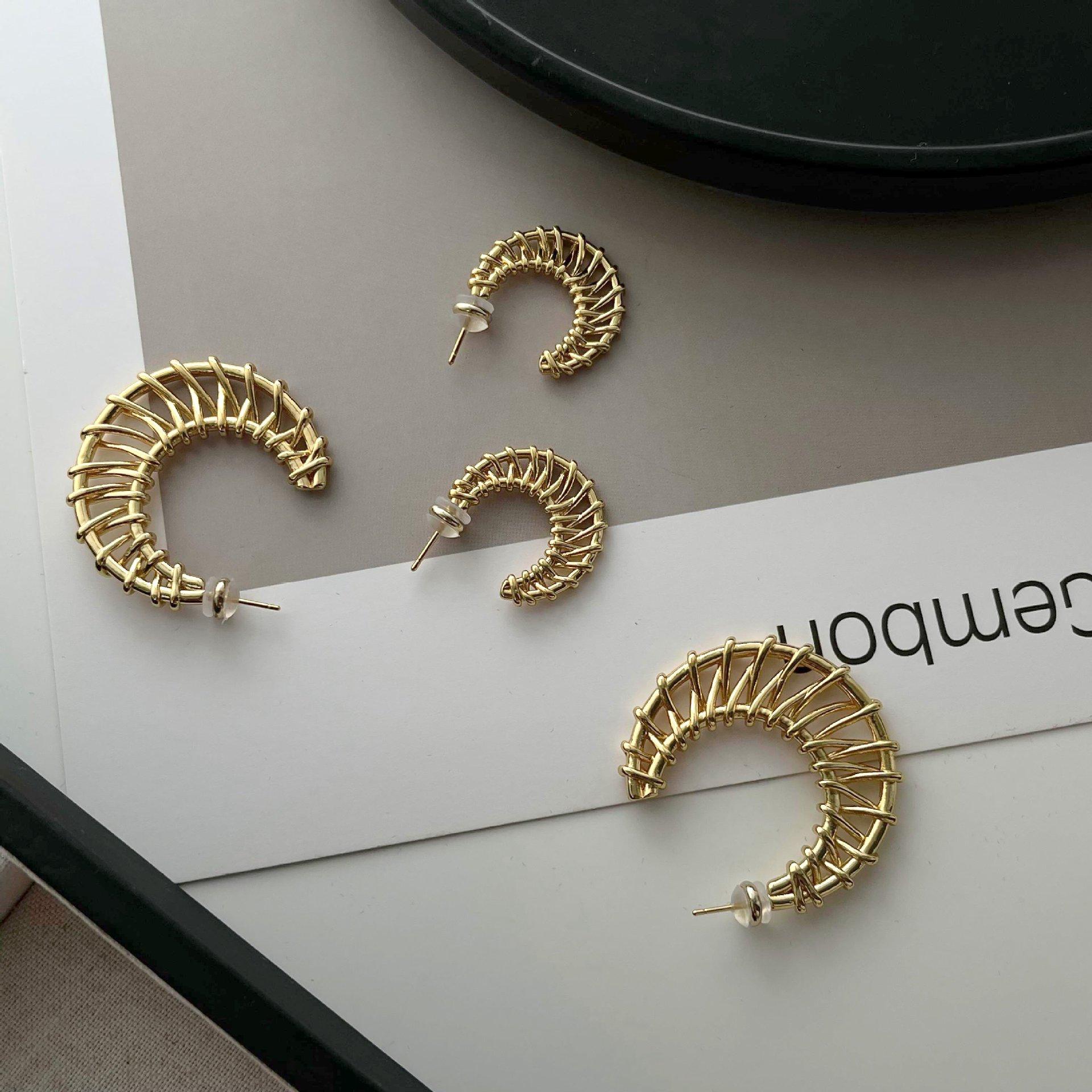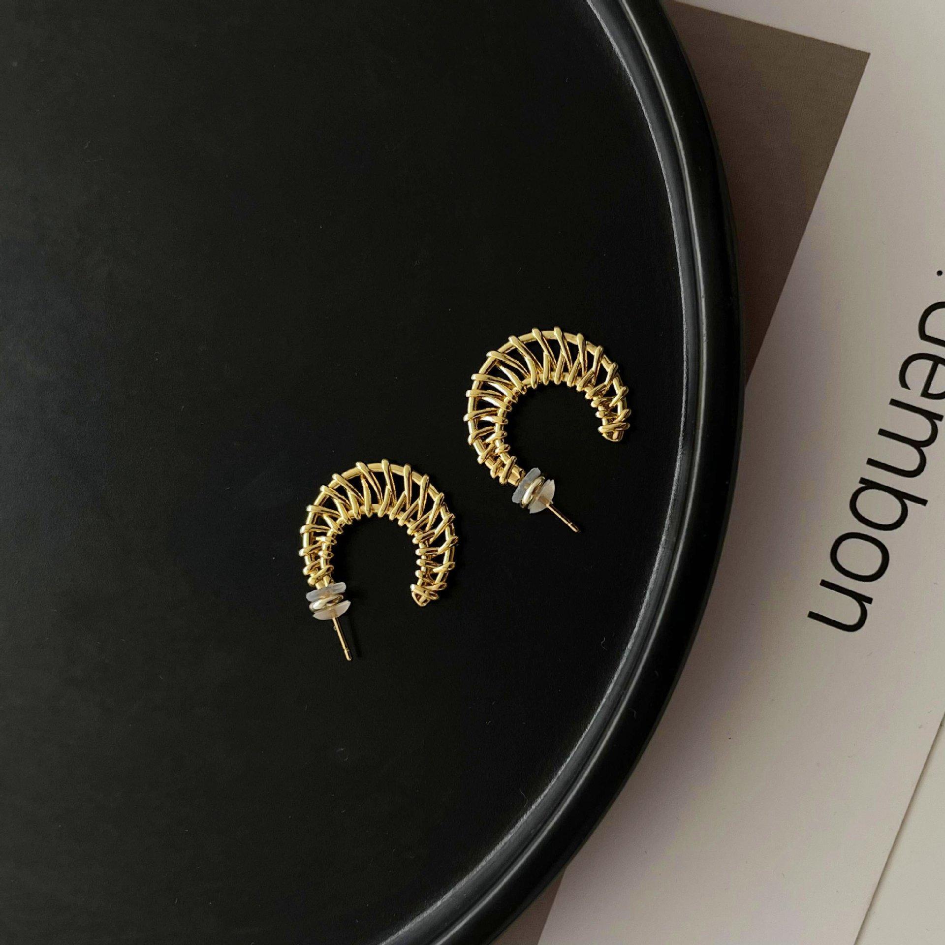 Aretes Geométricos Tejidos Simples Europeos y Americanos, Aretes Exagerados Personalizados, Estilo Vacacional, Aretes de Botón Geométricos Únicos de Lujo Ligero para Mujer